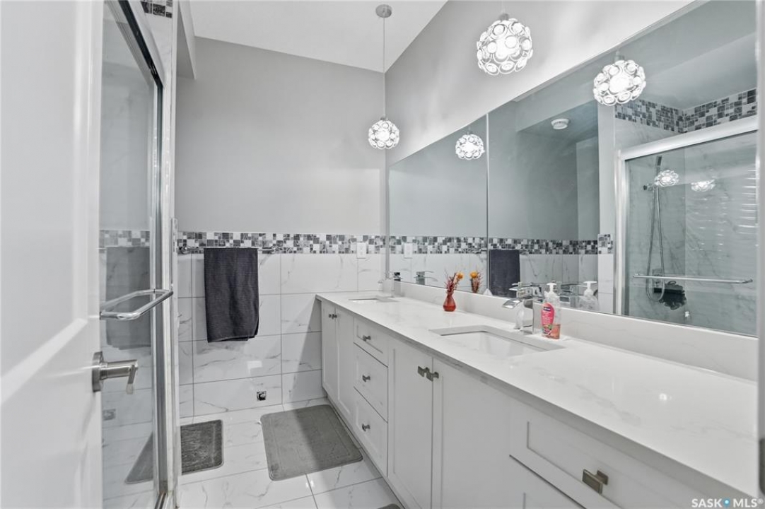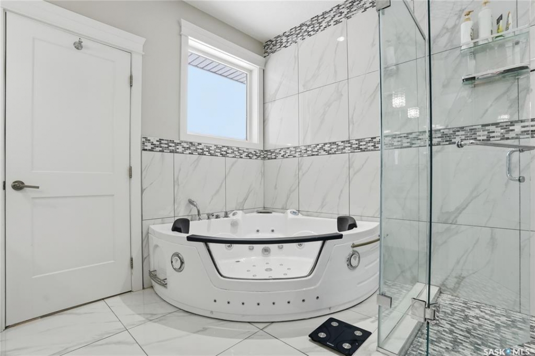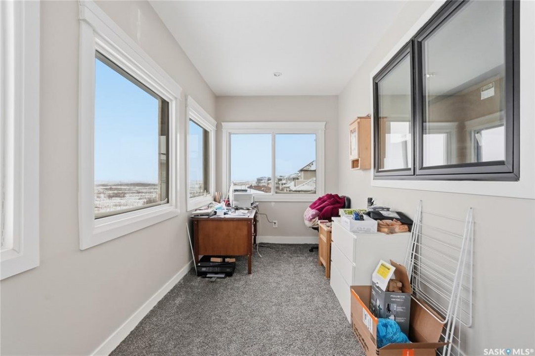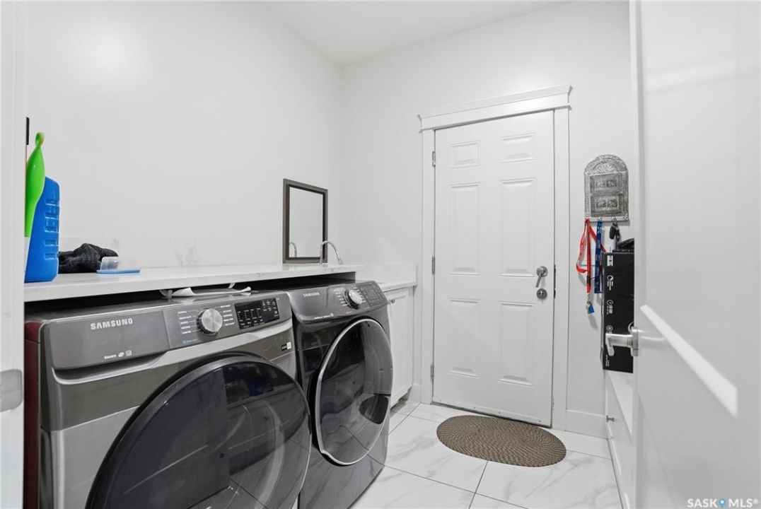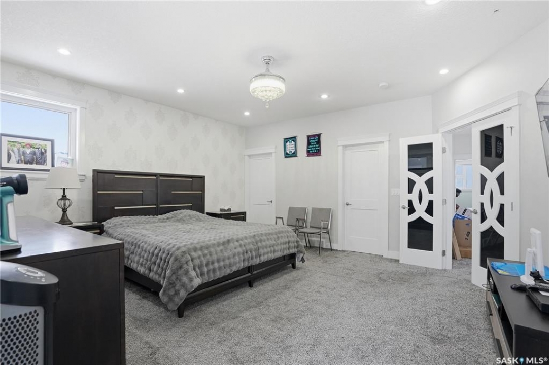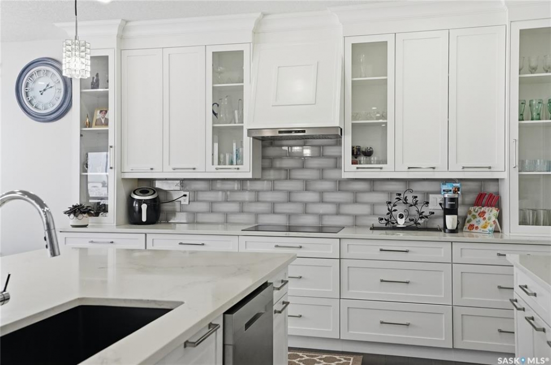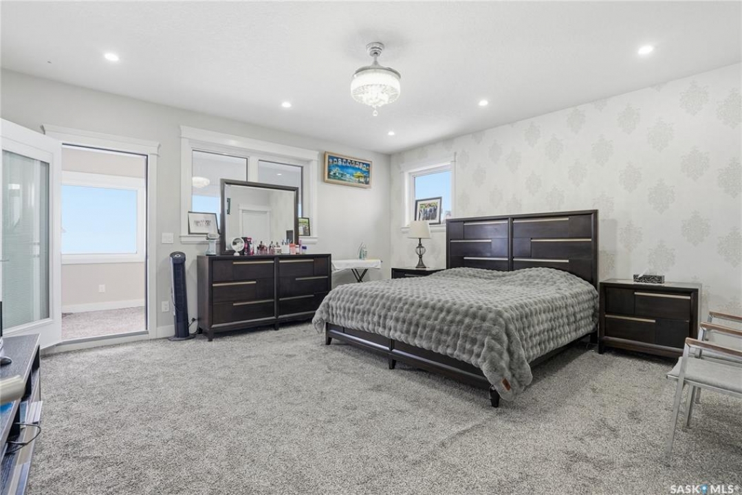 This luxury two-storey walkout home backs the protected Northeast Swale, offering rare, unobstructed prairie views that will never be compromised. Home to native grasslands, rare plant species, and wildlife, the Swale provides a peaceful setting and a natural filter for air and water, creating an exceptional backdrop for refined living. From the moment you enter, a grand open-to-below foyer with soaring ceilings and a stunning chandelier sets the tone for the refined design throughout. The main floor offers expansive, light-filled living spaces, with the living room featuring a Napoleon natural gas fireplace finished with stone as an elegant focal point. The kitchen is designed for everyday living and entertaining, showcasing an extra-large island, quartz countertops, detailed backsplashes, ceiling-height cabinetry, and premium stainless steel appliances. A highly functional butler and spice kitchen includes stainless steel appliances, a sink, ample counter space, and additional storage. A mudroom and laundry room with sink and quartz countertops offers direct garage access, complemented by a convenient 2- piece bathroom. The heated double garage and oversized driveway provide parking for up to six vehicles. The main-floor deck spans the family room and offers approximately 160 square feet of outdoor living space with a natural gas BBQ hookup and uninterrupted Swale views. Upstairs, the primary retreat features a 5-piece ensuite with jacuzzi and a private sunroom, while two additional bedrooms each include 4-piece ensuite bathrooms and large closets. The walkout basement opens to a backyard patio and includes a family room with electric fireplace, games area, wet bar with beverage fridge, a 4-piece bathroom, and two additional bedrooms, one with a 3-piece ensuite and walk-in closet, offering flexibility for guests, extended family, or future home office use. A rare opportunity to own a luxury walkout residence backing a natural reserve.