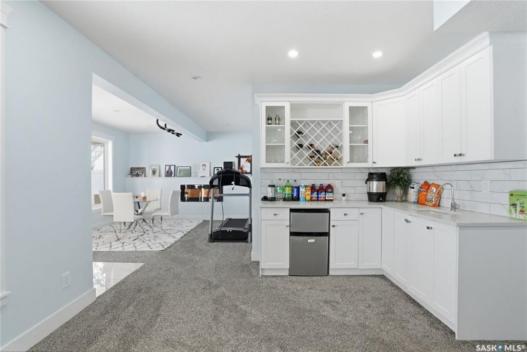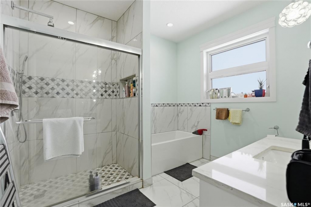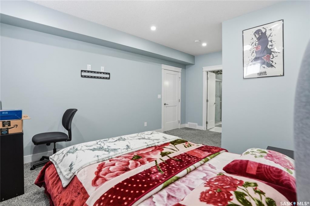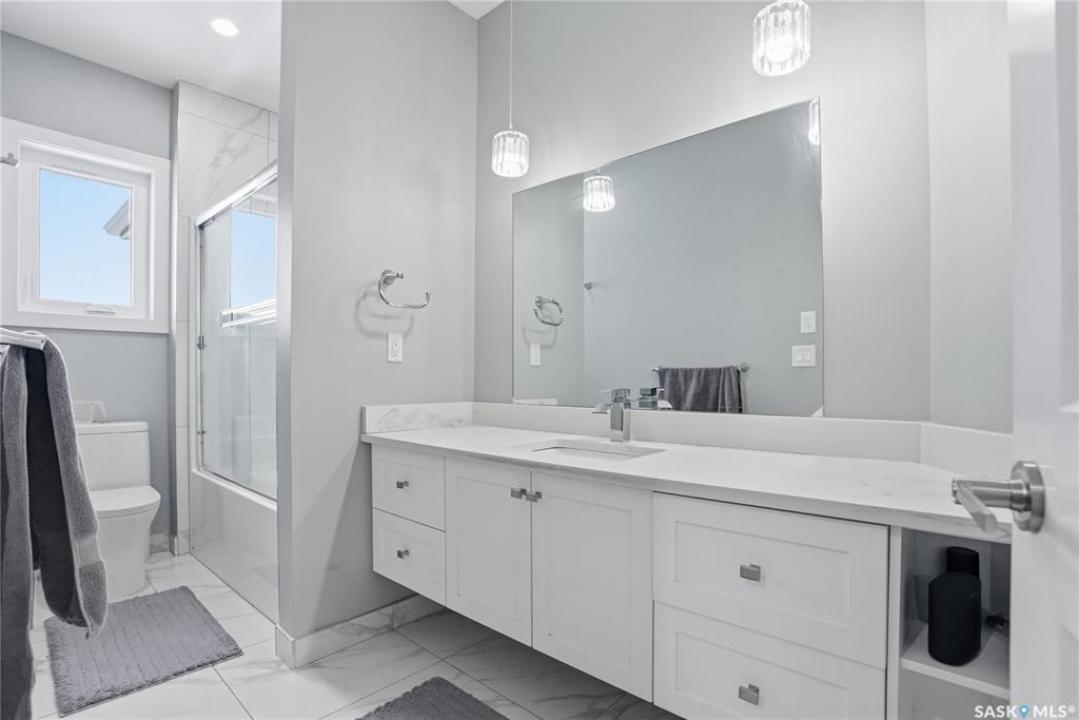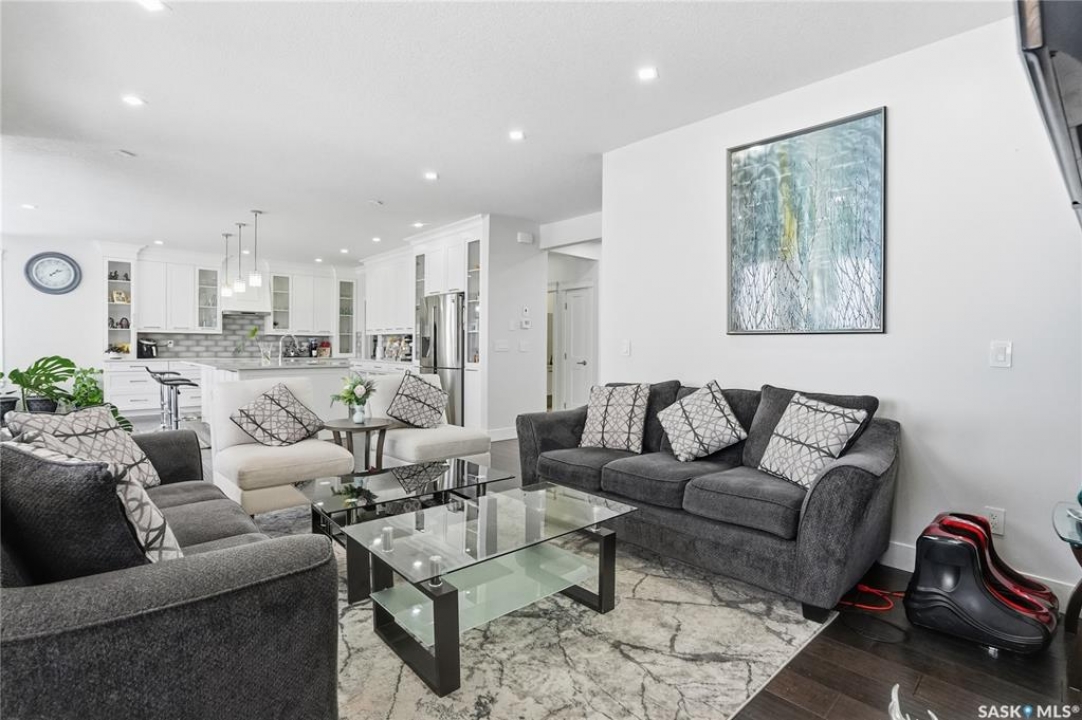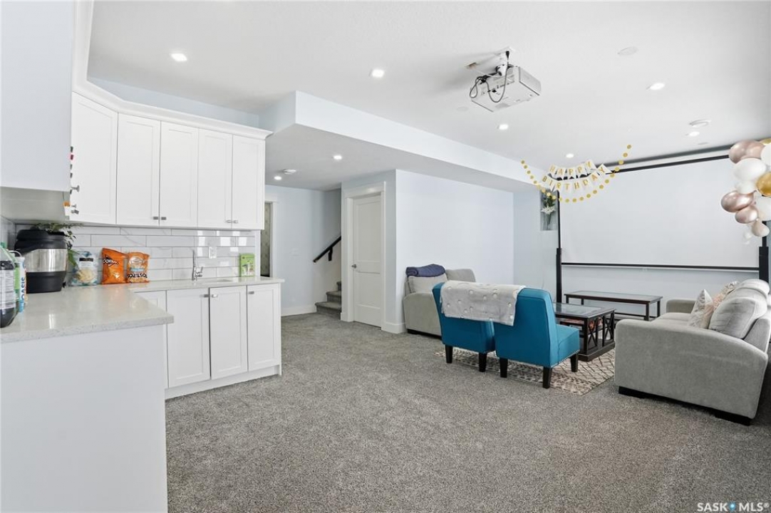 This luxury two-storey walkout home backs the protected Northeast Swale, offering rare, unobstructed prairie views that will never be compromised. Home to native grasslands, rare plant species, and wildlife, the Swale provides a peaceful setting and a natural filter for air and water, creating an exceptional backdrop for refined living. From the moment you enter, a grand open-to-below foyer with soaring ceilings and a stunning chandelier sets the tone for the refined design throughout. The main floor offers expansive, light-filled living spaces, with the living room featuring a Napoleon natural gas fireplace finished with stone as an elegant focal point. The kitchen is designed for everyday living and entertaining, showcasing an extra-large island, quartz countertops, detailed backsplashes, ceiling-height cabinetry, and premium stainless steel appliances. A highly functional butler and spice kitchen includes stainless steel appliances, a sink, ample counter space, and additional storage. A mudroom and laundry room with sink and quartz countertops offers direct garage access, complemented by a convenient 2- piece bathroom. The heated double garage and oversized driveway provide parking for up to six vehicles. The main-floor deck spans the family room and offers approximately 160 square feet of outdoor living space with a natural gas BBQ hookup and uninterrupted Swale views. Upstairs, the primary retreat features a 5-piece ensuite with jacuzzi and a private sunroom, while two additional bedrooms each include 4-piece ensuite bathrooms and large closets. The walkout basement opens to a backyard patio and includes a family room with electric fireplace, games area, wet bar with beverage fridge, a 4-piece bathroom, and two additional bedrooms, one with a 3-piece ensuite and walk-in closet, offering flexibility for guests, extended family, or future home office use. A rare opportunity to own a luxury walkout residence backing a natural reserve.