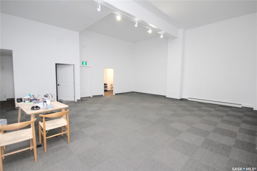 This is one of the nicest commercial spaces in the city with 14' ceilings highlighted by beautiful architectural metal panels offering a unique and upscale vibe. It offers large scale windows facing Broadway St for soothing natural light and high visibility for signage. The space lends itself to a variety of uses from store front space, office space, event space, coffee house, boutique, clinic space, etc. with your exclusive use of the front 1628 sq ft plus the back office, lunchroom and washroom space shared with Moda staff. There is ample on street parking and public parking lot access across the street. The Landlord has installed new high efficient natural gas forced air heat and central air conditioning for maximum comfort. Note: If you need the full 2500 sq ft space exclusively there is the option to rent the entire space - see MLS SK025949 for details.