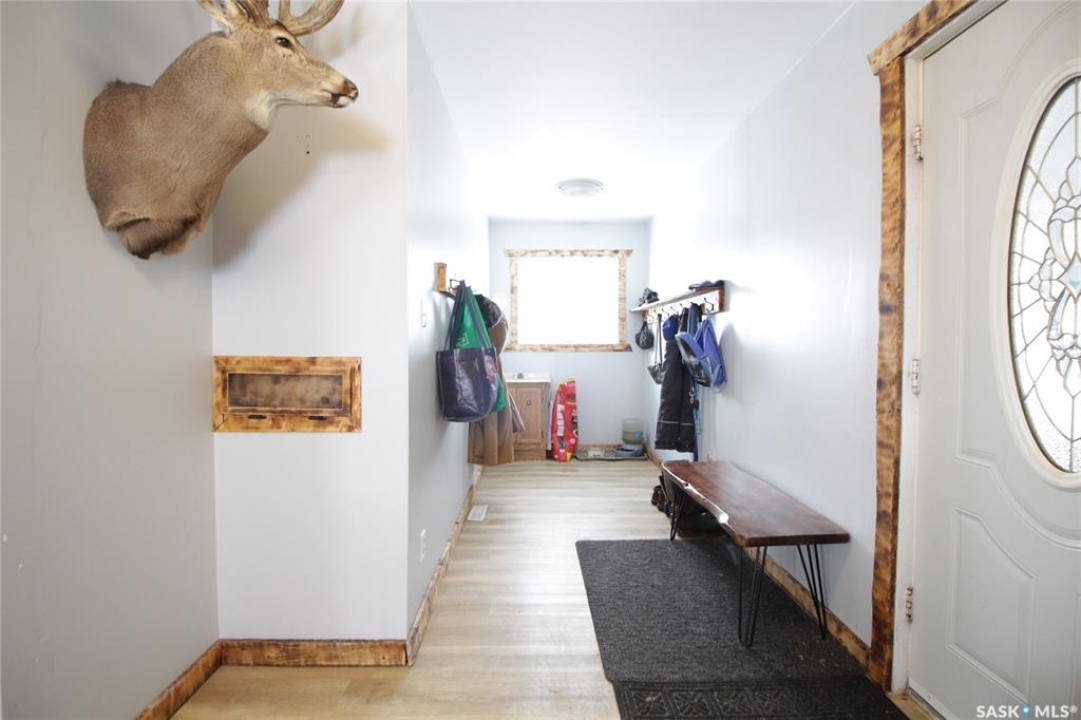 Beautiful acreage just 12 kms from Moosomin! This 1227 sqft home is sitting on 8.7 acres, has an attached double car garage, detached shop, and small barn. Step inside to find a large mudroom with laundry hook ups. The spacious kitchen has more than enough counter/cupboard space and is open to the living room with access onto the front deck. The main level also offers 3 bedrooms (one of which is used for a laundry room) and a 4pc bathroom. The full, finished basement offers an additional bedroom, 4pc bathroom with tile surround, and a huge family room complete with a wood burning fireplace. There's also an a big storage room and utility room where you'll find the NEW water treatment equipment. This house also features natural gas/forced air furnace AND central air conditioning (replaced in 2017). Outside you'll find a 20'x30' shop, small barn, heated watering bowl, and hydrant. It's the perfect set up if you're wanting animals! With the close proximity to town, you're living the best of both worlds; peaceful country living AND convenience! Call today to view!