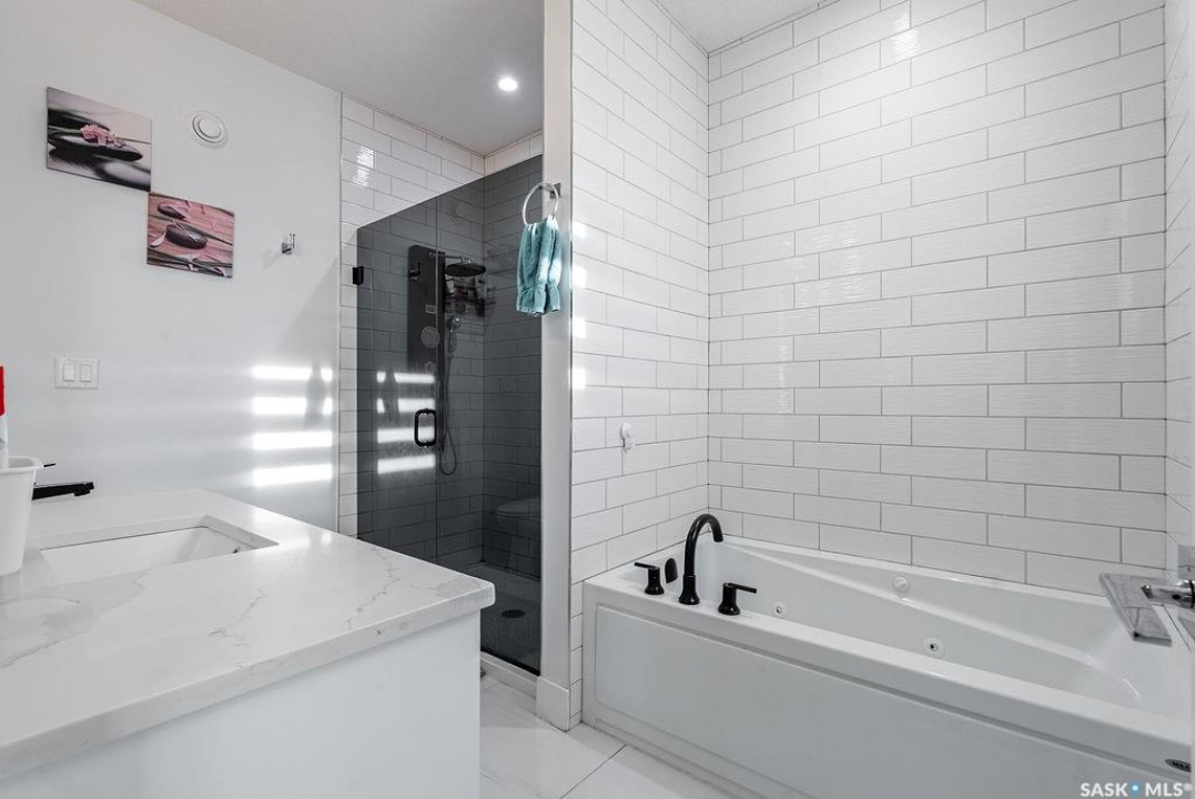 A must see! This custom-built bi-level in Rosewood, offers a legal two-bedroom basement suite and a thoughtfully designed layout throughout. The main floor features grand 10-foot ceilings and tile flooring, creating a bright and upscale feel. The spacious living room is accompanied by a sleek electric fireplace, while the dining area leads to a huge covered deck finished with artificial turf, perfect for outdoor enjoyment. The gorgeous kitchen showcases cabinetry that extends to the ceiling and is tucked away from the front entry thanks to a highly desirable L-shaped layout. Two generous bedrooms, main floor laundry, and a 3-piece bathroom with a large walk-in shower complete the main level. Upstairs, the private primary retreat offers large windows, a walk-in closet, and a luxurious 4-piece ensuite featuring a stand-alone jet tub, walk-in shower and heated floors. The lower level includes a cozy family room that could be used as another bedroom/family room or office, a closet and an additional 4-piece bathroom. There is convenient access to the heated oversized double garage. The legal basement suite has a separate entrance and includes a full kitchen, living room and dining room, two bedrooms, and a 4-piece bathroom—an excellent mortgage helper or investment opportunity. 2 furnaces, air condition and window coverings are all part of this exceptional home. Outside, enjoy a fully fenced and landscaped yard. Ideally located in Rosewood, just minutes from schools, parks, and all amenities. This home offers luxury, functionality, and income potential in one exceptional package.