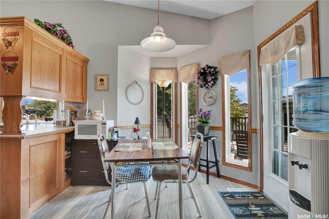 This is truly a one-of-a-kind home in Hague! With over 1,900 sq. ft. of thoughtfully designed living space, this immaculately kept bungalow is anything but average. From the moment you step inside, you'll notice the attention to detail, with the oversized entrance and a functional mudroom to the natural light streaming through the many windows. The main floor features a beautiful kitchen surrounded views of the mature trees and large deck, there is an inviting dining space, and an expansive formal dining room & front sitting room perfect for hosting family and friends. There is also a cozy living room with gas fireplace. The floor plan has been carefully modified for wheelchair accessibility, including oversized doorways, a lift in the double attached garage and a stair assist into the fully developed basement. Convenience continues with main-floor laundry and three spacious bedrooms, making daily living effortless. Downstairs, the fully developed basement offers incredible flexibility with a second kitchen—ideal for use as a nanny suite, multigenerational living, or even creating a private rental opportunity a cozy wood burning fireplace, a large bedroom, den and bathroom. In addition to the thorough maintenance there are many upgrades including new shingles, flooring, a no-maintenance vinyl fence, and a newer furnace and water heater, offering peace of mind for years to come. For parking you'll find a double attached garage, plus a second (small) detached single garage—perfect for extra storage or a workshop. With its thoughtful accessibility features, versatile spaces, and impeccable upkeep, this home is truly one of a kind and must be seen to be appreciated. Contact your favourite REALTOR � today to book your private showing!