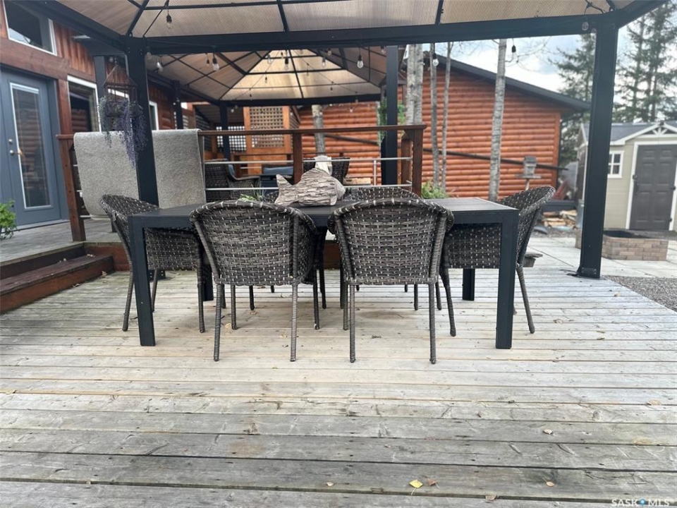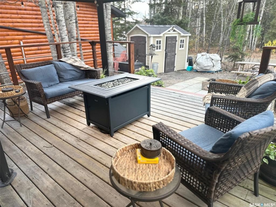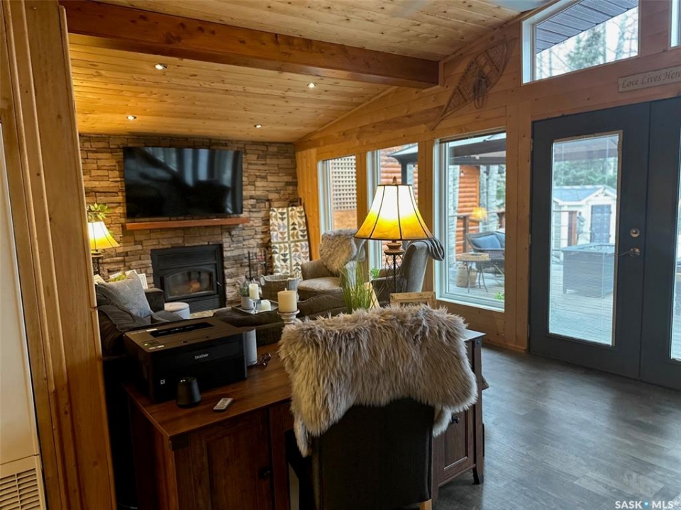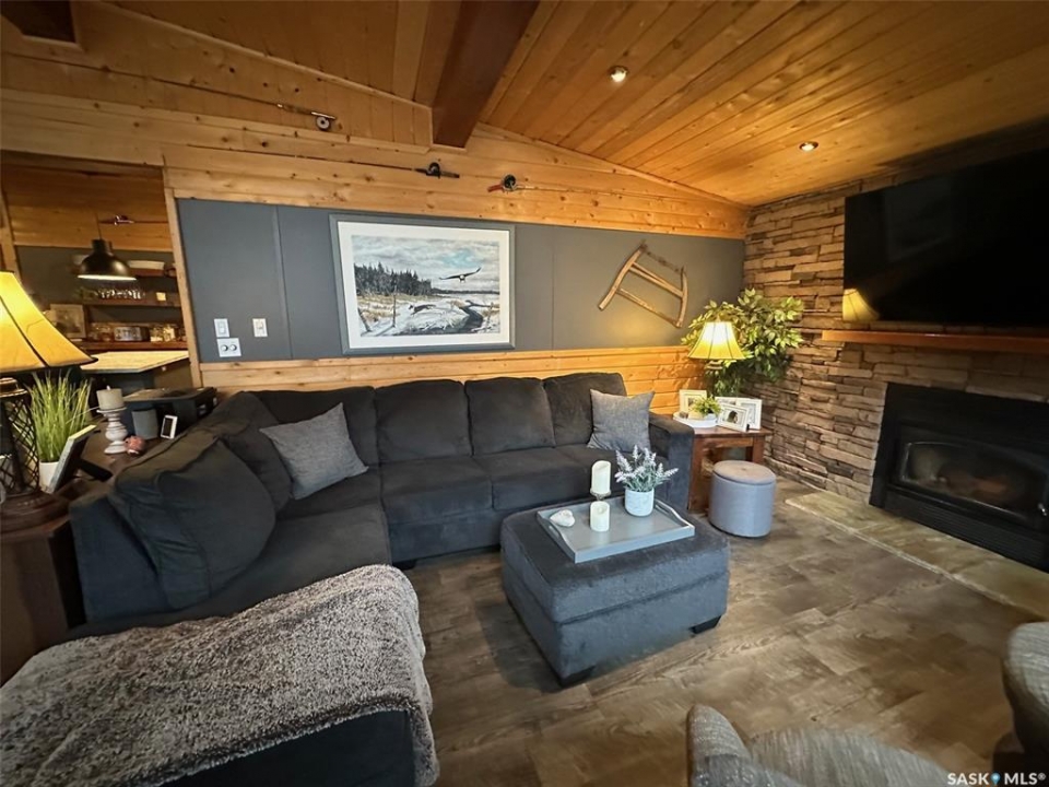 Welcome to 2003 Fox street in the beautiful Resort community of Missinipe also known as Otter Lake, located roughly 80 km north of LaRonge. This is the property you've been waiting for with year round road access and year round running water and sewer makes a prime 4 season adventure destination. On arrival you are welcomed with a warm and inviting ambience, this gorgeous 3 bedroom 2 bath home has spared no attention to detail when it comes to decor and decorating. When you walk into this beautiful custom decorated home, you are greeted with an open concept kitchen that boasts an abundance of space for all your cooking and entertaining needs, cozy up to the island and enjoy good conversation or just enjoy the ascetics of the coffee bar and floating shelves wood ceilings and tasteful decor. Equipped with stainless steel appliance, maple cupboards stone back splash, this is a kitchen you'll never want to leave. If you are looking for a stunning home that offers a combination of amazing atmosphere for entertaining, but also captures peace and serenity of a space where you can retreat and recharge in, this is your home. Winter or summer enjoy nights curled up on the couch, with your book and the warmth of the wood burning fireplace, or have a relaxing bath in the deep soaker tub. If your feeling a little more social invite friends or family and entertain on the spacious deck and show off your bbq talents from the out door kitchen space. This meticulously kept home is perfectly located in central part of the community across from the park or a quick walk to the public beach or public boat launch. This an amazing opportunity to own your own retreat and all this amazing home and community has to offer. This is a turn key sale and comes equipped with furniture, dishes except for some personal effects and pictures the owners will be keeping. Don't let this one pass you by, Call today to book your private viewing!!