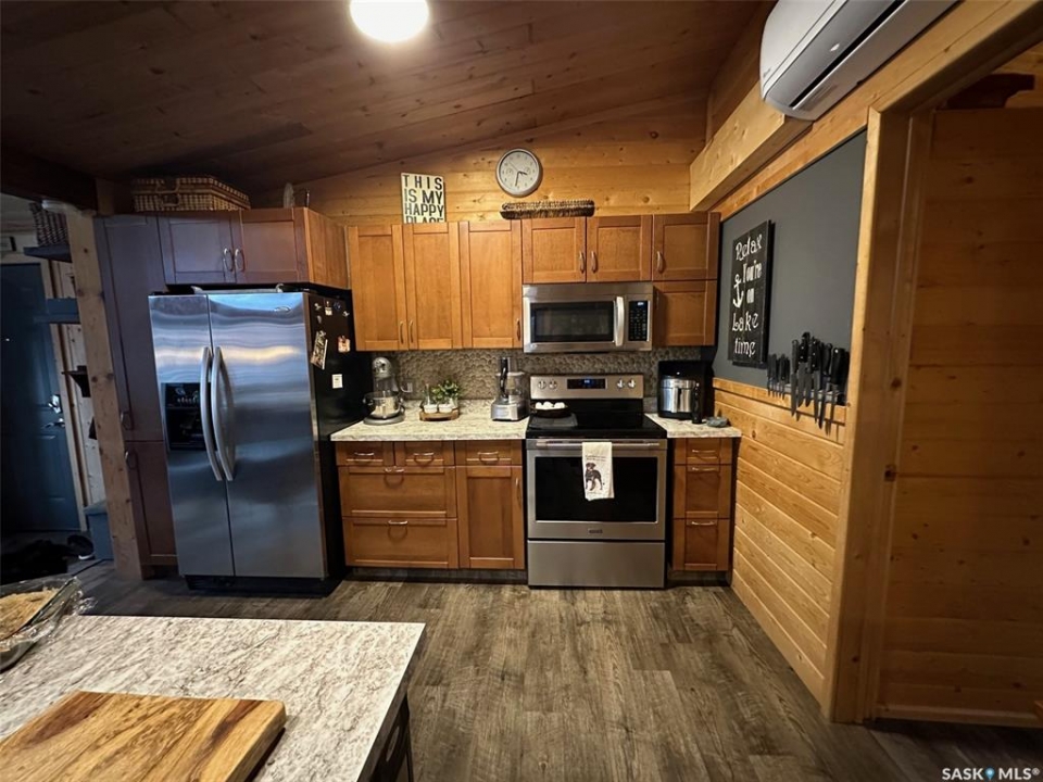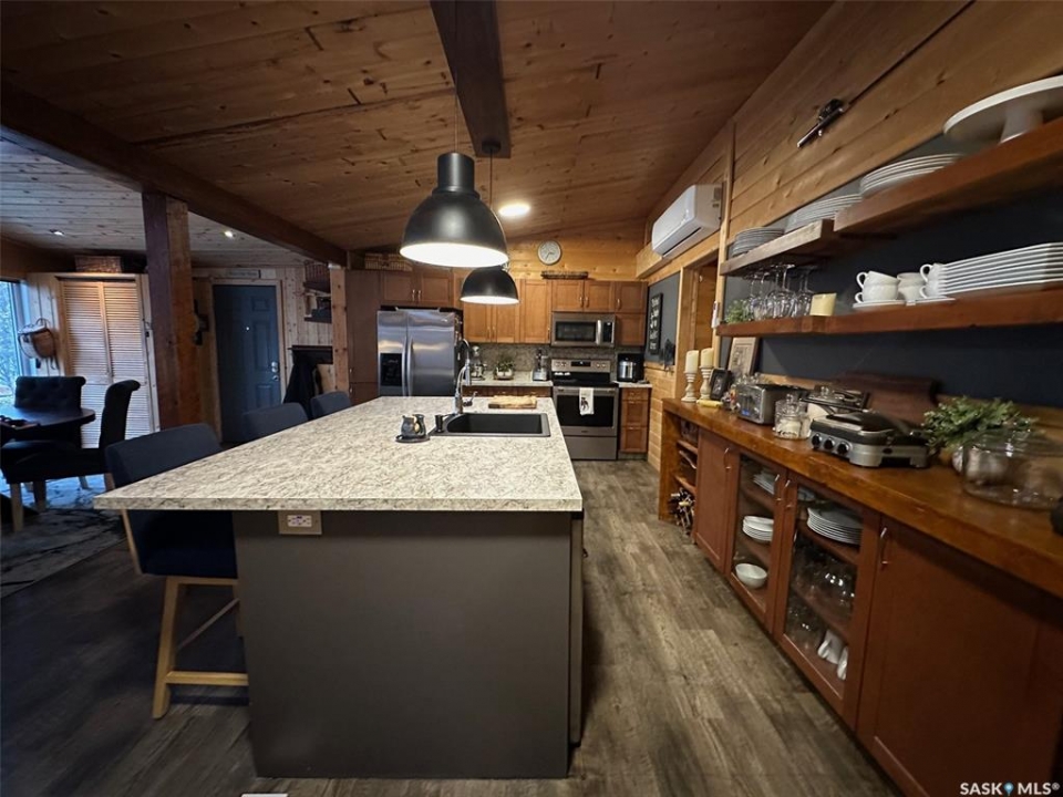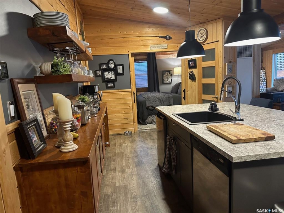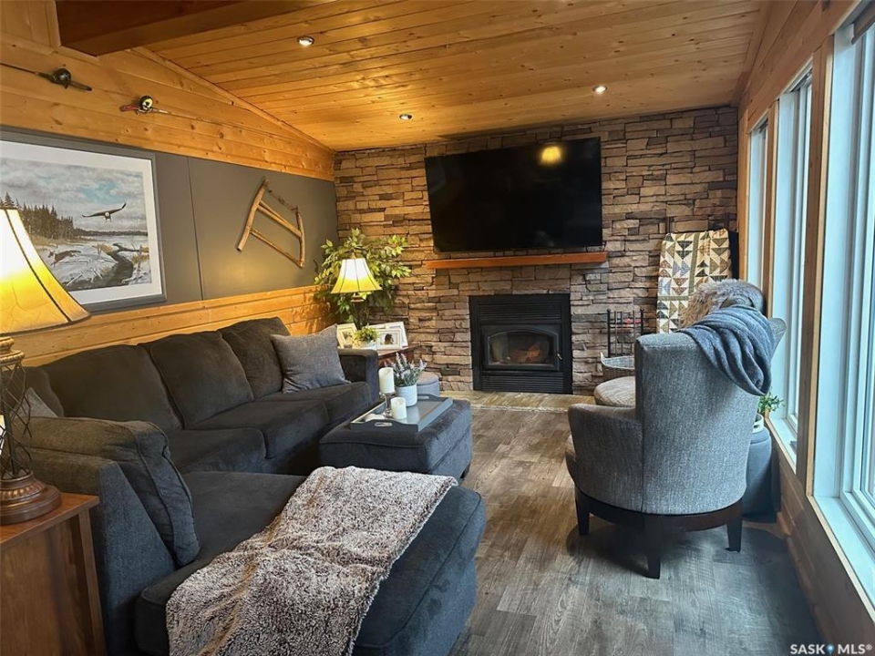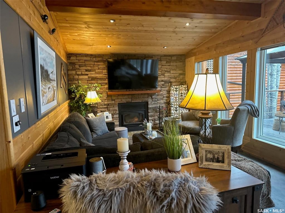 Welcome to 2003 Fox street in the beautiful Resort community of Missinipe also known as Otter Lake, located roughly 80 km north of LaRonge. This is the property you've been waiting for with year round road access and year round running water and sewer makes a prime 4 season adventure destination. On arrival you are welcomed with a warm and inviting ambience, this gorgeous 3 bedroom 2 bath home has spared no attention to detail when it comes to decor and decorating. When you walk into this beautiful custom decorated home, you are greeted with an open concept kitchen that boasts an abundance of space for all your cooking and entertaining needs, cozy up to the island and enjoy good conversation or just enjoy the ascetics of the coffee bar and floating shelves wood ceilings and tasteful decor. Equipped with stainless steel appliance, maple cupboards stone back splash, this is a kitchen you'll never want to leave. If you are looking for a stunning home that offers a combination of amazing atmosphere for entertaining, but also captures peace and serenity of a space where you can retreat and recharge in, this is your home. Winter or summer enjoy nights curled up on the couch, with your book and the warmth of the wood burning fireplace, or have a relaxing bath in the deep soaker tub. If your feeling a little more social invite friends or family and entertain on the spacious deck and show off your bbq talents from the out door kitchen space. This meticulously kept home is perfectly located in central part of the community across from the park or a quick walk to the public beach or public boat launch. This an amazing opportunity to own your own retreat and all this amazing home and community has to offer. This is a turn key sale and comes equipped with furniture, dishes except for some personal effects and pictures the owners will be keeping. Don't let this one pass you by, Call today to book your private viewing!!
