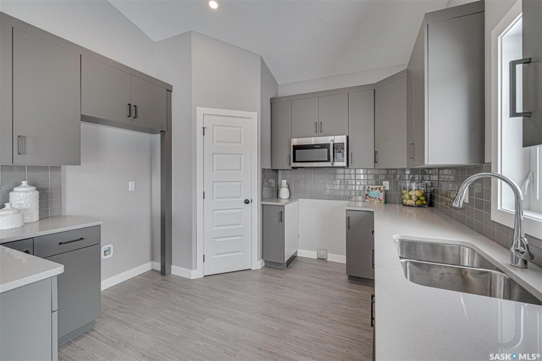 "New" Ehrenburg built 1332 sq/ft Modified Bi level. Spacious and open floor plan. Basement level is designed to allow for an Optional 2 Bedroom LEGAL SUITE with its own private entry! Kitchen features: Superior built Custom cabinets, exterior vented OTR microwave, built in dishwasher and quartz counter tops. Also on the main there are 2 bedrooms and 3 Pc bathroom. Upper level is the Master bedroom with walk in closet and 3 piece ensuite.. Double attached garage. Poured concrete driveway and front landscaping. Triple glazed windows. Scheduled for a April 2026 possession. Currently Under Construction. **NOTE** Pictures are from a previously completed Unit. Interior and Exterior specs vary between builds.