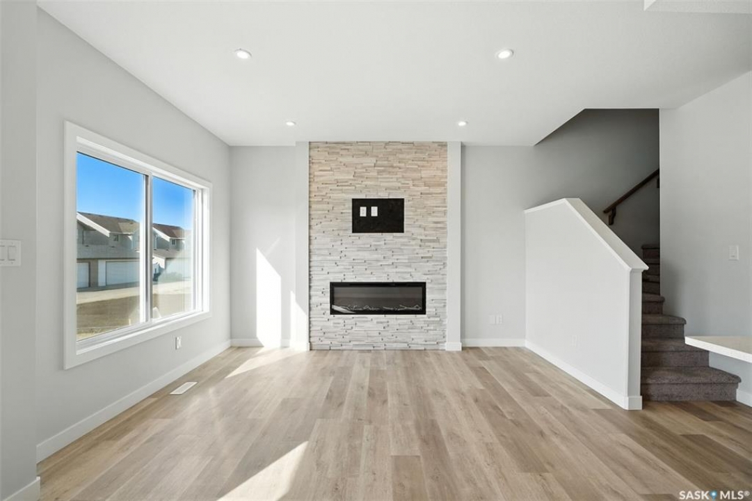 Ehrenburg Homes is the 2025 Builder of the Year! Ehrenburg Homes! New Townhomes in Aspen Ridge – Quality. Style. Value. Discover your dream home in this exciting new Aspen Ridge townhome project by Ehrenburg Homes. Proven floorplans ranging from 1517–1530 sq. ft., A well designed thoughtful layout with high-end finishes throughout. Main Floor Highlights: • Durable Hydro Plank wide flooring throughout • Open concept layout for a fresh, modern vibe • Superior custom cabinetry with quartz countertops • Sit-up island and spacious dining area • High-quality closet shelving in every room Upper Level Features: • 3 comfortable bedrooms • BONUS ROOM – perfect second living room • 4-piece main bathroom • Convenient upper-level laundry • Spacious primary bedroom with walk-in closet and stunning 4-piece ensuite featuring dual sinks Additional Features: • Triple-pane windows, high-efficiency furnace, heat recovery ventilation system • Central vac rough-in • Attached garage with concrete driveway & sidewalks • Landscaped front yard + back patio included • Basement is framed, insulated, and ready for development • Saskatchewan New Home Warranty enrolled • PST & GST included in price (rebate to builder) • Finishing colors may vary by unit Don't miss your chance to own one of these beautifully crafted homes in one of Saskatoon's most sought-after communities.