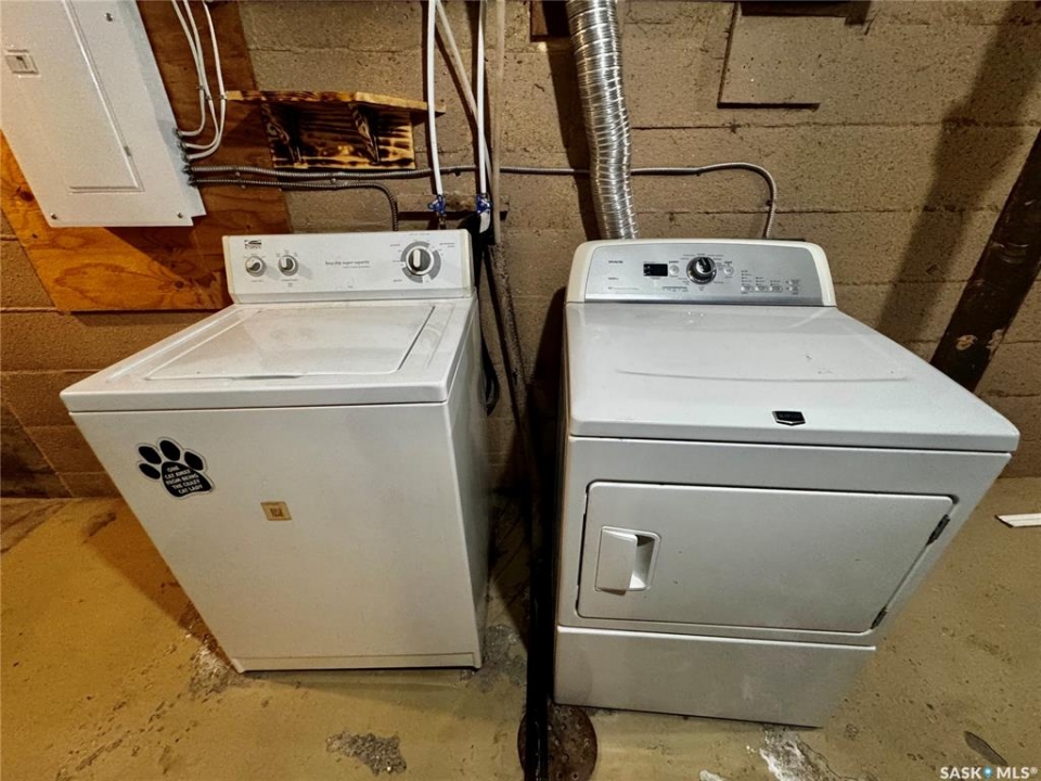 Immediate Possession Available! Welcome to 159 Peaker Avenue in Yorkton SK. Driving up to the property you will find off street parking for up to 3 vehicles. Entering the home from the west entry door will bring you to a porch area. A few steps over will take you into the large living room with west facing window. The kitchen area features included fridge, stove, microwave, and dishwasher. The east facing windows allows a great view of the back yard and green space known as Roslyn Hill. The kitchen also has direct entry to the east facing deck (12x16). The flooring in the kitchen and living room were updated in 2021 with Vinyl Plank Flooring. There are two good sized bedrooms on the main floor with updated flooring (Vinyl Plank Flooring 2017). The 4 piece bathroom completes the main floor living space. The stairs to the basement are carpet and lead to an extra large rec room. Part of the rec room area can be sectioned off for a bedroom or office area. The rec room area also has new Vinyl Plank Flooring (2018). The rest of the basement is used for laundry, utility, and storage. The laundry area features included washer and dryer. The utility area features HE Furnace with Central Air (2017), Updated 100 AMP Electrical Panel, Water Heater, Water Softener (2022), and RO System. The extra large back yard is fully fenced with entry points to the back alley, and front driveway. Enjoy outdoor living on the 12x16 deck with direct entry to the kitchen. The shingles were done in 2023. The street is generally quieter with friendly neighbours. Enjoy year round activities at the famous Roslyn Hill, known for a popular toboggan hang out in the winter and a beautiful green space in the warmer months. This property is not for rent or rent to own.