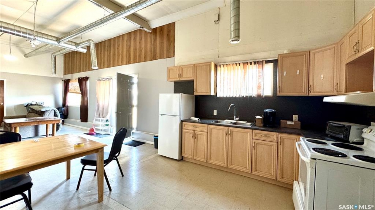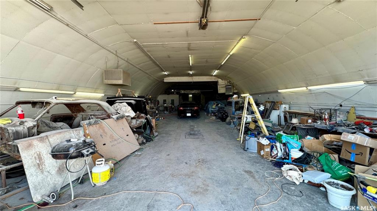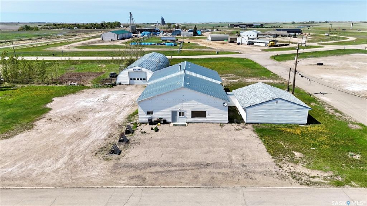 109 McGregor St – MULTI-USE COMMERCIAL PROPERTY IN Davidson, SK This versatile property spans 11 titled parcels in the heart of Davidson, offering a rare combination of COMMERCIAL SHOP SPACE, living quarters, and storage. Originally built in 1971 as a Ford dealership, the main building now features a renovated front area with a kitchen, living room, office space, and four lockable bedrooms - ideal for staff housing or a live/work setup. The rear workshop, built in 1973, includes a forced air furnace, TWO HOISTS (one drive-on, one post), a large air compressor, and a seamless metal snaplock roof (10 years ago). An overhead door at the back of the building provides convenient access to the shop area housing the hoists. Attached is a 1,464 sq ft COLD STORAGE building, perfect for additional equipment or material storage. Also on-site is a 40' x 120' Arch Rib/Quonset-style building, seamless metal snaplock roof, currently used privately as a PAINT AND BODY SHOP. It includes a paint booth, storage area, frame tie-downs, and a DEVILBISS heated air make-up unit that filters and heats air for the booth while venting exhaust. An overhead door provides vehicle access, with the booth located at the back of the structure. This Quonset is adjoined to a FENCED COMPOUND, ideal for secure outdoor storage. Whether you're expanding an automotive business, seeking mixed-use space, or looking for a centrally located investment, this well-equipped property delivers space, functionality, and long-term potential.