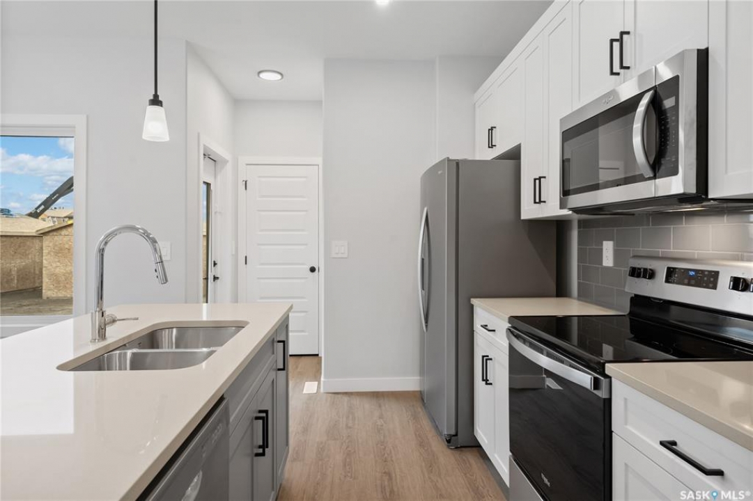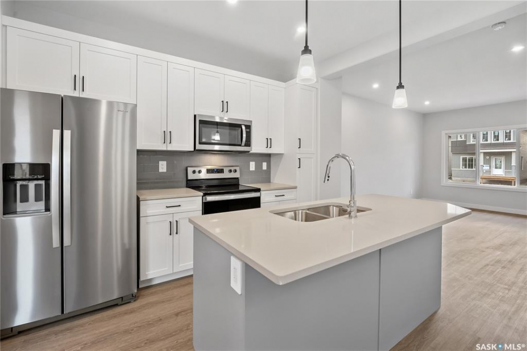 Welcome to the Ashwood, premier builder Ehrenburg Home's latest offering in Eastbrook! Laneway homes now including double detached garages! A vibrant new area close to all amenities, schools and parks. Top quality construction and materials used throughout. Main floor layout is perfect for entertaining. Spacious front entry leads to a wide open floor plan. Large living room with stack stone feature wall with electric fireplace. Beautiful contemporary design. Kitchen features center island/eating bar, pantry, and quartz counters. Extra large eating area to accommodate family dinners. Handy 2 piece bath off the rear door. 2nd level boasts large primary suite with walk in closet and ensuite, two additional bedrooms, full bath and handy laundry room. Bsmt has side entrance for future development. Exterior walls are framed and insulated with roughed in plumbing. All Ehrenburg Homes offer a superior construction foundation with a 4" rebar reinforced slab and is built on piles. Double detached garage 20x22. Exterior front landscaping, and underground sprinklers (front only) are included. Sask new home warranty included. So many extras with an Ehrenburg Home call today for more details! PHOTOS FROM PREVIOUSLY STAGED BUILD