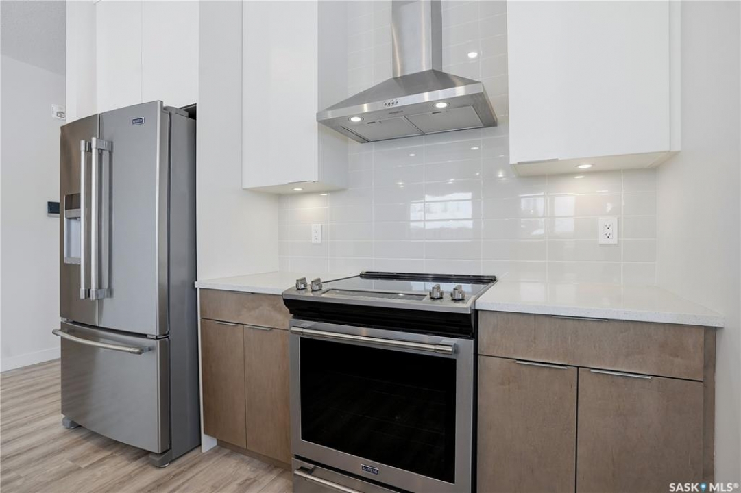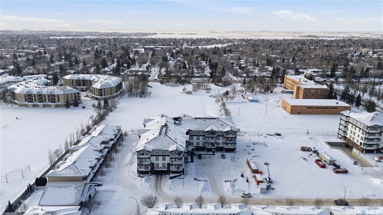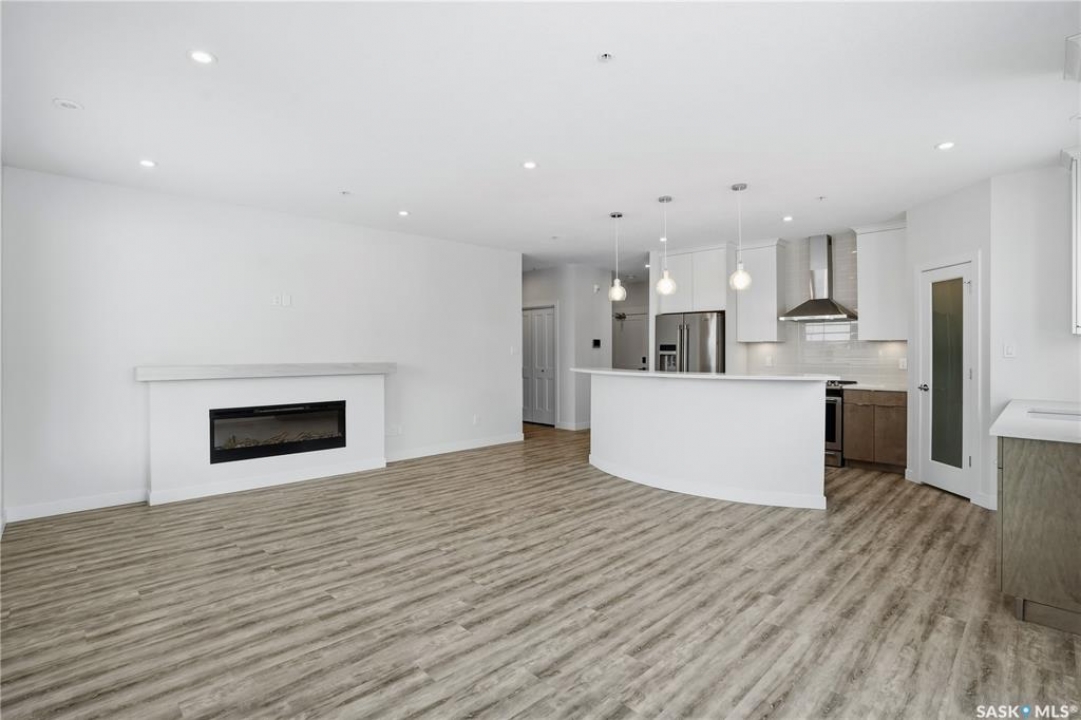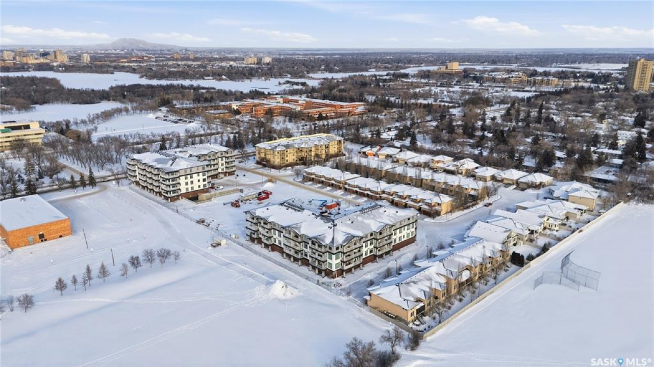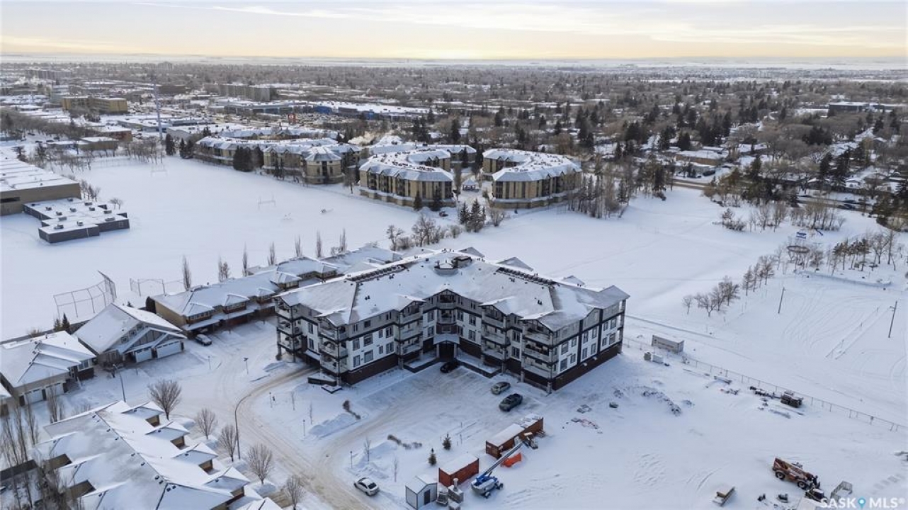 Where luxury meets convenience — welcome to Camden Hall, located in the prestigious Evans Court development just steps from Wascana Park. Offering a lifestyle designed for both young professionals and empty nesters, Camden Hall combines modern elegance with desirable amenities, including an owner's lounge, fitness facility, and heated underground parking. This next-to-new (completed in 2022) corner-unit condo spans 1,141 sq. ft. The inviting foyer leads to an open-concept living space featuring 9-foot ceilings, large windows, and a cozy fireplace — all accented by recessed pot lighting. An oversized, private, northeast-facing balcony with a natural gas BBQ hook-up extends the living area outdoors. The stunning kitchen boasts full-height cabinetry to the ceiling, two-tone finishes, under-cabinet lighting, quartz countertops, a tiled backsplash, stainless steel appliances, and a corner pantry complete with lighting, electrical, and a microwave. The primary suite offers a spacious walk-in closet with built-in shelving and a spa-inspired ensuite featuring dual sinks, quartz countertops, and a walk-in shower with a seat. The second bedroom provides ample closet space, while a full 4-pc main bath adds comfort and versatility. Additional highlights include elegant top-down, bottom-up window coverings, in-suite laundry, an on-demand water heater, hot water forced-air heating, an underground parking stall with locked storage, same-floor access to the owner's lounge (featuring TVs, a fireplace, a pool table, kitchen, and dining area), a private gym/fitness facility, and convenient garbage/recycling chutes. Camden Hall is known for its impeccable maintenance and prime location. Don't miss your chance to experience luxury living in this exceptional community — in one of Regina's most sought-after neighbourhoods. Contact your REALTOR � today to book your private showing.