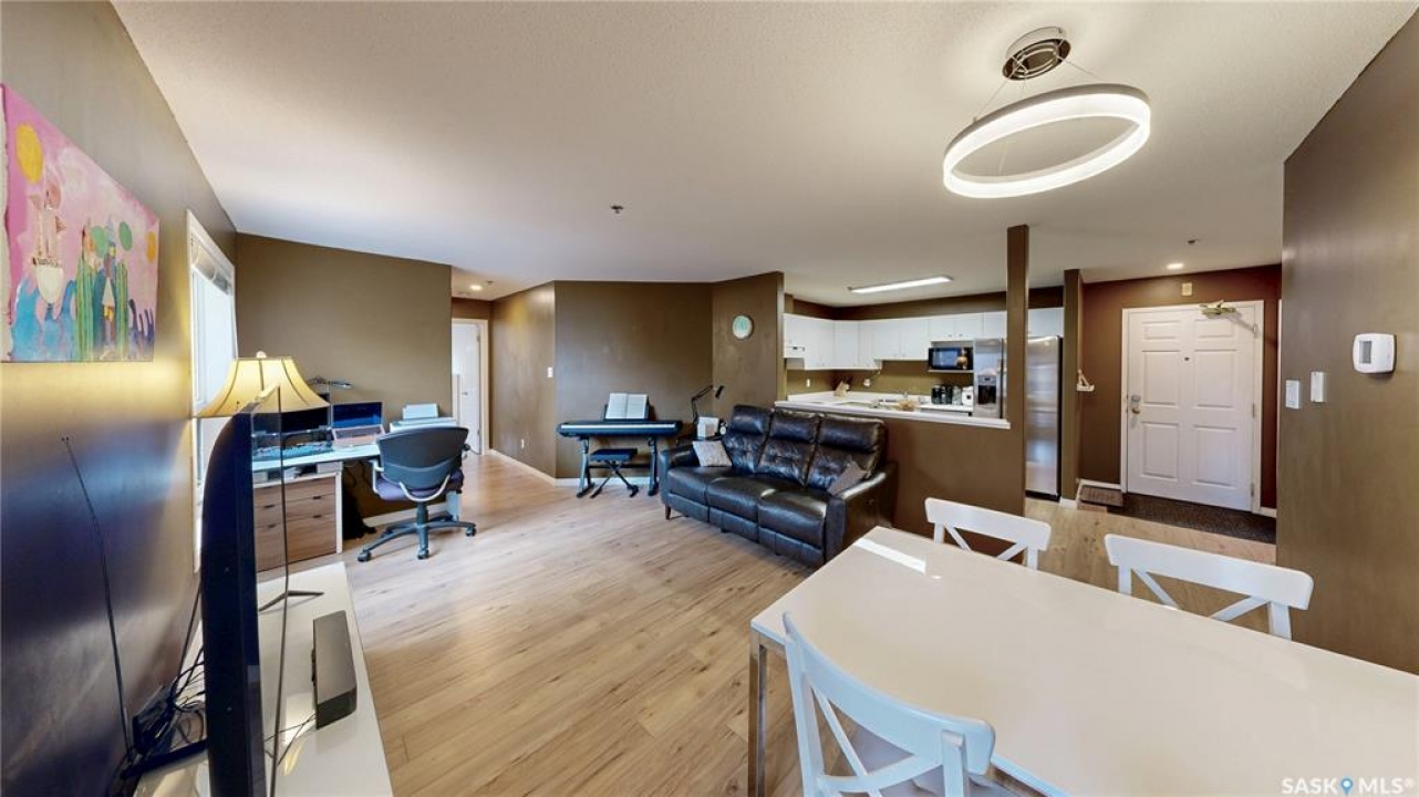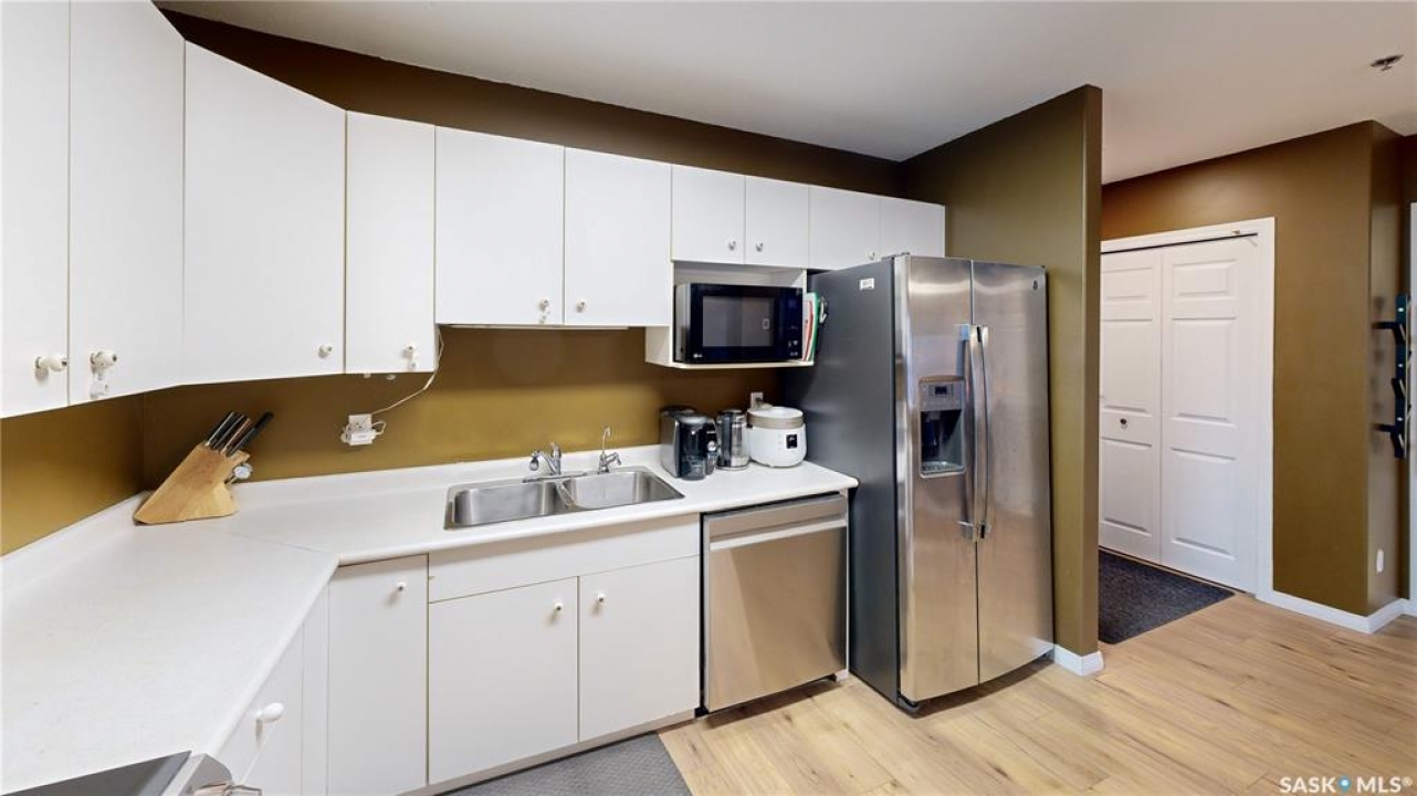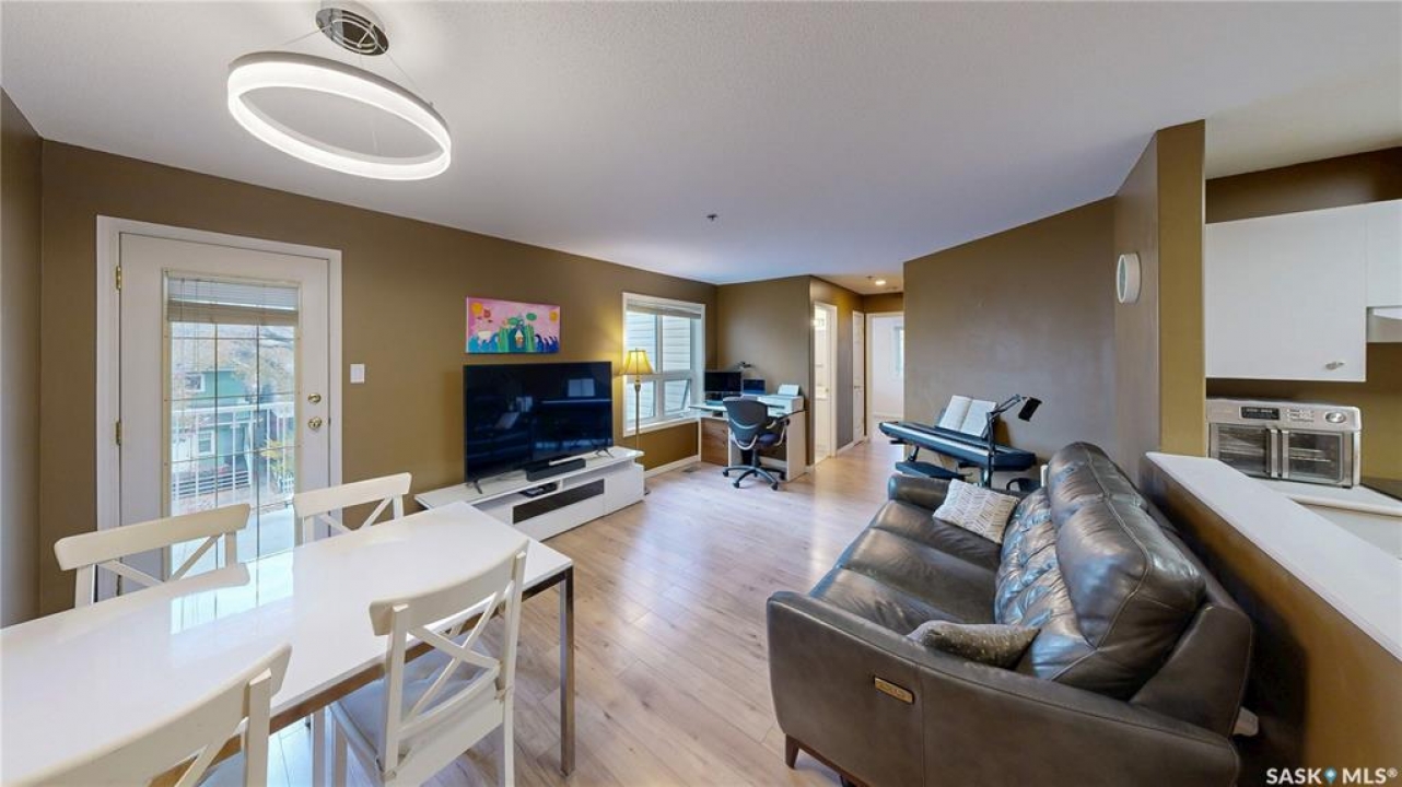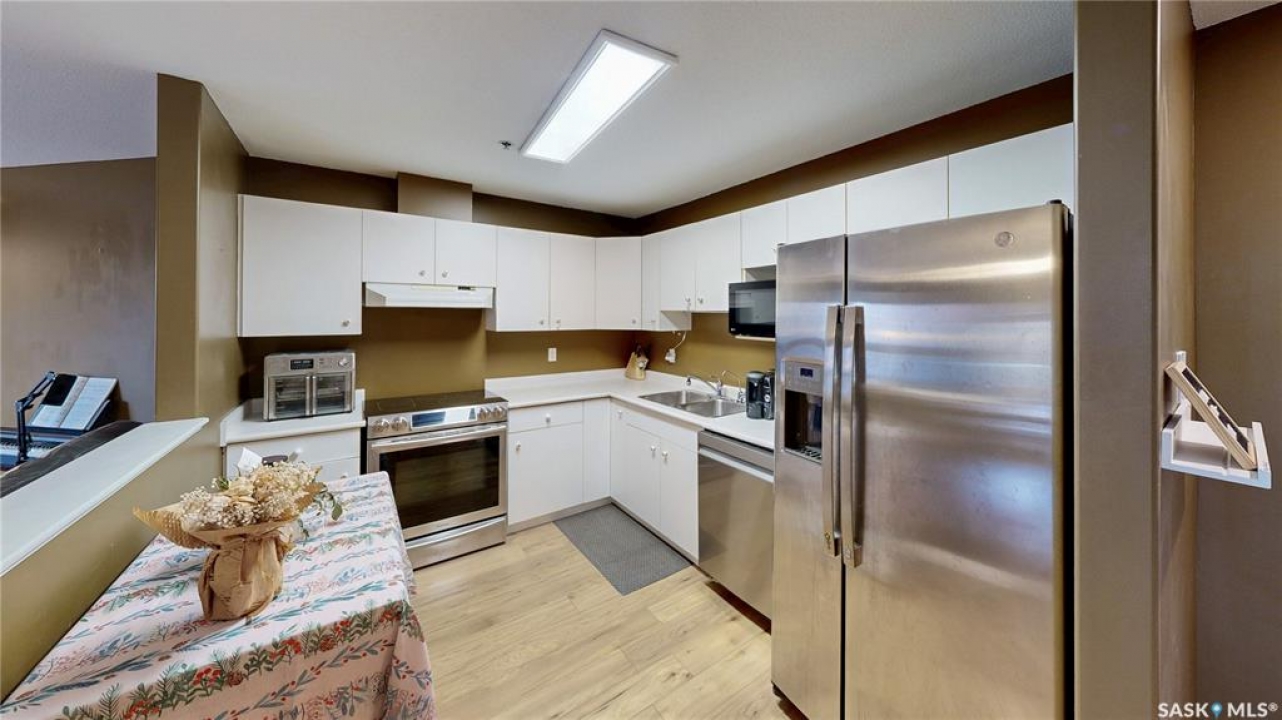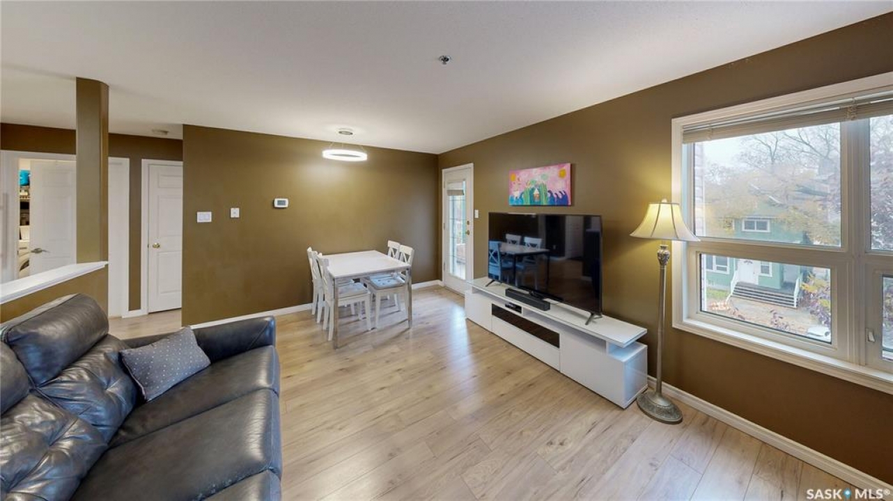 Welcome to this well-kept corner unit in the heart of Regina's sought-after Cathedral neighbourhood. Ideally located just steps from the vibrant downtown core and only a short walk to Wascana Lake, you'll enjoy easy access to restaurants, bike and walking paths, the museum, Wascana Pool and all the outdoor amenities of Wascana Centre. The entryway opens to a spacious kitchen with plenty of cupboard storage, generous counter space, and some newer appliances. Just off the kitchen, a large laundry room provides excellent additional storage or potential pantry space. The layout offers great separation between the two bedrooms, each located at opposite ends of the unit. Between them sits a bright living and dining area with a comfortable, open feel. A full four-piece bathroom completes the interior. As a corner unit, you'll appreciate both west- and north-facing windows, filling the space with natural light throughout the day. The west-facing balcony is perfect for catching evening sunsets, and has access to the utility room for the unit which houses the furnace and provides a bit more heated storage space. The building features a shared second-floor courtyard, ideal for relaxing or visiting with neighbours, and secure underground parking adds comfort through all seasons. If you're looking for a well-situated home close to downtown conveniences and scenic Wascana Park, this Cathedral-area condo should be on your list to view!