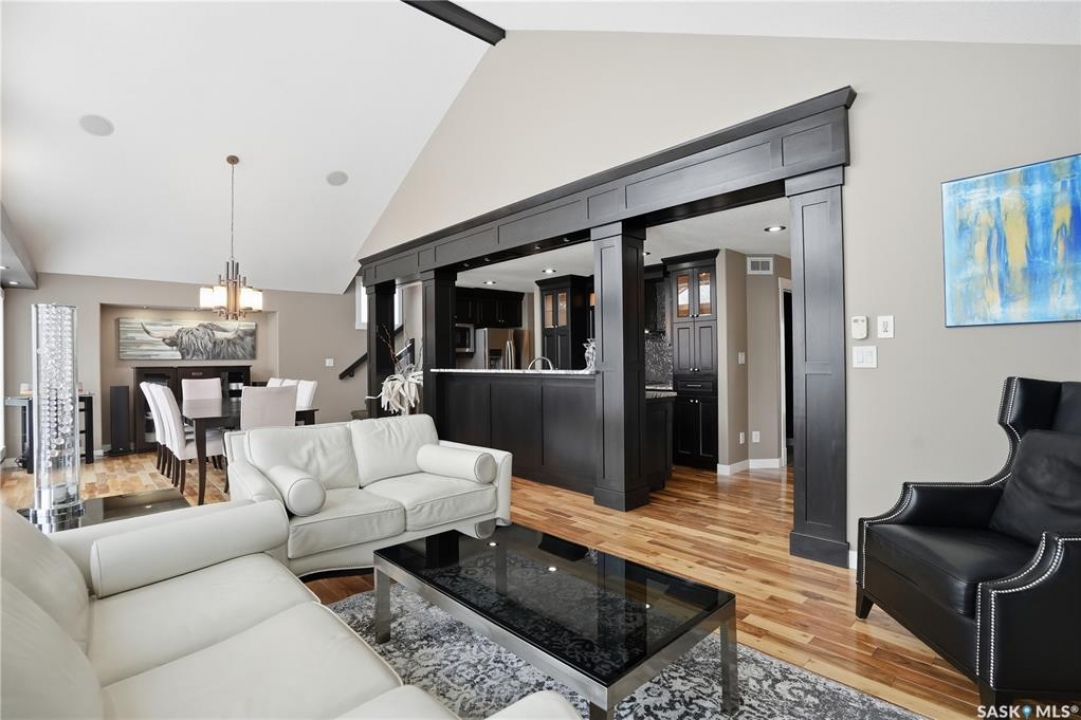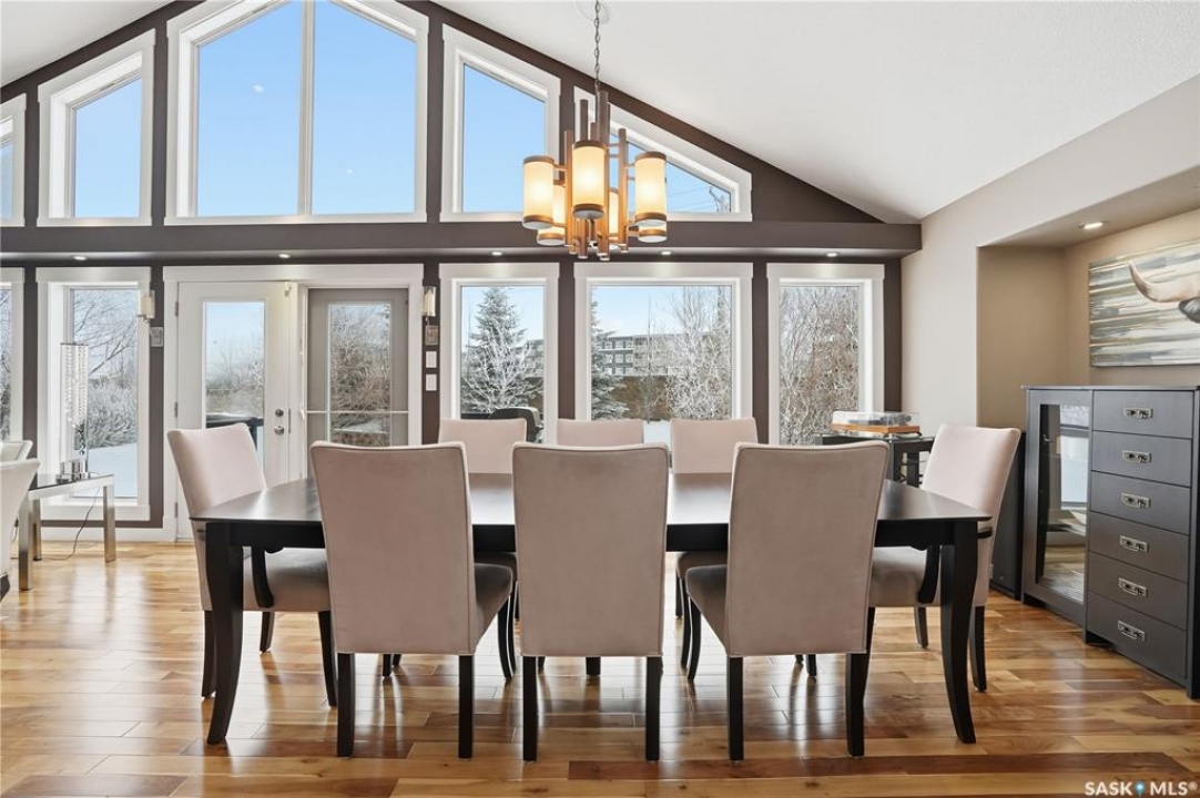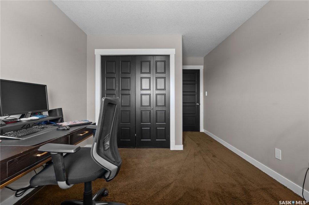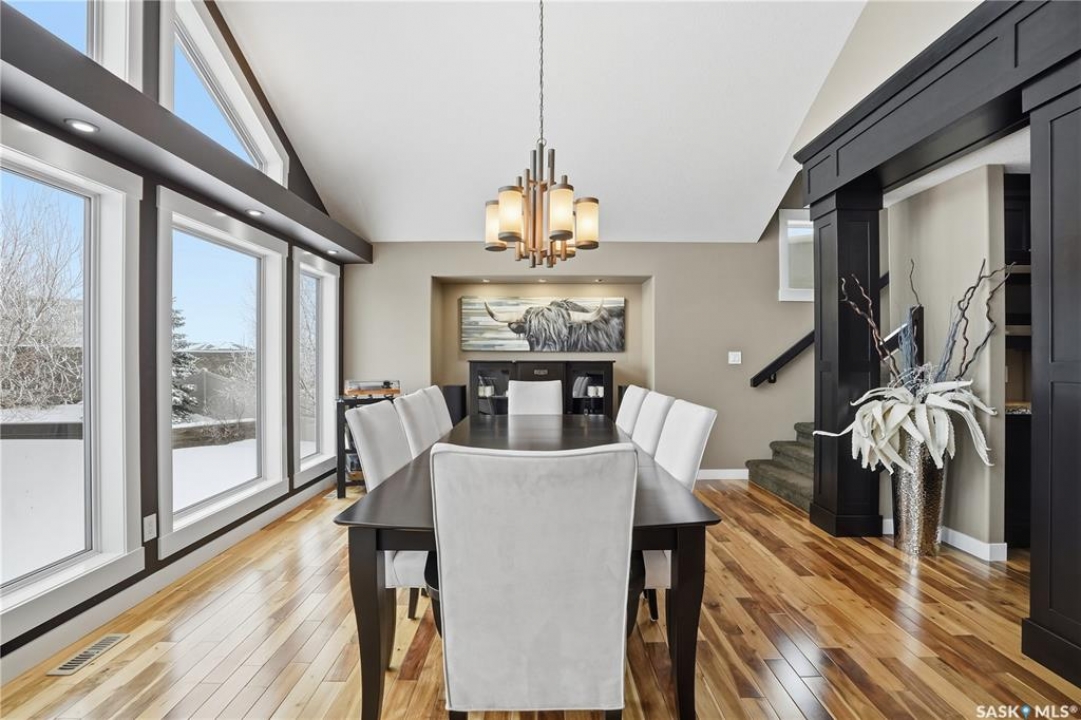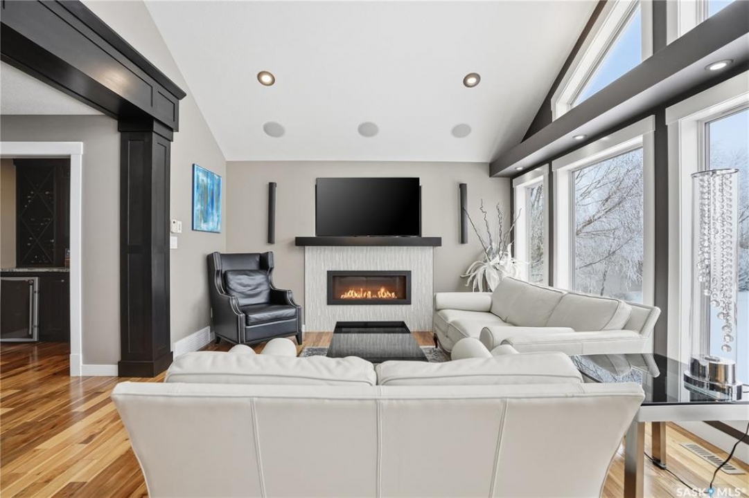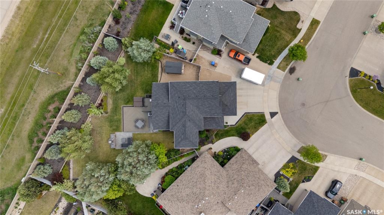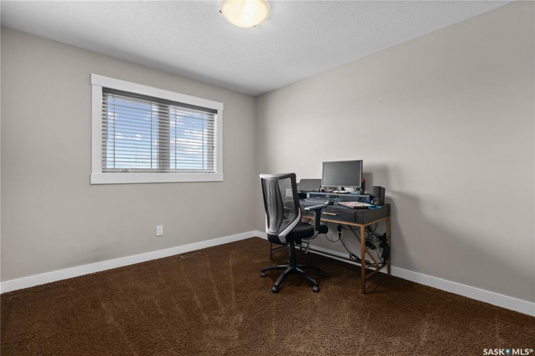Stunning home in the desirable neighbourhood of the Creeks, proudly voted Best Custom Home under 2,400 sq. ft. by the Regina Home Builders' Association in 2012. Built by Stahmann Homes, this property showcases exceptional craftsmanship and thoughtful attention to detail throughout. The striking stone exterior offers beautiful street appeal, complemented by wide concrete steps leading to a covered front veranda. Inside, you're welcomed by a tiled entryway that opens to a bright and functional main-floor office, perfectly sized at 12' x 12' with two large windows allowing natural light to flow through. The kitchen is designed for both everyday living and entertaining, with sightlines to the living and dining areas and lovely views of the park-like backyard. It features custom stained maple cabinetry, granite countertops, a gas range, stainless steel appliances, and a convenient butler's pantry. Rich tigerwood walnut flooring adds warmth and elegance to the main living space. Spacious living room and dining room combination with soaring vaulted ceilings, built-in speakers and natural gas fireplace. Upstairs, you'll find three bedrooms, including a spacious primary retreat complete with in-ceiling speakers and a spa-inspired ensuite featuring ceramic tile flooring, a 5' tiled walk-in shower, and a jetted tub. The basement is nearly complete and offers a fourth bedroom, recreation room, and a 3-piece bathroom, just waiting for your finishing touches. Step outside and prepare to be impressed by the meticulously maintained backyard, with 27 planted trees, an outdoor kitchen, a wood-burning firepit, and hot tub is perfect for entertaining or relaxing year-round. A powered storage shed and underground sprinklers in both the front and back yards complete this exceptional property.