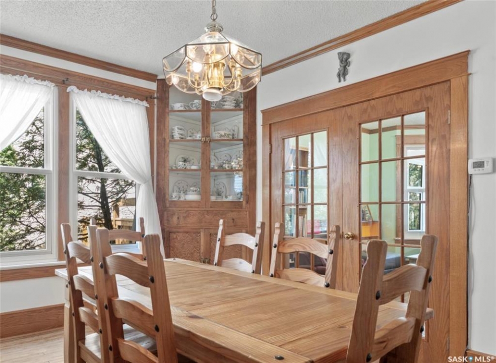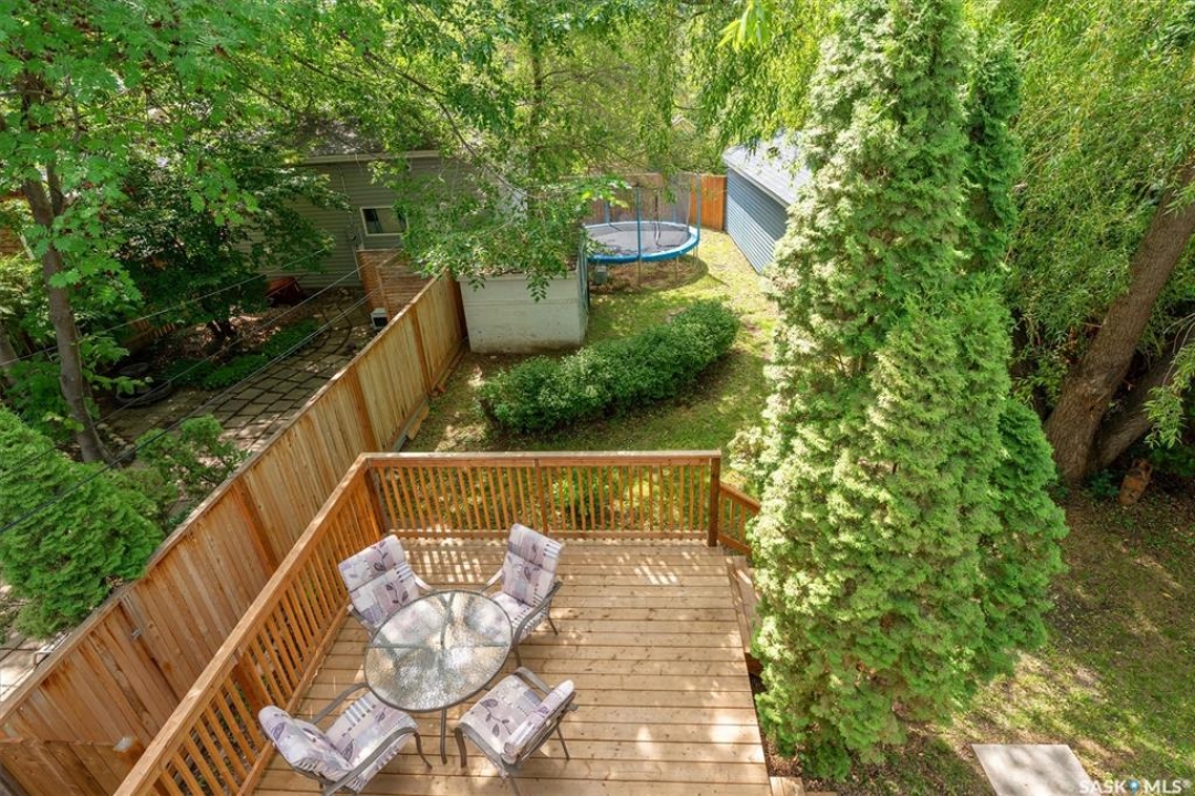 1018 Aird Street – 1912 Character Three-Story in a Storybook Setting! A character located in one of Saskatoon's coveted and walkable neighborhoods. Offering 1,850 sq ft over 3 levels, 4 bedrooms, 3 full baths, a large 37' lot, and a newer tandem detached garage. A picture-perfect front porch leads into a main floor rich in original details: hardwoods, French glass doors, woodwork, two elegant bay windows and a large dining room with a built-in glass china cabinet, plus an office / music room with an original cast fireplace. Main floor also features an oak kitchen, a full 3-piece bath, and a renovated rear porch/mudroom connecting to the backyard. Outdoor living is a highlight: unusually large, fully enclosed fenced yard (bigger than typical for the area), ideal for pets, kids, and leisure, and a sprawling double-tiered deck is perfectly suited for sunny entertaining. The front driveway adds rare, convenient parking to this property. The second level of this home offers three generously sized bedrooms, and a full bath with claw foot tub, with bay window views and a large private treetop balcony off one of the bedrooms! The entire third floor is a master retreat with a sitting area, large bedroom area, and a four-piece ensuite (shower door adjustment required). The basement is undeveloped. Notable updates include: windows, furnace, hot water heater, shingles, plumbing, asbestos removal, newer fencing, updated rear porch, piles under the front porch, shingles, and siding/shingles on the drywalled and insulated garage. This is a special home for people who love character, community, and an inner city neighbourhood - offering the historic charm you dream of, with practical upgrades.