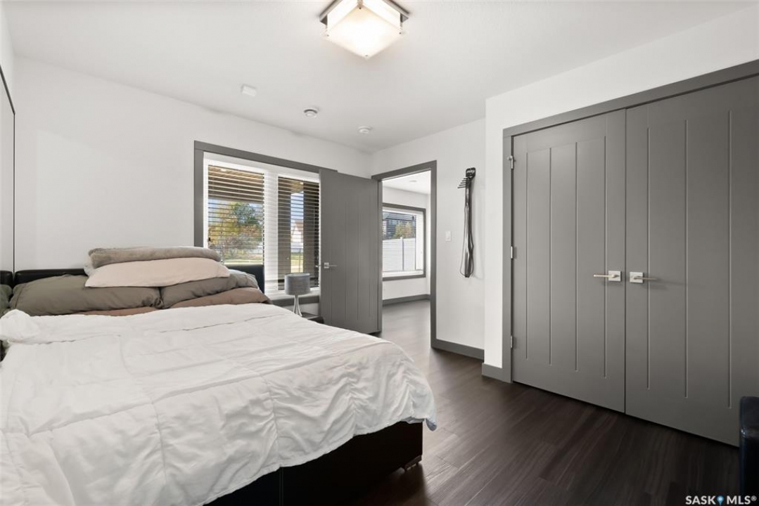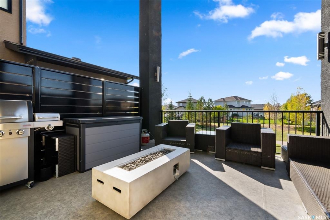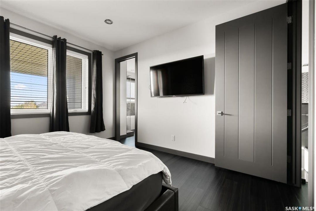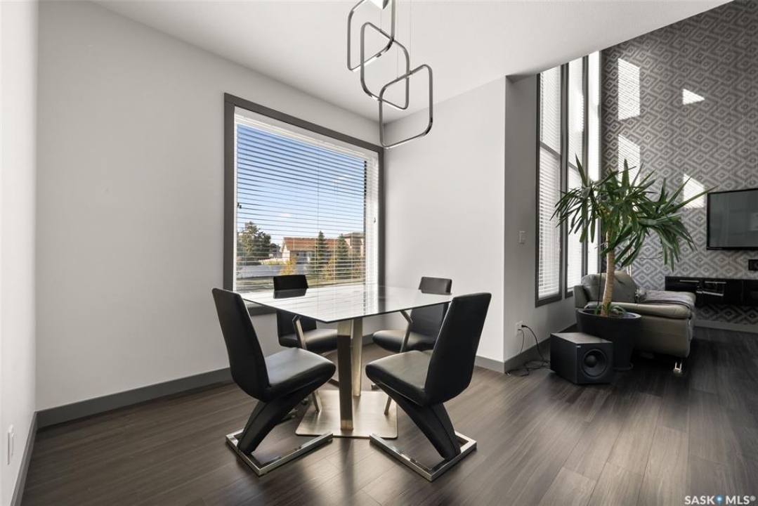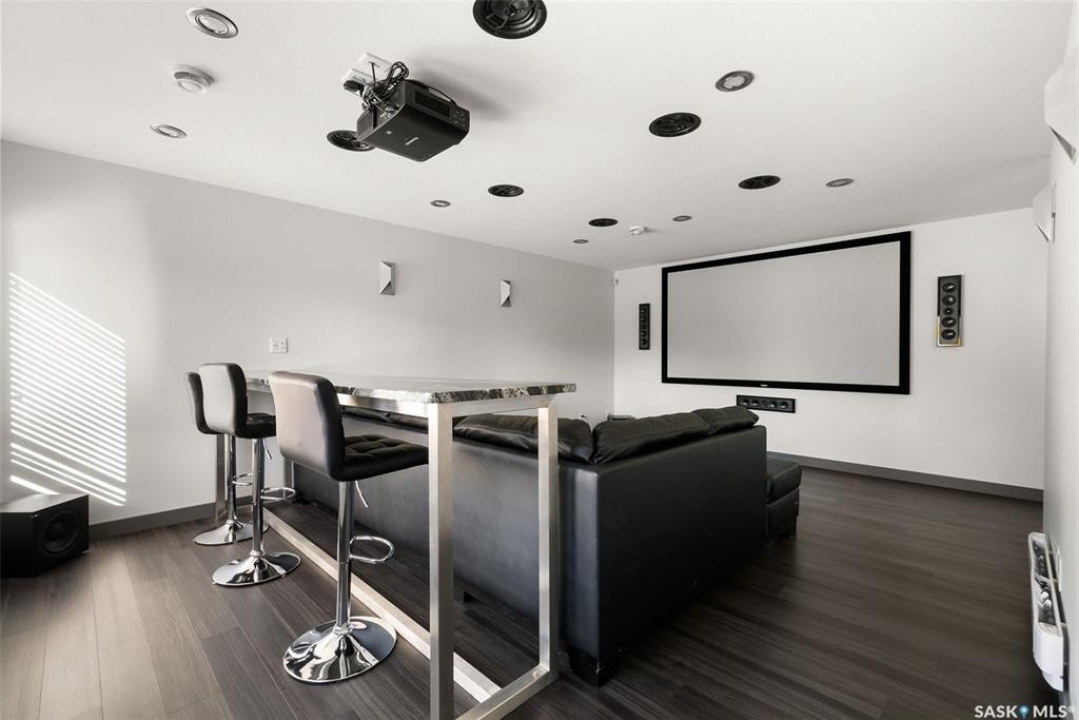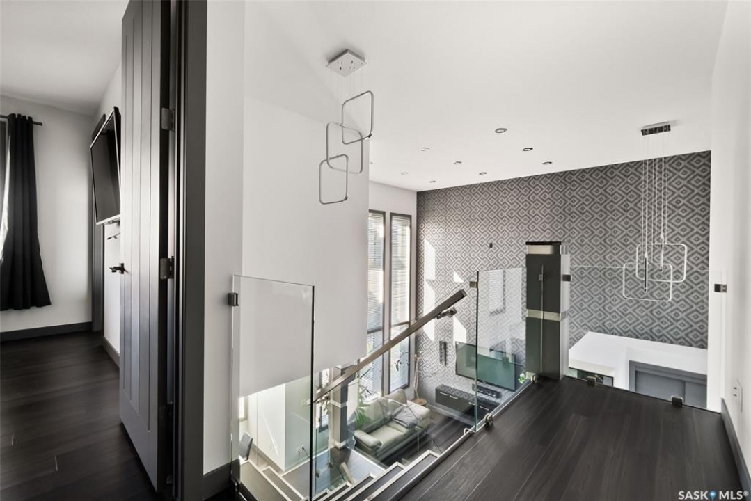 Welcome to this stunning custom-built walkout in Fairways West! This home is in a prime location and backs the beautiful green space and walking path leading to the Goulet Golf Course. The moment you step inside, 19-foot ceilings and floor-to-ceiling windows create a dramatic sense of space and light. A striking glass-and-stainless steel staircase, accented with subtle stair lighting, introduces the home's modern, refined style. The kitchen is both beautiful and practical, featuring custom white cabinetry, a generous sit-up island, granite countertops and premium stainless-steel appliances. There is garden door access from the kitchen which opens onto a private west-facing deck—ideal for morning coffee or evening entertaining while taking in the peaceful green space. Upstairs you'll find the primary retreat, complete with a walk-in closet and a luxurious five-piece ensuite featuring dual vanities, a stand-alone soaker tub and a custom-tiled shower. Two additional bedrooms, a four-piece bath, and a convenient laundry room complete this level. The fully developed walkout basement is built for entertaining or unwinding after a long day. The rec room is set up as a perfect home theatre complete with a projector screen and built-in sound system! A sleek wet bar adds style and convenience, while the fourth bedroom doubles as a guest room, office, or home gym. Expansive windows keep the space bright and welcoming. The oversized double attached garage is a standout—heated, drywalled and equipped with 12-foot ceilings, a floor drain, and water taps. There are built-in speakers throughout the house and receivers are all included. Every detail in this home combines contemporary design with practical luxury. Discover a residence where craftsmanship and lifestyle meet in one exceptional property. This Fairways West show piece is one you do not want to miss out on!