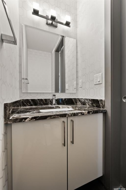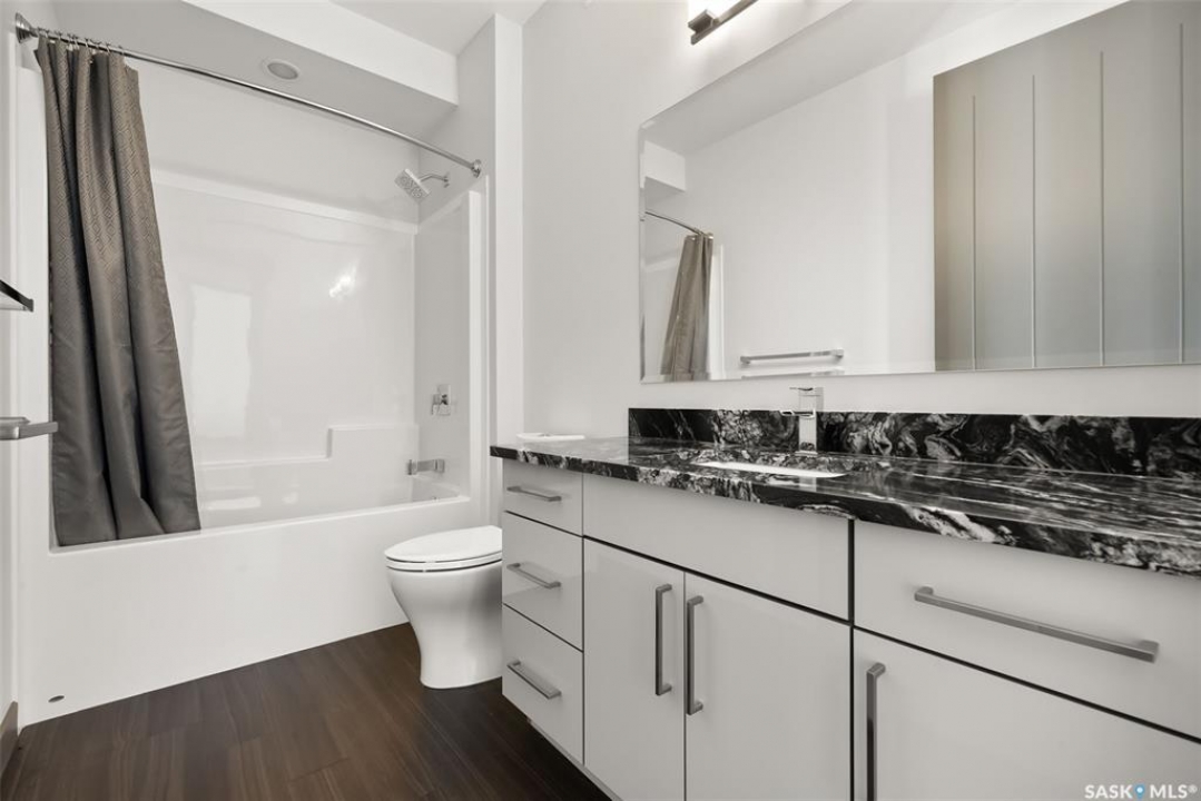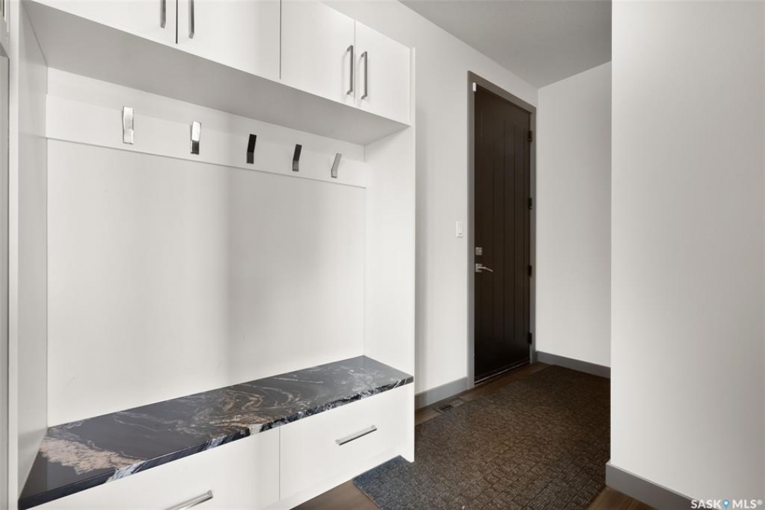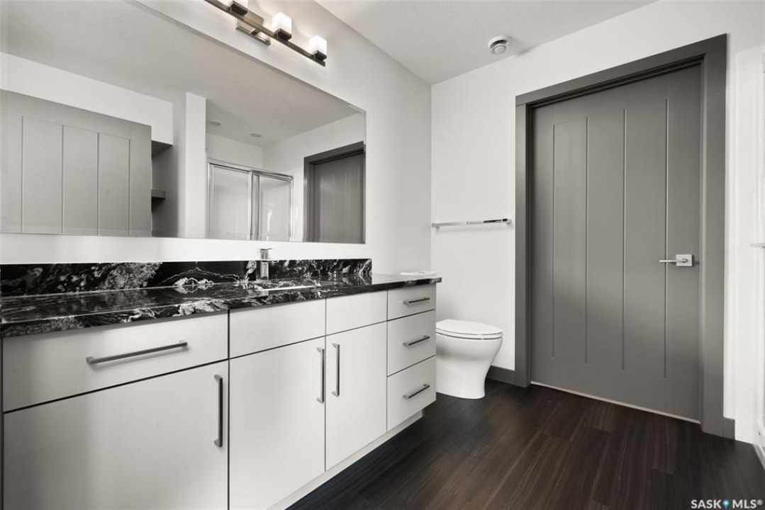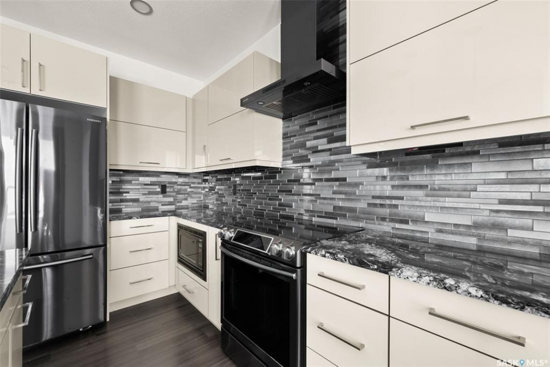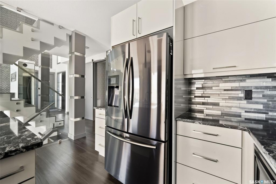 Welcome to this stunning custom-built walkout in Fairways West! This home is in a prime location and backs the beautiful green space and walking path leading to the Goulet Golf Course. The moment you step inside, 19-foot ceilings and floor-to-ceiling windows create a dramatic sense of space and light. A striking glass-and-stainless steel staircase, accented with subtle stair lighting, introduces the home's modern, refined style. The kitchen is both beautiful and practical, featuring custom white cabinetry, a generous sit-up island, granite countertops and premium stainless-steel appliances. There is garden door access from the kitchen which opens onto a private west-facing deck—ideal for morning coffee or evening entertaining while taking in the peaceful green space. Upstairs you'll find the primary retreat, complete with a walk-in closet and a luxurious five-piece ensuite featuring dual vanities, a stand-alone soaker tub and a custom-tiled shower. Two additional bedrooms, a four-piece bath, and a convenient laundry room complete this level. The fully developed walkout basement is built for entertaining or unwinding after a long day. The rec room is set up as a perfect home theatre complete with a projector screen and built-in sound system! A sleek wet bar adds style and convenience, while the fourth bedroom doubles as a guest room, office, or home gym. Expansive windows keep the space bright and welcoming. The oversized double attached garage is a standout—heated, drywalled and equipped with 12-foot ceilings, a floor drain, and water taps. There are built-in speakers throughout the house and receivers are all included. Every detail in this home combines contemporary design with practical luxury. Discover a residence where craftsmanship and lifestyle meet in one exceptional property. This Fairways West show piece is one you do not want to miss out on!