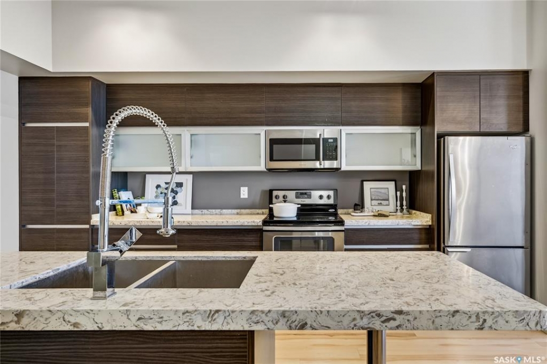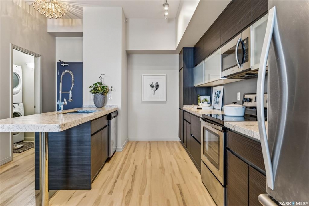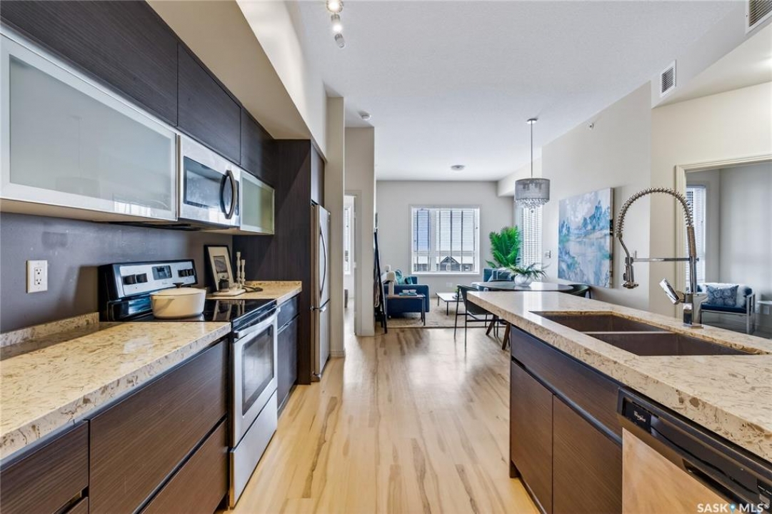 Have your own piece of Sequioa Square! Built by Meridian, you can step into this bright and beautifully finished 910 sq ft top-floor unit, where modern design meets everyday comfort. With 10 ft ceilings, large windows, and an open-concept layout, the space feels airy, warm, and inviting from the moment you walk in. The kitchen is designed to impress with sleek cabinetry, quartz countertops, stainless steel appliances, and a functional island that flows seamlessly into the dining and living areas—perfect for entertaining or relaxing at home. Heated floors throughout the entire unit add an extra level of comfort you'll appreciate year-round. This 2-bedroom, 2-bathroom layout offers excellent separation and privacy. The primary suite features a spacious walk-through closet and a spa-inspired ensuite with his-and-hers sinks and a walk-in shower. The second bedroom is ideal for guests, a home office, or additional living space. Enjoy the convenience of in-suite laundry, modern lighting, and a covered balcony—perfect for morning coffee or unwinding at the end of the day. The unit also comes with two parking stalls, including one underground, offering both comfort and practicality. Located in the sought-after Evergreen neighbourhood, you're surrounded by walking trails, parks, bus routes, gyms, and everyday amenities—making this an ideal home for professionals, first-time buyers, or downsizers alike. Call your realtor and book a showing today!