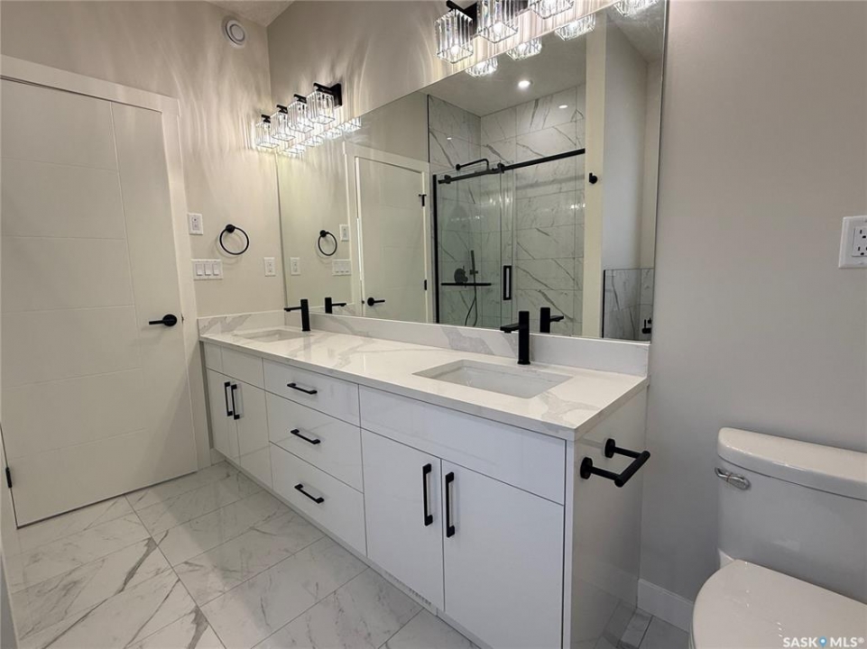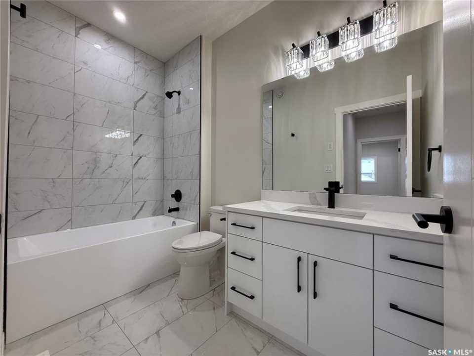 Discover the perfect blend of space and style in this brand new 1,420 sq. ft. bi-level home built by Taj Homes. Designed with functionality and modern living in mind, this home offers generous room sizes, high-end finishes, and the rare opportunity to customize select colors and finishes to make it truly your own. Situated on a partially fenced lot with no rear neighbours, this home features a 25' x 26' attached, insulated two car garage, giving you plenty of parking and storage space. The location can't be beat—close to shopping, grocery stores, schools, parks, and walking trails. Step inside to a bright and spacious open-concept main floor filled with natural light from large south-facing windows and an electric fireplace finished with shiplap. The expansive living room flows seamlessly into a chef-inspired kitchen showcasing quartz countertops, premium ceiling height cabinetry, a walk-in pantry, and a large island—ideal for both entertaining and daily family life. The main floor laundry room is a standout feature—thoughtfully designed with side-by-side appliances, countertop and upper cabinetry for maximum convenience and organization. Retreat to the primary suite, featuring a walk-in closet and a luxurious 5-piece ensuite complete with double sinks, a tiled shower, and a soaker tub. Two additional spacious bedrooms and a stylish 4-piece main bath complete the main floor. Some notable features include a on demand water heater, energy efficient furnace, All Weather Triple Pane windows, full set of stainless steel appliances, black trims and fixtures and Progressive New Home Warranty. Currently under construction, this home comes with a guaranteed possession date so you can plan your move with confidence—no delays, no surprises. Come today and customize your new home by selecting from a range of color palettes and finishes to match your personal style. NOTE PICTURES ARE FROM PREVIOUS BUILD, FINAL COLOURS AND SPECS MAY VARY