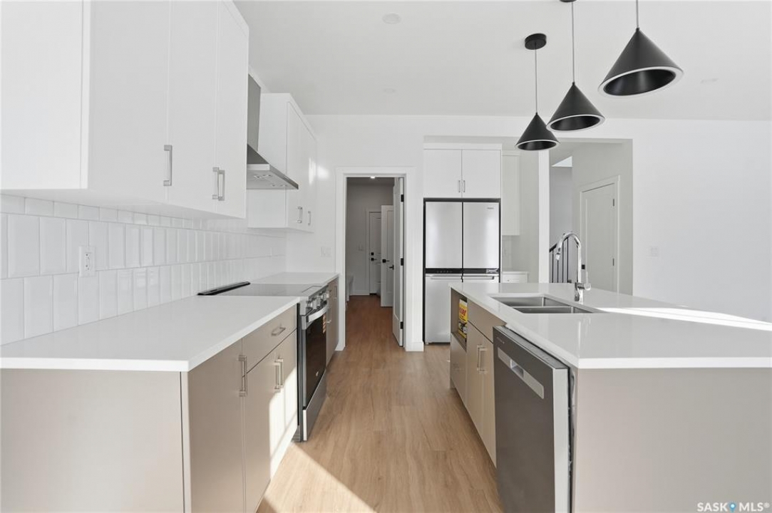 Welcome to another beautiful build by Zimroz Homes, The Frontier. This 1,880 sqft home offers an open floor plan, ideal for family life. Key highlights include an open concept kitchen with quartz countertops, walk-through pantry, upstairs bonus room, primary bedroom with a 5-piece ensuite, two additional bedrooms, main floor family room with shiplap fireplace, stainless steel appliances and central A/C, Aspen Ridge location backing green space, attached 23" x 21" garage, concrete driveway, separate side entrance for a potential legal suite. It's modern, bright, with premium finishes and outdoor greenspace access. The added separate side entrance provides flexibility for a possible legal suite or multigenerational living.