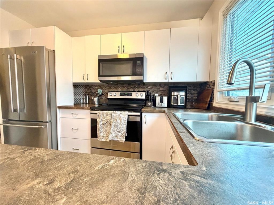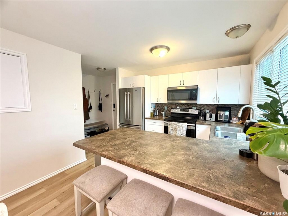 This home just might have it all! Located in sought after Battleford, there are five bedrooms and two bathrooms, the home is fully renovated and has an unbelievable 26 x 32 triple heated garage. The home has just undergone extensive renovations within past year to include the exterior repainted, all interior walls and baseboards repainted, stipple removed on majority of main, all new flooring throughout, brand new three-piece bath in basement with a beautiful tiled walk in shower, new washer, dryer, and dishwasher, exterior fence painted and new kitchen taps. There was also ice plumbed to the fridge for the ice dispenser. Additional renovations include main floor bathroom fully renovated approximately six years ago, new furnace installed in 2020, new water heater 2024, triple pane windows installed in 2014 and all three garage doors replaced. You're sure to enjoy the open layout on the main and the functionality this home provides. There are three bedrooms and one bathroom on the main floor, two very large bedrooms, a rec room, laundry, and a large storage room in the basement. The garage provides endless possibilities with three separate garage doors and a natural gas heater. If you're needing additional parking space there is a concrete pad on the west side of the house. The home is nicely tucked in offering privacy with the thick hedge that runs around two sides of the home. There is a bbq deck off the side and patio below. School bus pick up is right out front for several schools, there is a park and walking trails nearby as well as the pump track. Call for your showing today!