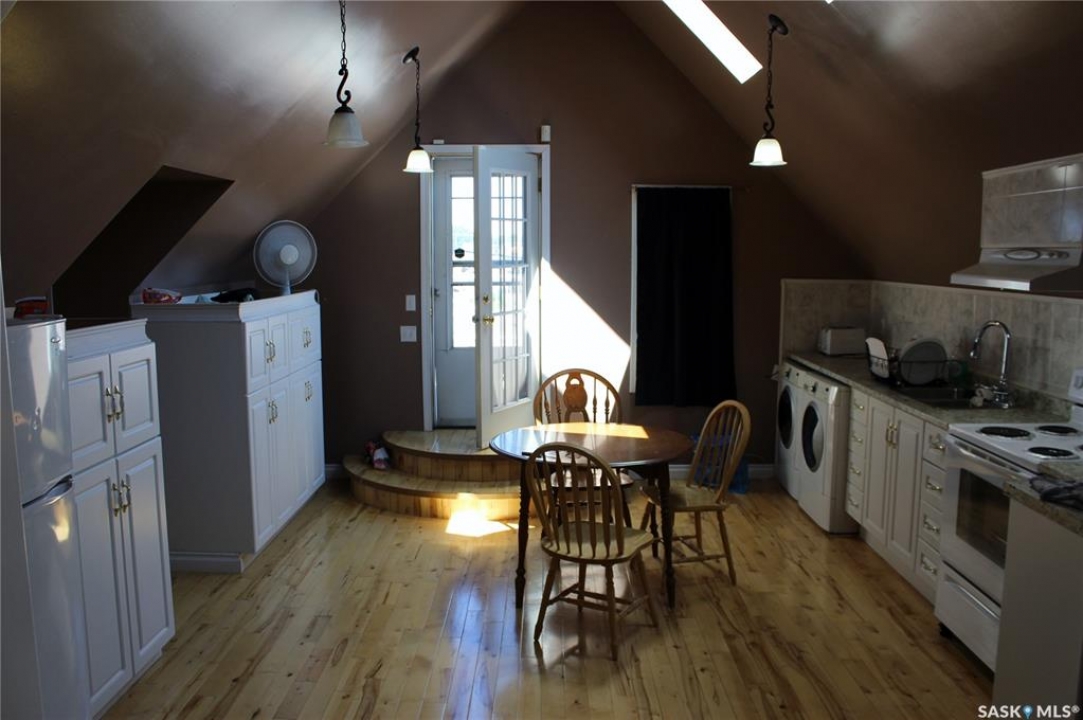 Welcome to 3 2nd Avenue SE in Weyburn! With over 2500 sf of interior living space on two floors, two large, powered, attached garages (24'x22'6' and 25'x26'6"), a huge roof top deck with vista of North, West, and East, extensive renovations, and with options for renting or using it as a single family home, this property is one of a kind! A large, lower level deck with white metal railing welcomes you either to the lower or upper levels (separate entrances). On the main, you are welcomed into the kitchen and dining area. Off of that, you have a very spacious living room/rec room. At the back, you have a laundry area (with access to the basement) as well as a full bathroom, all lit by a well-placed skylight. Down the hall, you have one nicely sized bedroom. Completing the space is access to both side and rear attached garages. The basement has seen extensive renovations to floor, walls, plumbing, and electrical and may be used either to increase the living space of the lower level or possibly as a 3rd suite. The upper level is bright, airy, and provides loads of living space boasting 4 bedrooms, a full bath with bonus shower, a master bedroom with large walk-in closet, and perhaps the most striking feature - an approx 25'x26' rooftop deck, complete with vinyl flooring and stylish metal railing, perfect for BBQs, evening gatherings, or family functions. The TWO large attached garages offer ample space and could be used for parking, a workshop, or storage. Of note, the rear garage includes a 220V plug and electrical panel. The exterior has stylish vinyl siding, a new metal roof, and the windows have been replaced over the years. Previous owners have landscaped the home with a mix of stamped concrete, crushed rock, and lawn, ensuring proper grading. Further, the yard offers a large shed and additional storage space. If you're looking for a lot of bang for your real estate dollar, don't pass this up. Call today for more information and private viewing appointments.