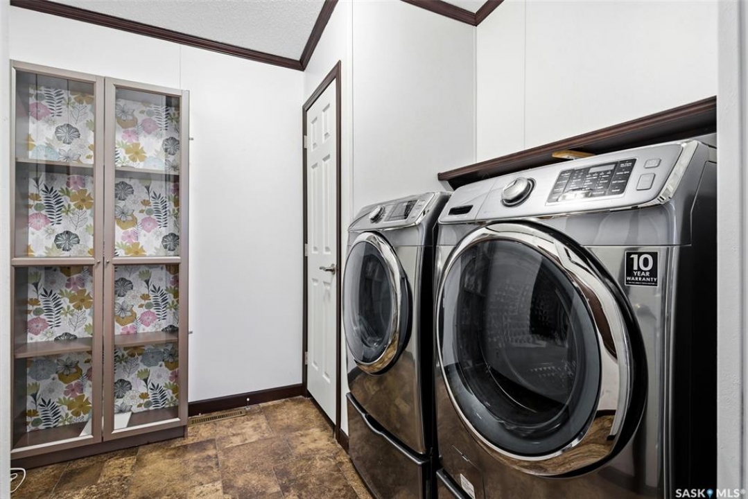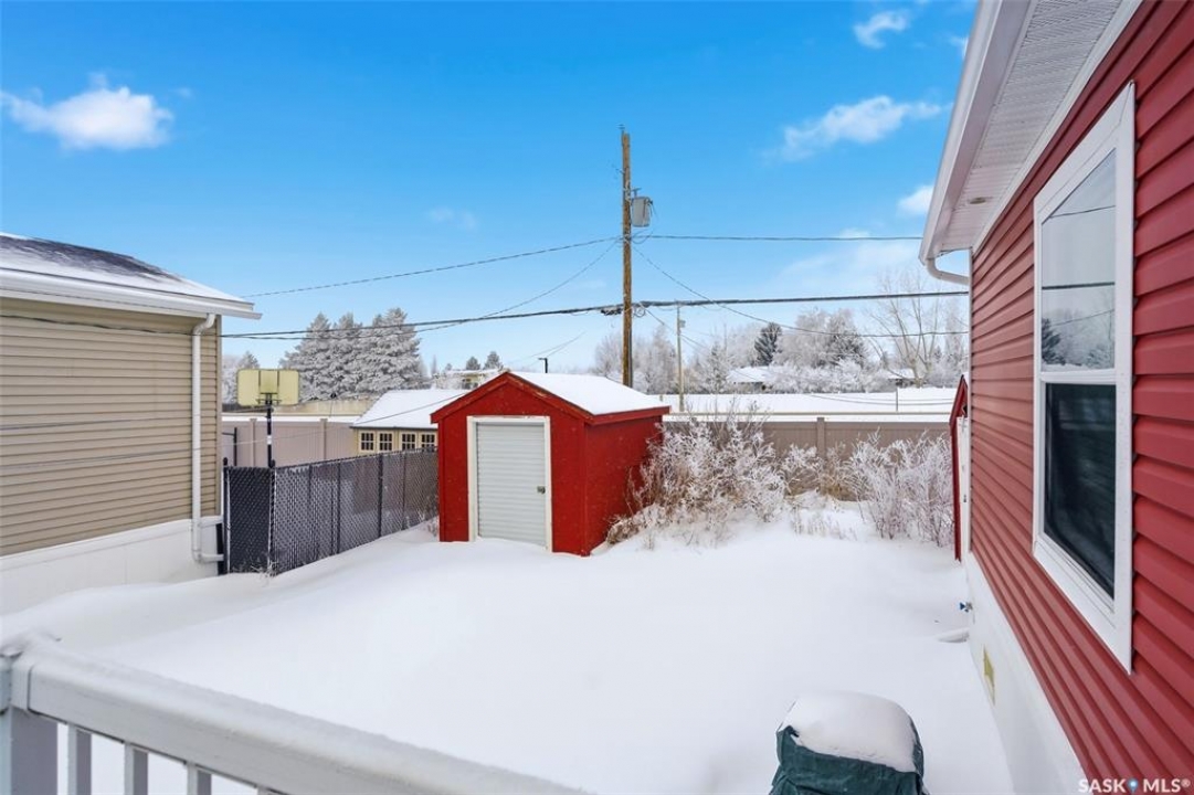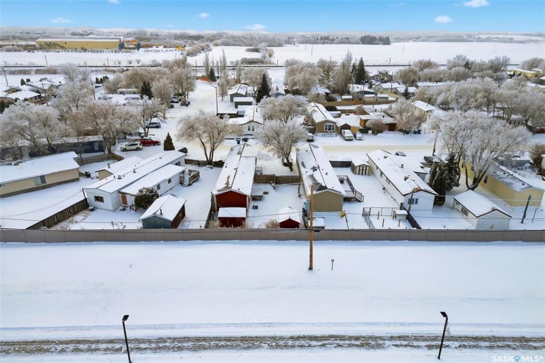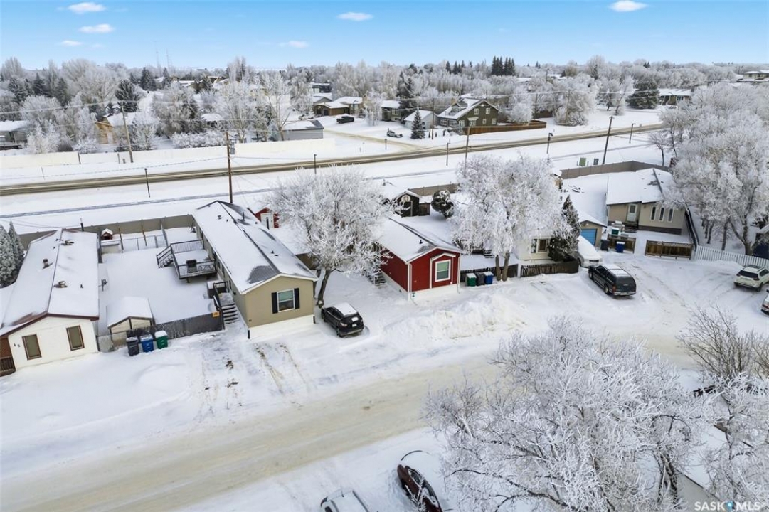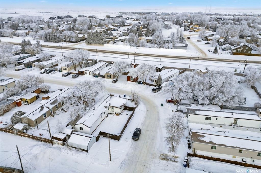 Welcome to Walters Court Mobile Home Park in Pilot Butte! Enjoy the convenience of quick access to Regina while living in a friendly community. This well-maintained 1,190 sq ft home offers excellent value with a functional 3-bedroom, 2-bathroom floor plan and vaulted ceilings that enhance the sense of space. The kitchen is thoughtfully designed with granite countertops, upgraded cabinetry, a corner pantry, and a full appliance package. The electrical panel was updated in 2023, providing added peace of mind. Outside, the fully fenced yard is perfect for relaxing or entertaining, featuring a large deck, two storage sheds, raised garden beds, and parking for up to three vehicles. Inclusions: central air conditioning, alarm system, fridge, stove, built-in oven, dishwasher, washer, and dryer. The current lot pad fee is $675/month and includes taxes, water, sewer, recycling, garbage pickup, and snow removal.