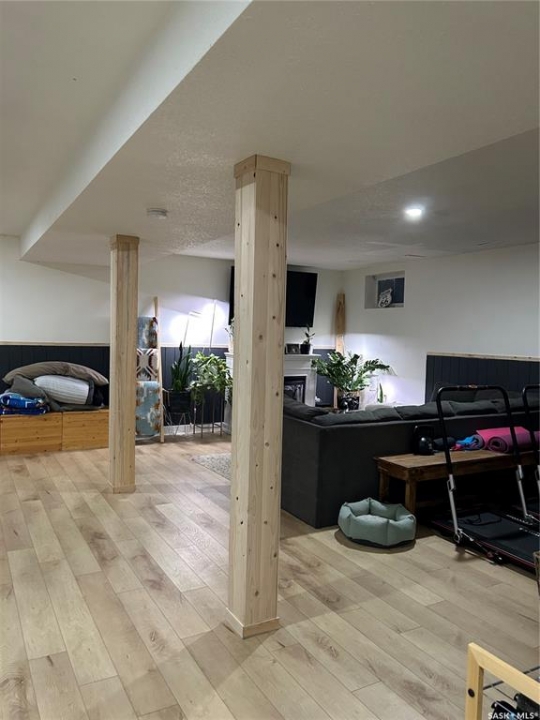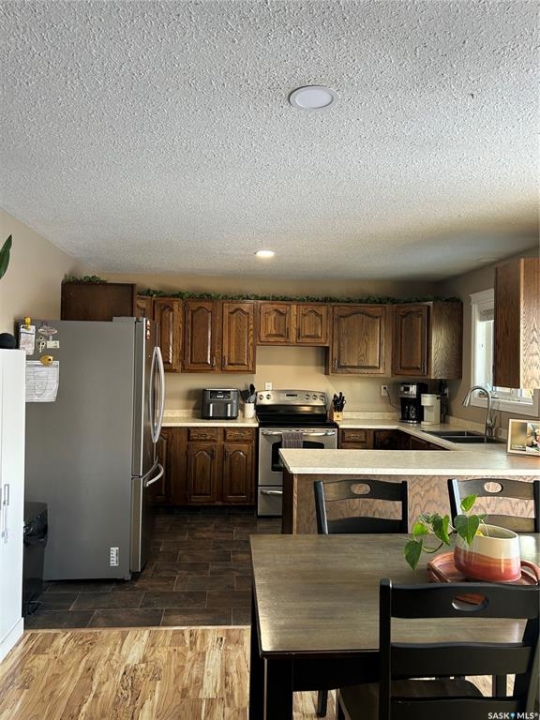 Welcome to the booming town of Rosthern! Situated on a spacious corner lot on a quiet street your will not be disappointed. With the new exterior paint and new shingles this home has beautiful street appeal. The fenced yard, with a new privacy wall on the deck, provides a safe and private space for your children and pets to play. The welcoming entrance brings you in to the large living area featuring laminate flooring and tons of space. Open kitchen and dining with patio doors out to the deck. The main floor features 3 bedrooms. The primary bedroom has a 2pc. ensuite. Down to the newly renovated basement with a large family room, with room for a tv area and separate games area. The basement also features a small kitchenette. All new vinyl plank flooring throughout. The renovations include adding a modern, spacious bedroom. Double attached garage that has been fully insulated. You will not be disappointed in this home! Rosthern is a thriving, growing community that offers a mix of small-town charm and modern amenities. Don't miss out on this fantastic opportunity to make this family-friendly home your own!