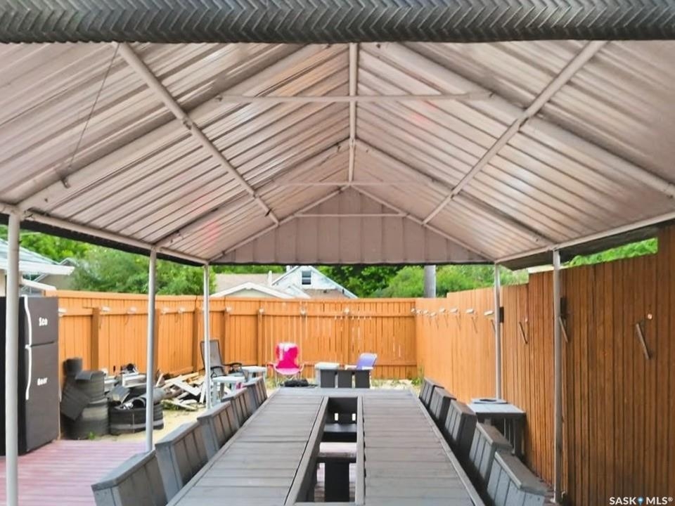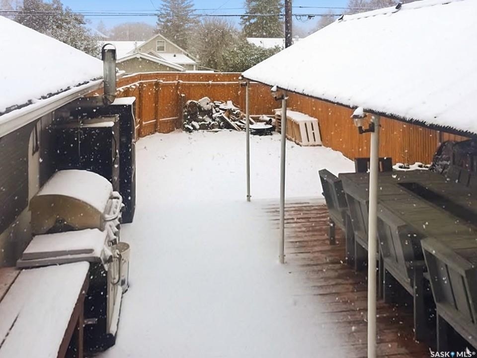 Discover your ideal move-in ready home in a cozy northwest neighbourhood! This exciting property features exceptional outdoor living spaces designed for both relaxation and entertainment. Step outside to an oversized covered deck directly off the back door, within a sectioned off private retreat complete with a barbecue station—perfect for hosting gatherings.This backyard offers versatile spaces including a sectioned area currently covered with sand over grass, ideal for a large pool or easily converted back to green space. The north side features a convenient dog run, while the south side boasts a garden plot with above-ground planters growing okra, sunflowers, cucumbers, a Honey crisp apple tree, and more, all enclosed by updated fencing creating your own private outdoor paradise.A large paved parking area accommodates extra parking. Inside, you'll be welcomed by an 8× 9 boot room with built-in closet and abundant natural light, opening into a cozy front living room. The main floor showcases modern/durable vinyl tile flooring throughout the main floor. The open-concept kitchen and dining room provide seamless access to the backyard, with a wall-integrated island that connects both spaces while offering additional seating and counter space. The kitchen features dark cabinetry with chalkboard paint panels, ceramic tile countertops, stainless steel refrigerator, and a bright south-facing window. The main floor hallway leads to a spacious master bedroom and a renovated three-piece bathroom with double sinks. The attached 1.5-car garage (21'4 × 15'4) is insulated and heated with direct yard access. The lower level currently serves as a family room with under-stair storage, two additional bedrooms, utility space, and a standalone laundry room with storage. Notable updates include additional attic insulation, modern exterior paint, 100-amp electrical panel (2007), and 220-amp garage outlet. For more information or to schedule your personal viewing, please contact. .