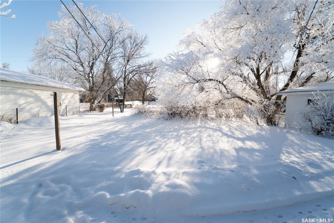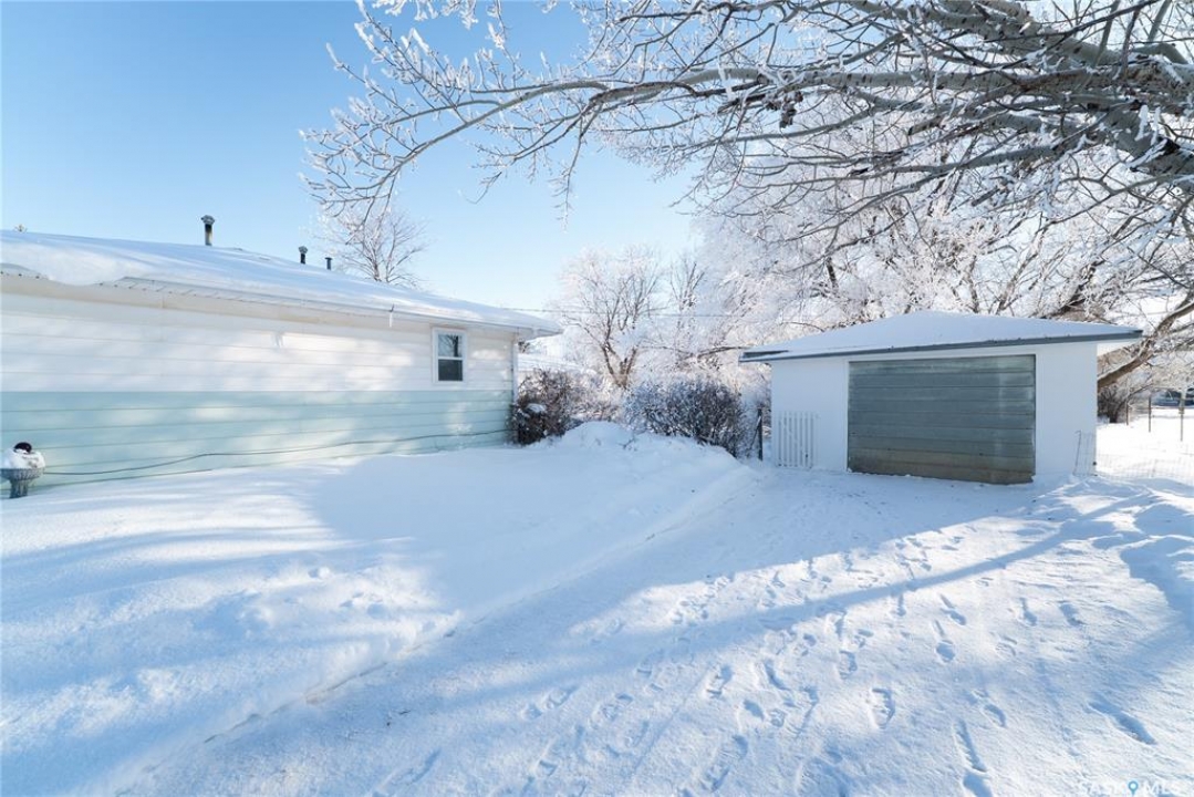 Welcome to this absolutely charming 720 sq. ft. 2-bedroom, 1-bath home with a single detached garage, located in the vibrant and welcoming community of Hanley. This home is truly a doll — lovingly maintained and full of character. Sitting on an impressive 75 x 132 lot, the yard is a standout feature with mature trees, beautiful green space, and plenty of room to garden, relax, another garage or entertain. Inside, you'll appreciate the fresh paint and refinished cabinets, creating a bright and inviting space, with opportunities to add your own personal touches over time. Hanley is a family-friendly community offering a K–12 school, grocery store, post office, coffee shop, golf course, mechanic, and more — making it an ideal place to call home. Don't miss this one — call your favourite agent today!