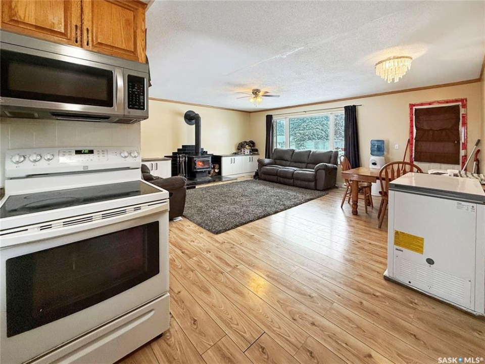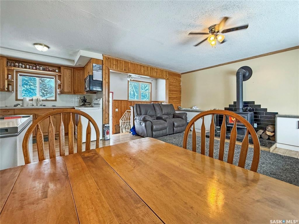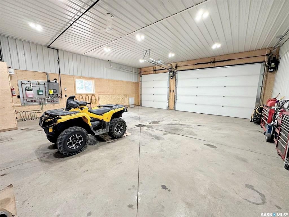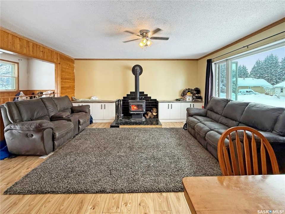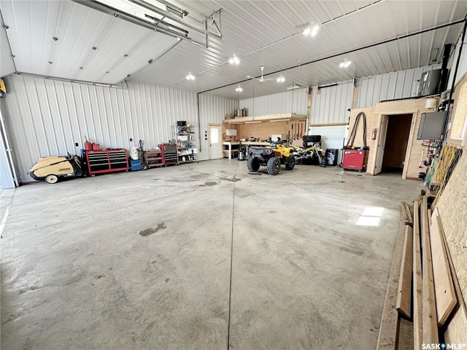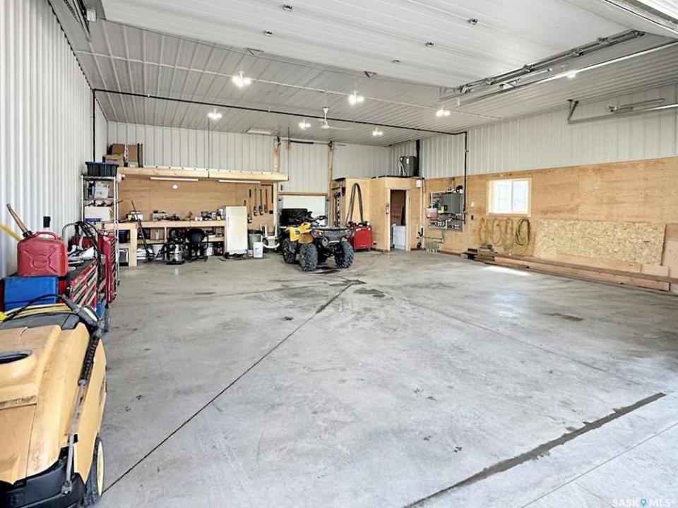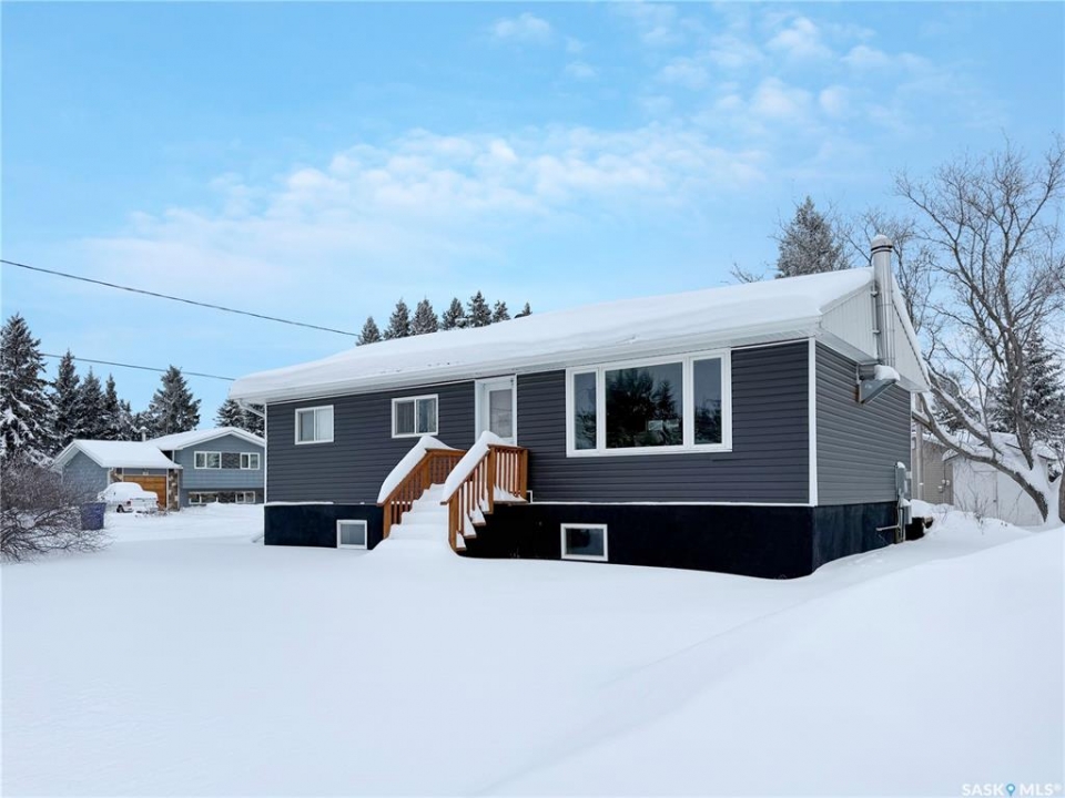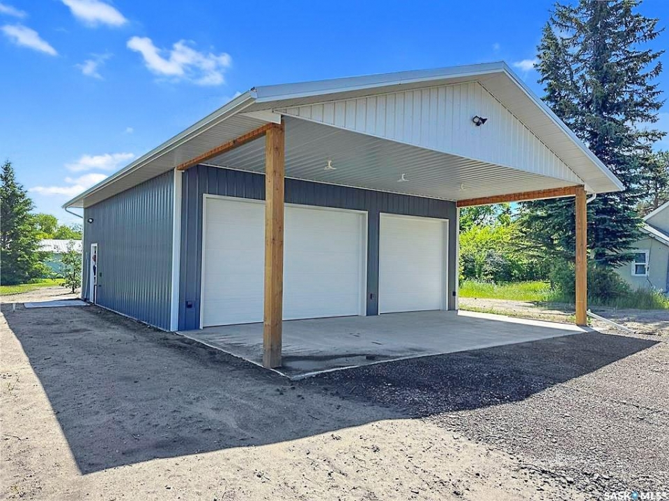 Attention Garage Lovers. Raised 3-bedroom bungalow with great flow and a bright open-concept kitchen, dining, and living area, plus a large mudroom. Three main-floor bedrooms, updated bathroom and an open unfinished basement ready for your creative ideas. Impressive newer 32' x 36' triple garage/shop featuring in-floor boiler heat, 12' ceilings, LED lighting, mezzanine, 3-piece bath, sloped concrete floor with center drain, welding plug, and 220V service. Bonus 16' x 32' covered parking pad. Small back garage door set up and wired for C-can cold storage. Built completely right, this is a shop any serious garage enthusiast will truly appreciate. Other notable features include: Newer ICF foundation, updated siding, new back deck, wood fireplace, large mudroom, Double driveways, back alley access, front & back lawn, 3 lots, central water & sewer, low monthly bills, one block from the school. Solid property with exceptional shop, small town living done right. Meath Park is a small town located a quick 25 minute drive from Prince Albert on the way to lake country. Meath Park has a K-12 school, Credit Union, Post Office, bar and small store. Worth checking out....this might be #yourhappyplace.