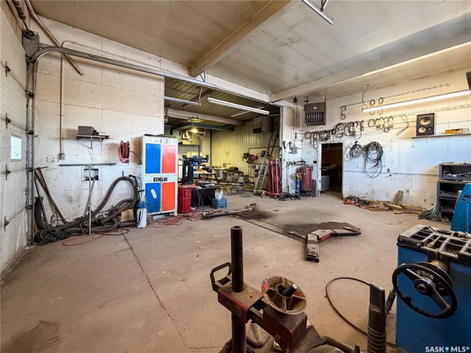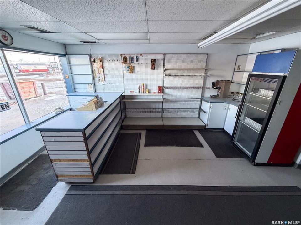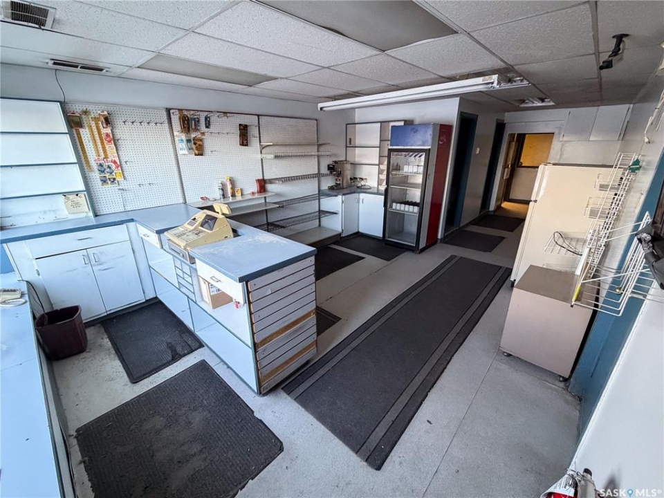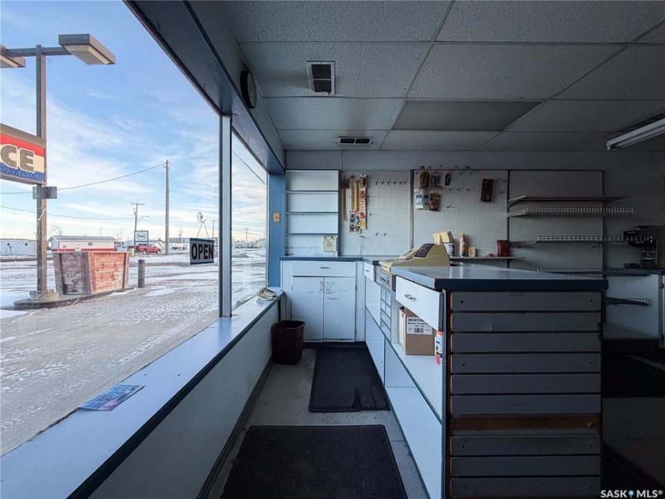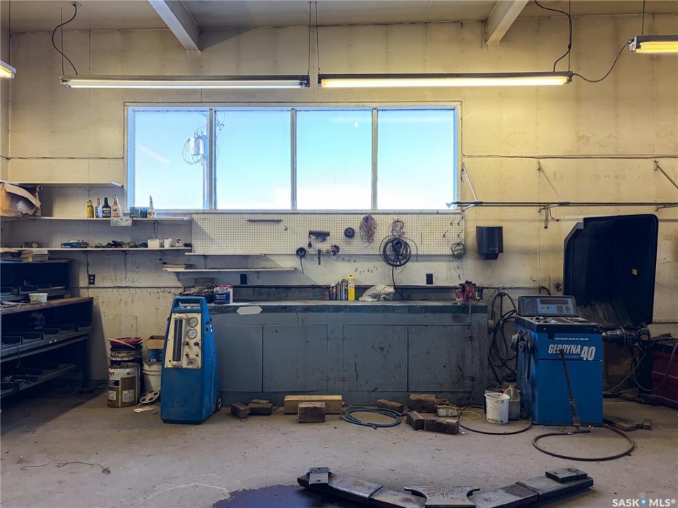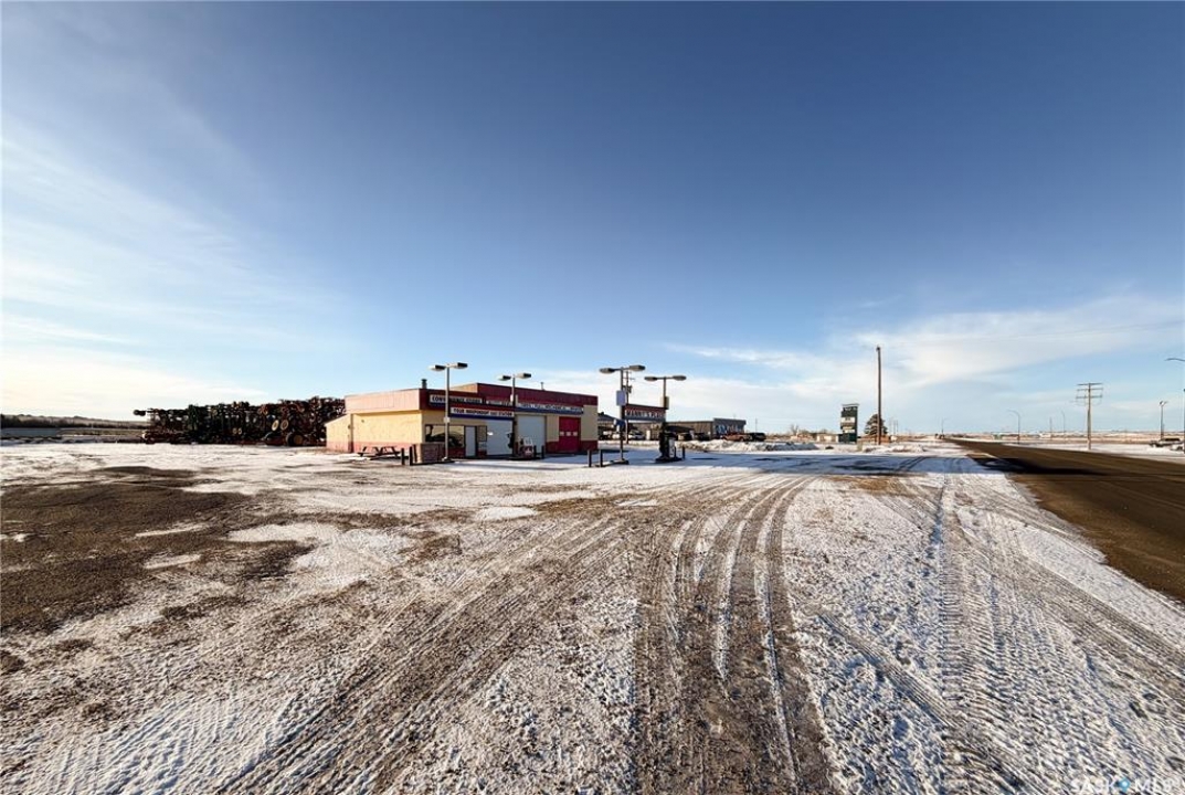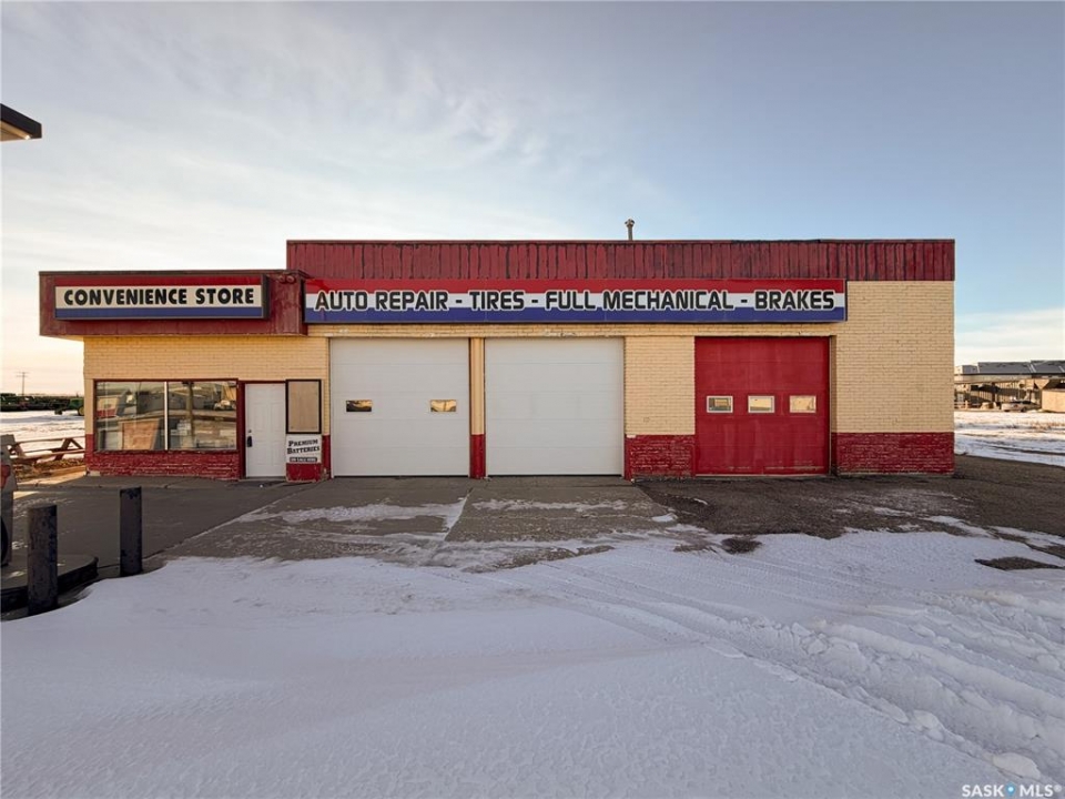 Commercial gas station and automotive service opportunity located just off the main intersection of Highways #13 and #37 in the community of Shaunavon. The site operated as a service station until 2023 and is well suited for continued fuel service, automotive repair, or redevelopment as a quick-lube or service-based business. The property features three gas pump islands plus a separate diesel pump, offering efficient fueling capacity. The main building built in 1976 includes a small retail storefront, two washrooms, and an office/storage area. Attached is a three-bay service shop equipped with two hoists and provides ample space for workbenches, tools, and equipment. A dedicated back room allows for inventory and tire storage and includes two industrial air compressors. The seller's preference is to sell the property inclusive of all existing shop equipment, tools, and inventory dependent on offer price, creating a strong turnkey opportunity. Equipment may include a tire balancer, tire machine, brake and rotor machines, hoists, air compressors, tools, and on-site inventory. A reduced purchase price may be considered for buyers seeking the real estate only, subject to negotiation. Situated on approximately 0.38 acres, the site is graveled and graded for drainage and includes existing environmental monitoring sites. Shaunavon serves as a regional hub for southwest Saskatchewan, supporting agriculture, energy, and service industries while drawing traffic from surrounding rural areas. This location presents a solid opportunity for owner-operators or investors seeking a well-positioned commercial property.