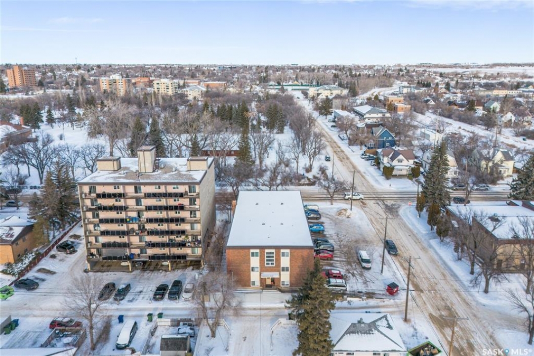 Looking to expand your investment portfolio? This strong 18-suite apartment building offering immediate, stabilized cash flow in a high-demand central Moose Jaw location is available for purchase. Property has 17/18 suites currently rented with a proven tenant base, including 6 long-term tenants with residency spanning approx 6 to 16 years, supporting predictable income & reduced turnover. The building features a desirable suite mix of 6 two-bedroom units, 11 one-bedroom units, &1 bachelor suite, appealing to a broad rental demographic. Most suites have been updated over time with improvements including flooring, paint, & bathroom vanities. All suites are equipped with newer intercom systems, solid core fir entry doors, & include fridge, stove, & hood fan. Separate electrical metering allows for efficient expense control & improved net operating income. Key capital upgrades & mechanical features include natural gas boiler with baseboard heating in all suites, 81-litre hot water heater, & all windows have been replaced. The top two floors (12 suites) are equipped with wall air conditioning, enhancing tenant retention & rental appeal. Coin-operated laundry on the lower floor provides additional income. The site includes 18 electrified parking stalls, a strong amenity in this central location. Located across from Crescent Park, steps to public transit & the Senior Activity Centre, & within walking distance to Temple Gardens Mineral Spa & Casino, restaurants, banking, retail/grocery stores, & medical clinic. This location supports consistent demand & long-term rental stability. An excellent opportunity for investors seeking a well-located, stabilized multi-family asset with long-term tenants, controlled expenses, & future rental upside in a growing rental market.