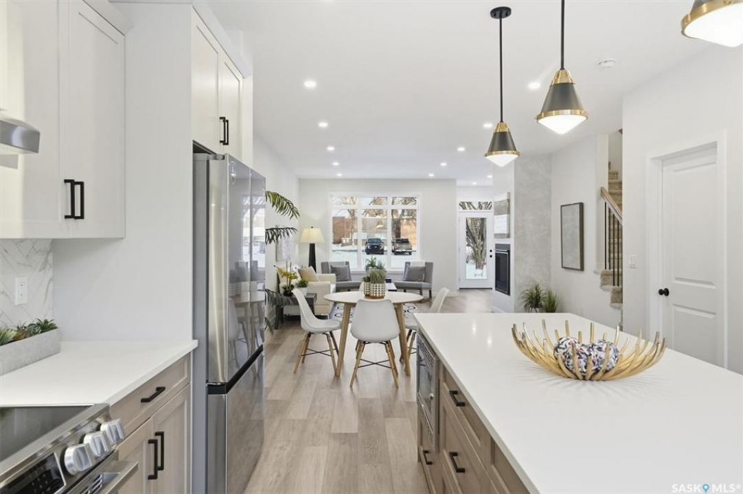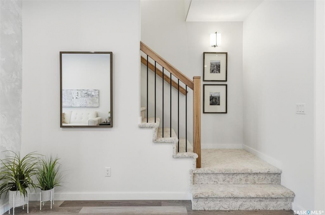 This free standing custom built 2 storey walkout home was built by Capilano Developments and is located in prime Varsity View. Given the unique opportunity of being within walking distance to the University of Saskatchewan the vision was to design a flexible plan appealing to professionals looking to be close to the hospital or University, & even students looking to get into the real estate market. The landscape of this street provided an opportunity to allow access to the basement from the front of the home, which is ideally set up for a suite, home based business, area for extended family visiting, or to use for your own enjoyment. With 1700 sqft on the 2 floors, the main level is spacious and offers a living room with feature gas fireplace with Venetian Plaster surround, dinging room, 2 tone staggered height kitchen cabinets with soft close features / tiled backsplash / garbage/recycle pullout, walk-in pantry, 2 Pc bathroom, and rear mud room with bench seating/storage. The second floor has 3 bedrooms, with the primary bedroom featuring vaulted ceilings, 5 Pc ensuite with soaker tub, walk-in tiled shower, dual sinks, and a walk-in closet. There are two more bedrooms with vaulted ceilings, 4 Pc bathroom, and walk-in laundry area with built-in cabinetry. The basement level is already set up with a secondary electrical panel, future kitchen and laundry rough-ins if a basement suite is of interest, Air B and B, Other features include: luxury waterproof laminate, quartz ctops, A/C, 20'x26' double detached garage with utility door access, majority of yard fenced, rear landscaping with underground sprinklers, front driveway for additional parking.