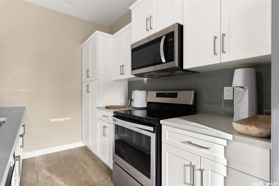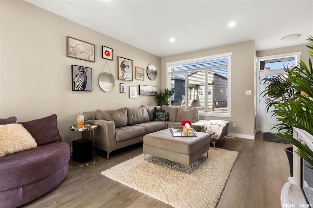 Welcome to 4233 E Keller Avenue, a beautifully designed freehold townhome with no condo fees located in The Towns. This property offers incredible value, modern finishes, and the ease of move-in-ready living. The exterior features contemporary curb appeal with low-maintenance siding and eye-catching stone accents. Step inside to a spacious front foyer with a double closet for convenient storage. The main floor boasts an airy, open-concept layout finished with 9 ft ceilings and luxury vinyl plank flooring. A large picture window brightens the living room, which flows seamlessly into the dining area overlooking the fully fenced backyard. The stylish kitchen is equipped with crisp white cabinetry, a generous sit-up island, quartz countertops, a double sink, accent lighting, and a full stainless steel appliance package. A 2-piece powder room, mudroom and access to the backyard complete the main level. Upstairs, plush carpet leads you to a cozy loft—perfect for a home office or reading nook. The primary bedroom offers plenty of space, complete with a walk-in closet and a 4-piece ensuite featuring a deep soaker tub and quartz-topped vanity. Two additional bedrooms, a second 4-piece bath, and convenient second-floor laundry complete this floor. The basement is framed and insulated along exterior walls, includes a rough-in for a future bathroom, and offers excellent storage or development potential. Outside, the fully fenced PVC yard includes a gate leading to the double parking pad with laneway access—making a future garage a great option. Added features include central air, owned water softener (2019) and new rented water heater (2025). Move in and enjoy!