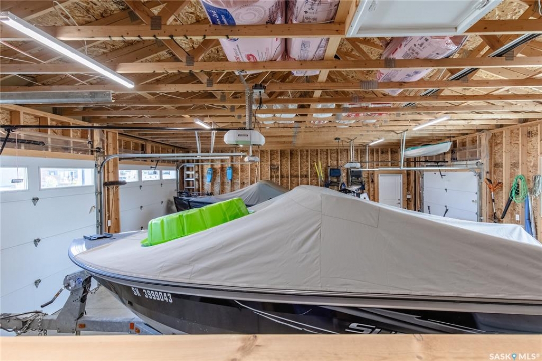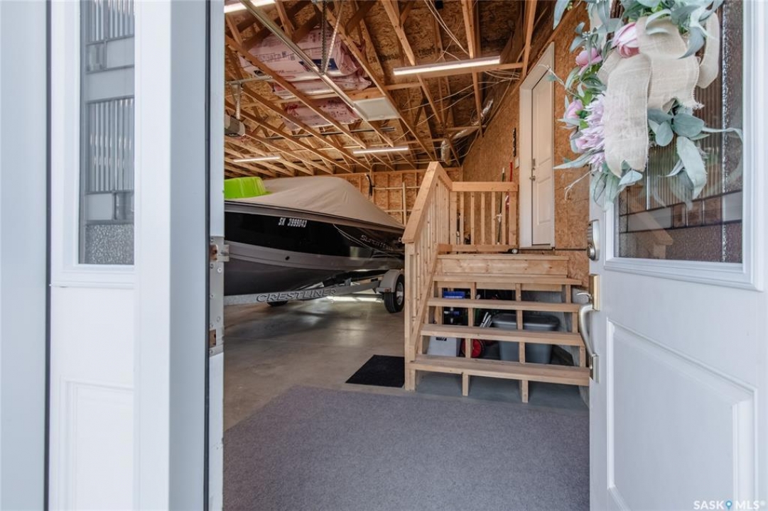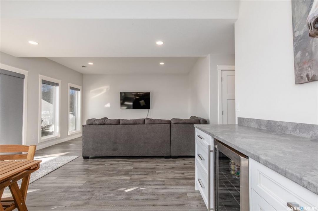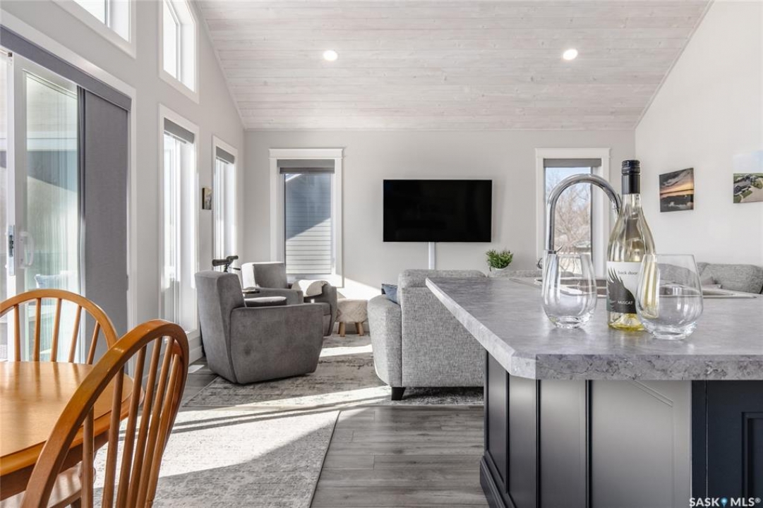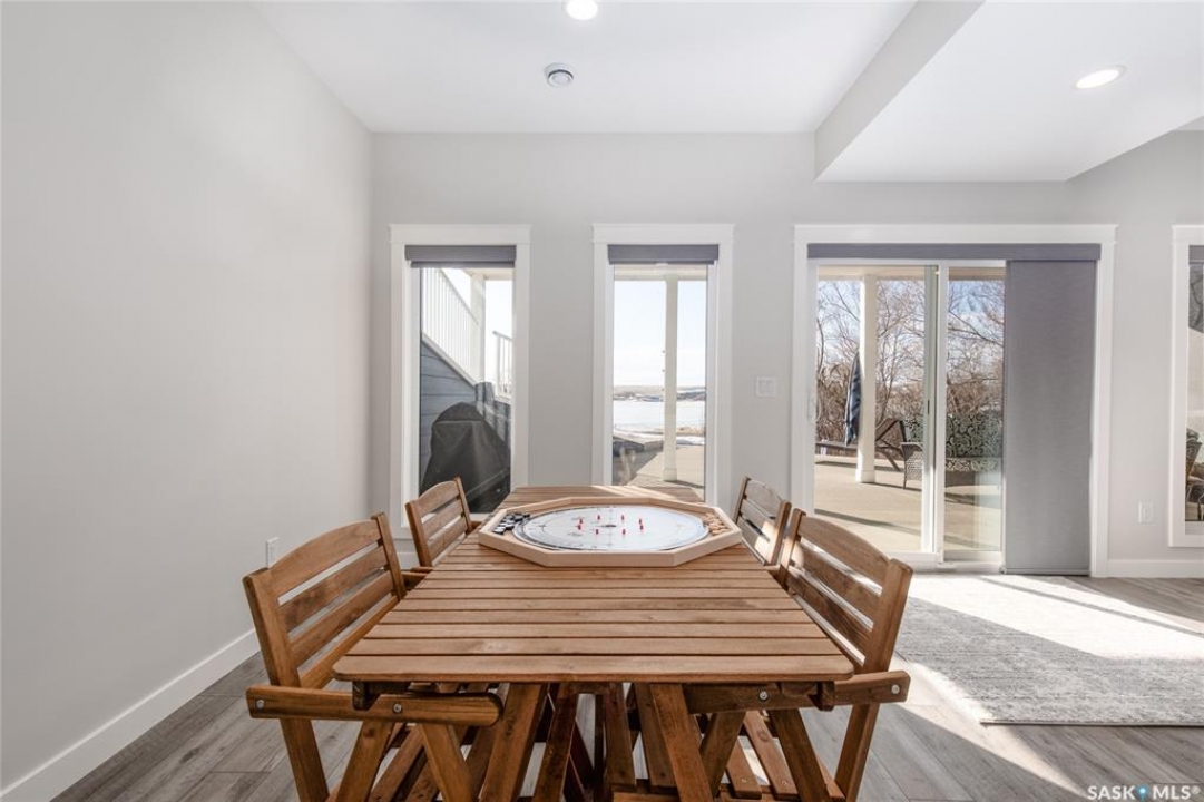 Welcome to your dream lakefront escape at Lake Diefenbaker! Step inside from the oversized double car garage—with convenient drive-through doors—and prepare to be wowed by the stunning panoramic views of the lake. The heart of the home features an A-frame style living room and kitchen, soaring with natural light thanks to the wall of windows framing the water beyond. The open-concept design makes it easy to entertain, relax, and take in the scenery from every angle. Slide open the doors to your covered deck and enjoy your morning coffee with a front-row seat to nature. This main level includes two spacious bedrooms and a full bathroom, offering comfort and function. Downstairs, you'll find two additional bedrooms, another full bathroom, laundry in the utility room, and a large family room with a games area and walk-out access to the backyard. Whether you're searching for a peaceful year-round residence or a lakefront getaway, this home delivers beauty, comfort, and that unbeatable Lake Diefenbaker lifestyle.
