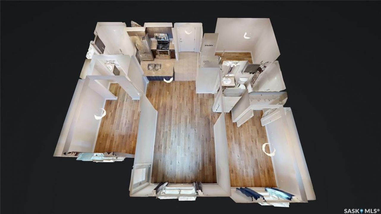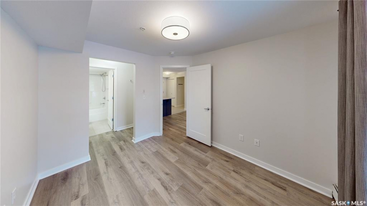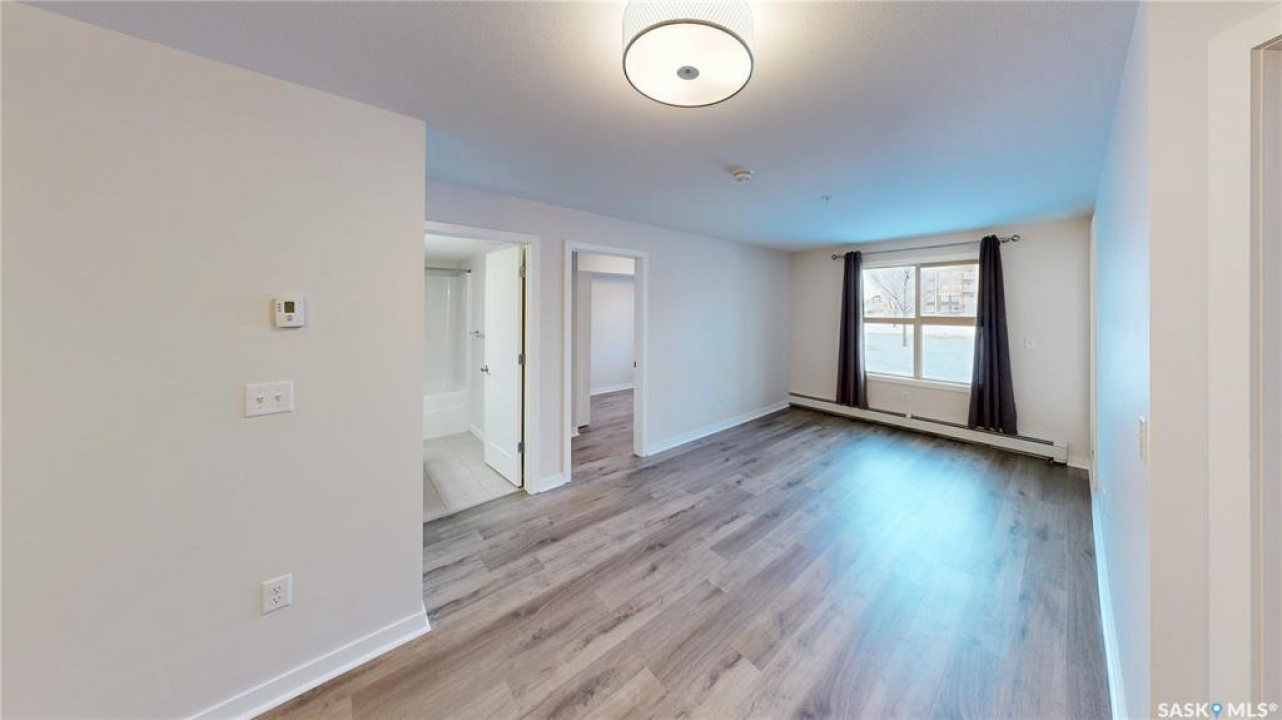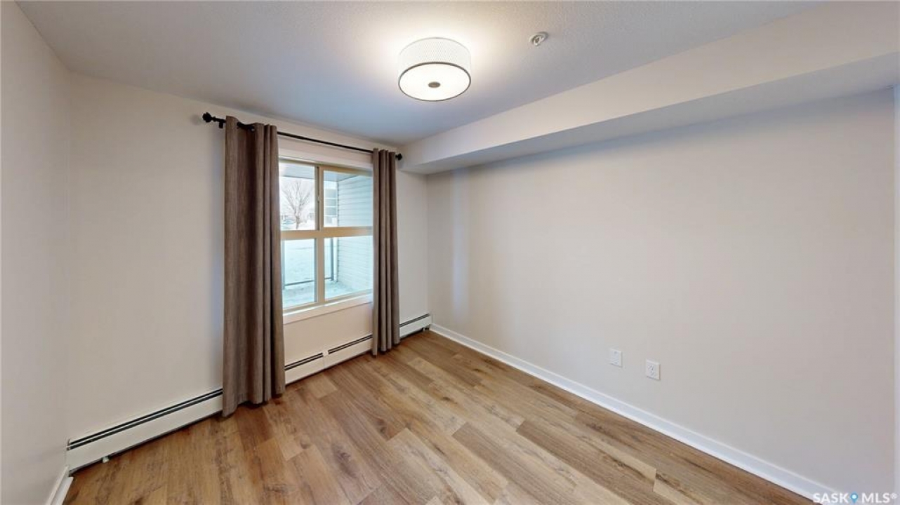 Welcome to unit 2115 at 5500 Mitchinson Way located in the highly convenient neighborhood of Harbour Landing where shopping, restaurants, parks, and everyday amenities are all just minutes from your door. This 2015 built, 812 square foot, 2 bedroom 2 bathroom plus a den apartment style condo is on the main level of the building making it wheelchair accessible. You enter the suite into the foyer with a coat closet. The kitchen features tile flooring and includes the stainless steel fridge, stove, microwave hood fan and dishwasher. The living room has a bright north facing window and access to your private patio. There is ample street parking here as well making this another great entrance to your home. All of the vinyl plank flooring in this suite is brand new! The primary bedroom has closet space and a 4 piece ensuite bathroom. The second bedroom is next followed by the main 4 piece bathroom. Finishing off the unit is a den that makes a wonderful office or storage space and your in-suite laundry with included washer and dryer is tucked neatly behind a door just outside the den! The condo fees are $519 a month and include common insurance, sewer, common area maintenance, exterior building maintenance, snow removal, lawn care, water, garbage, heat and reserve fund. You also have two personal parking spaces. One outside in the parking lot and one underground!