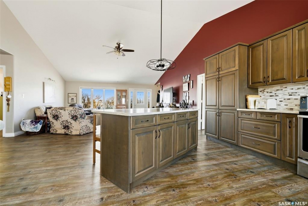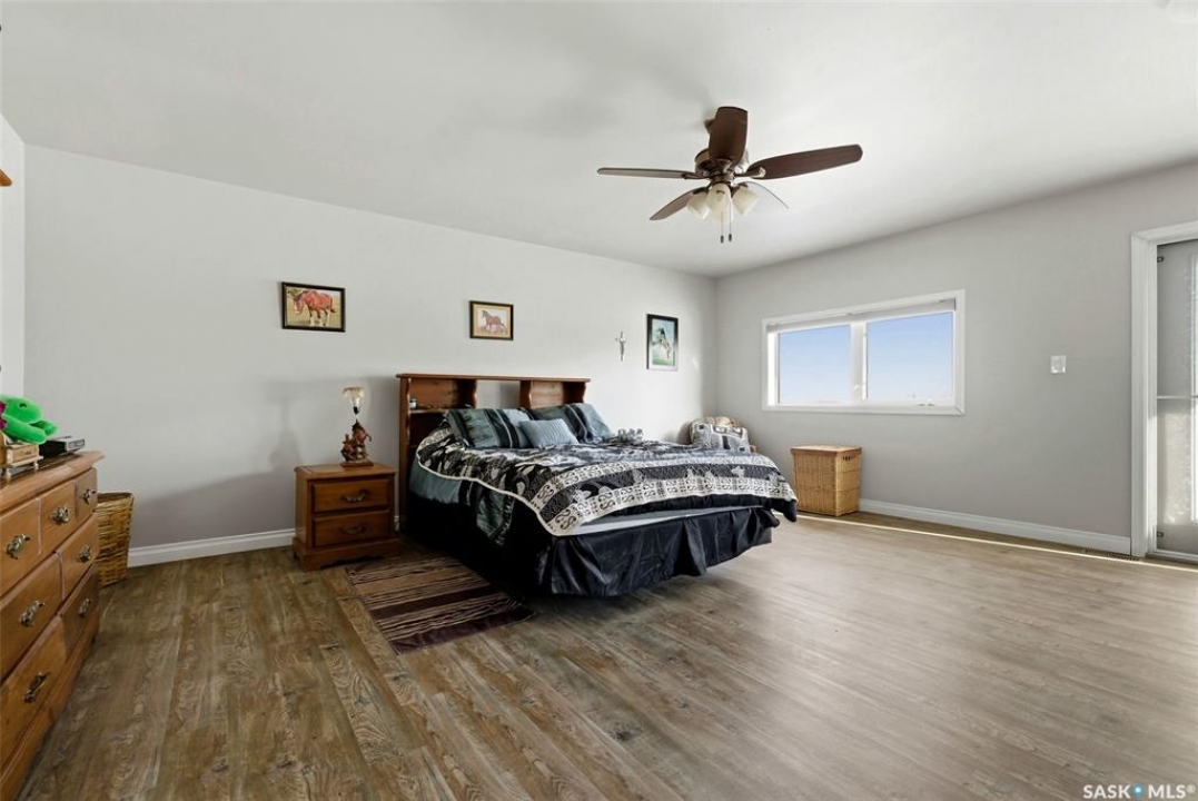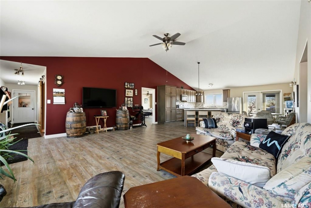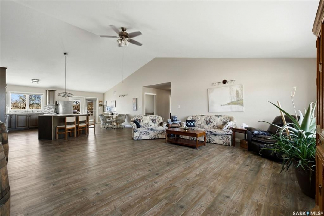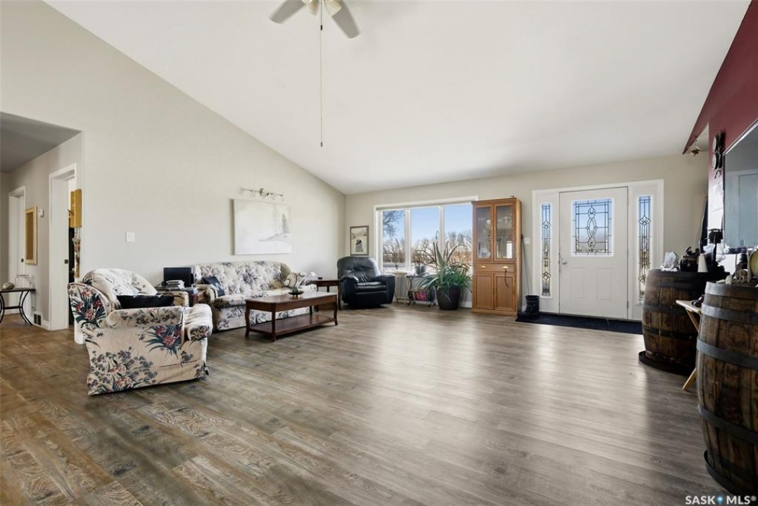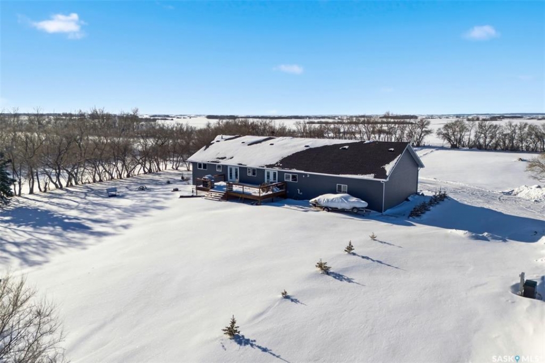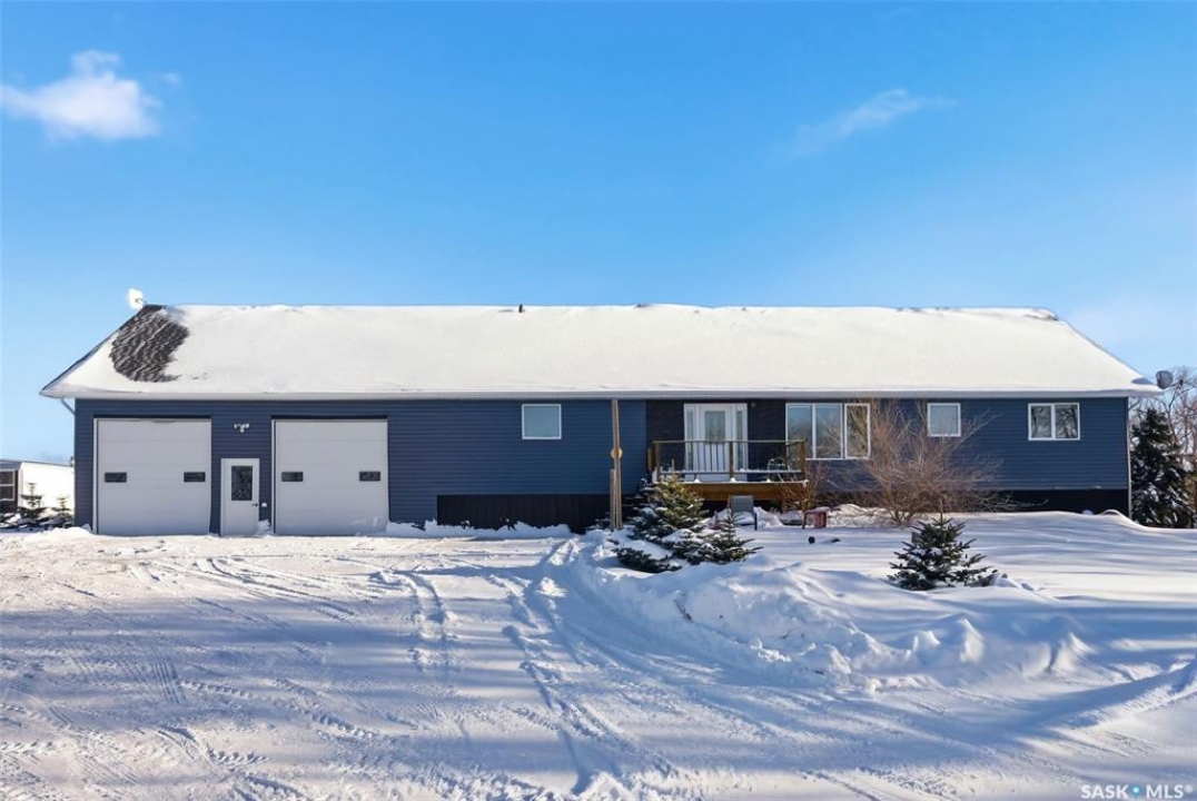 Welcome to this impressive 2,400 sq. ft. bungalow on 24.95 acres in the RM of Longlaketon, offering peaceful prairie living with convenient access to Southey, Strasbourg, & Raymore. Built in 2014 & proudly owned by the original owner, this home offers space, functionality, & endless potential. A large, welcoming foyer leads directly to the 30' x 40' attached heated garage featuring oversized doors, perfect for trucks, toys, or workshop space. Inside, the home boasts a wide-open layout with soaring vaulted ceilings & large windows that flood the space with natural light. The spacious living room easily accommodates a dream sectional and large TV, flowing seamlessly into the kitchen complete with a large eat-up island, ample maple cabinetry, stone counters & stainless steel appliances. The adjacent dining area features doors opening onto a large back deck, where you can enjoy sweeping prairie views. The MASSIVE primary bedroom offers outstanding potential & has a walk-in closet, private en-suite, & direct access to the back deck. The opposite wing of the home includes a large laundry room, den/office, two additional bedrooms, & a 4-pc bathroom—an ideal layout for families. The partially finished basement is already framed, drywalled, painted, & equipped with a drop ceiling. It includes an additional bedroom, bathroom roughed-in & started, & a huge rec/family room with space for more bedrooms if desired. The oversized mechanical room offers abundant storage & has high ceilings, making it an excellent candidate for a home gym or golf simulator. Outside, the property includes older outbuildings & some corrals, providing a great foundation for a hobby farm. A mobile home on the property is currently rented as a mortgage helper, adding extra value. The land is fenced & ready for new owners to make it their own. With school bus routes available, a central location between welcoming communities, and wide-open space to enjoy, this is a rare acreage opportunity.