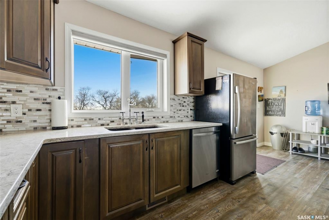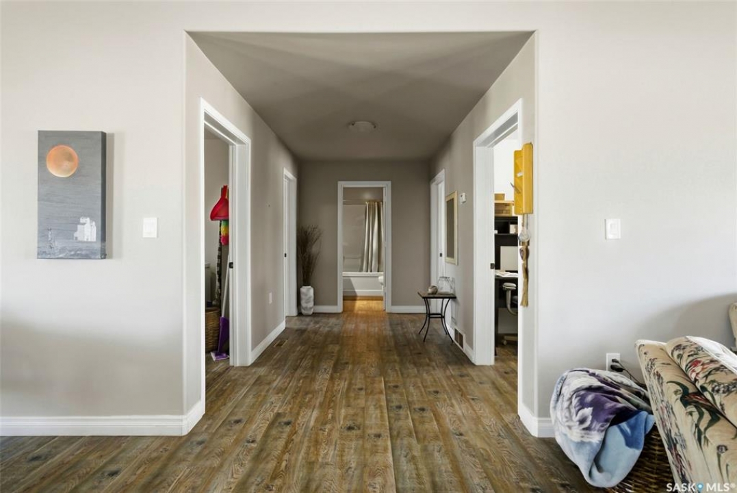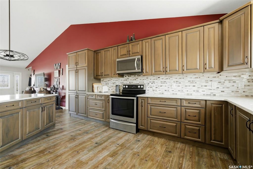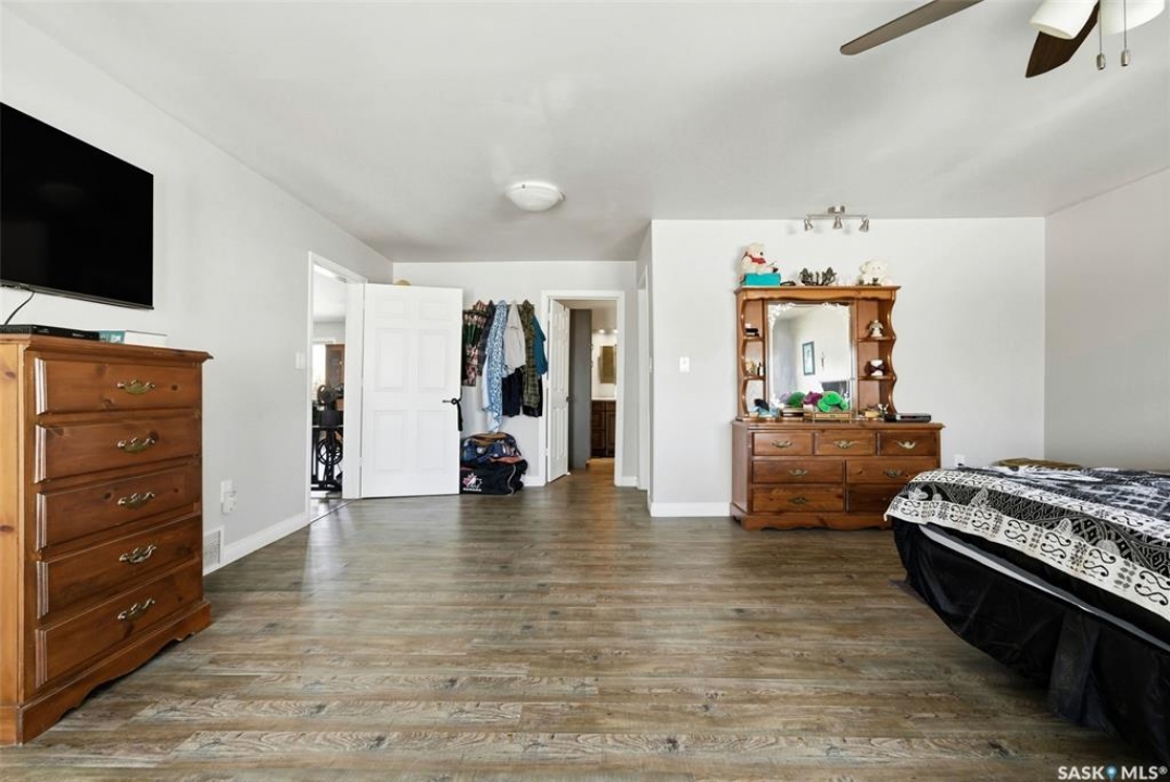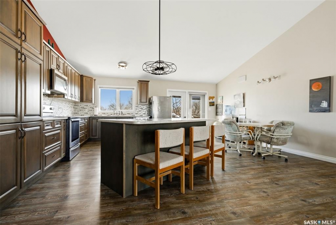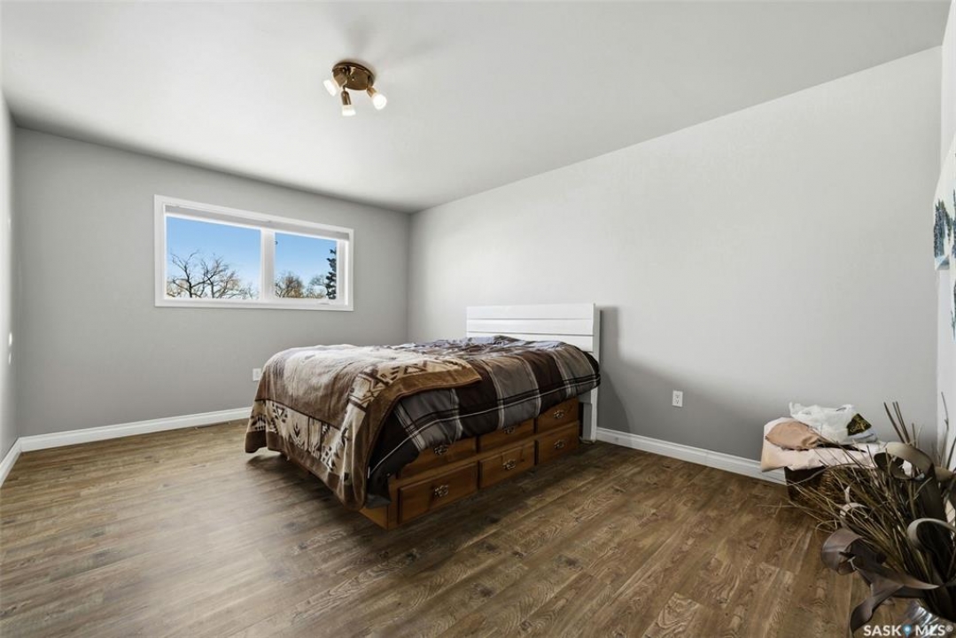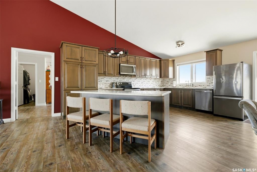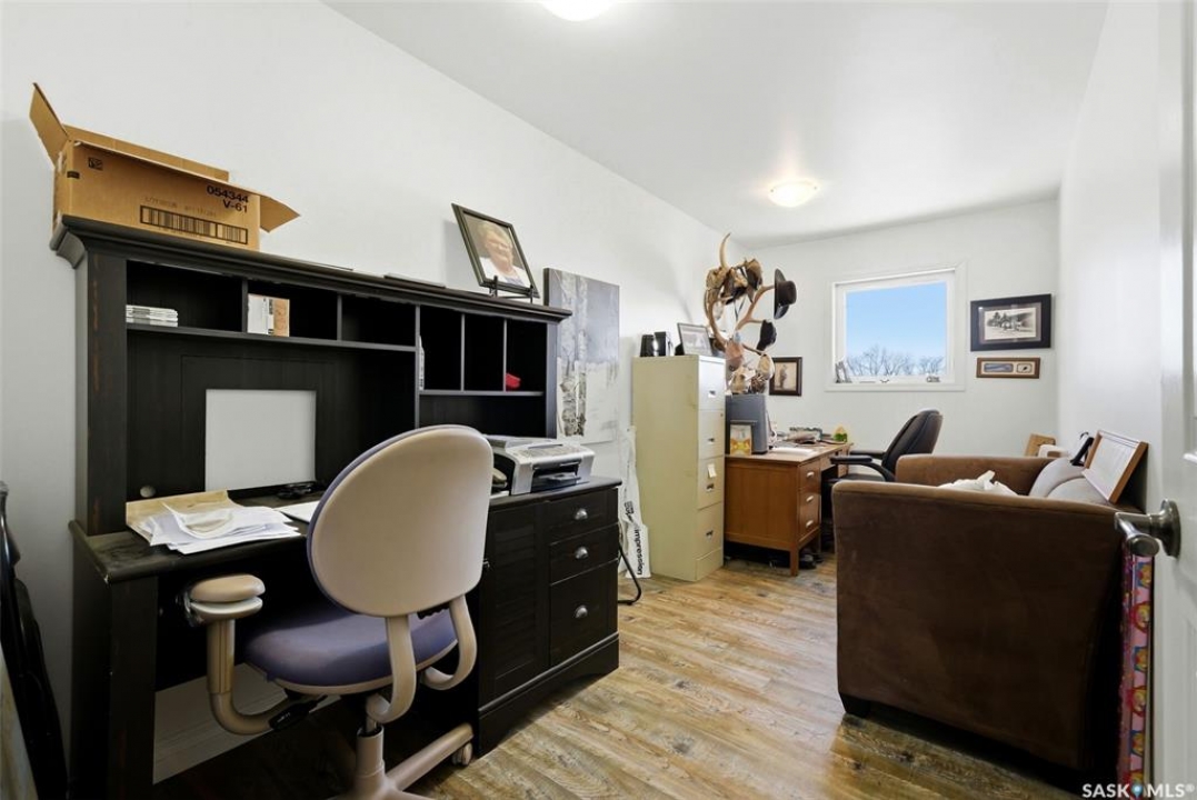 Welcome to this impressive 2,400 sq. ft. bungalow on 24.95 acres in the RM of Longlaketon, offering peaceful prairie living with convenient access to Southey, Strasbourg, & Raymore. Built in 2014 & proudly owned by the original owner, this home offers space, functionality, & endless potential. A large, welcoming foyer leads directly to the 30' x 40' attached heated garage featuring oversized doors, perfect for trucks, toys, or workshop space. Inside, the home boasts a wide-open layout with soaring vaulted ceilings & large windows that flood the space with natural light. The spacious living room easily accommodates a dream sectional and large TV, flowing seamlessly into the kitchen complete with a large eat-up island, ample maple cabinetry, stone counters & stainless steel appliances. The adjacent dining area features doors opening onto a large back deck, where you can enjoy sweeping prairie views. The MASSIVE primary bedroom offers outstanding potential & has a walk-in closet, private en-suite, & direct access to the back deck. The opposite wing of the home includes a large laundry room, den/office, two additional bedrooms, & a 4-pc bathroom—an ideal layout for families. The partially finished basement is already framed, drywalled, painted, & equipped with a drop ceiling. It includes an additional bedroom, bathroom roughed-in & started, & a huge rec/family room with space for more bedrooms if desired. The oversized mechanical room offers abundant storage & has high ceilings, making it an excellent candidate for a home gym or golf simulator. Outside, the property includes older outbuildings & some corrals, providing a great foundation for a hobby farm. A mobile home on the property is currently rented as a mortgage helper, adding extra value. The land is fenced & ready for new owners to make it their own. With school bus routes available, a central location between welcoming communities, and wide-open space to enjoy, this is a rare acreage opportunity.