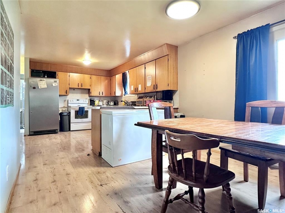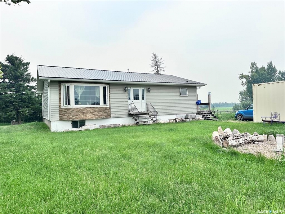 Welcome to this unique and versatile 8.7-acre property nestled close to Zealandia! Offering the rare opportunity to own two separate homes on one title—perfect for extended family living, rental income, or a guest house setup. The main residence home offers three bedrooms on the main level, two additional bedrooms in the basement, and three bathrooms in total. The interior features a large open-concept layout with modern laminate flooring and a fully finished basement that includes a second living room, workshop, utility space, and bathroom. The second home provides additional living flexibility with two bedrooms, a full kitchen, a bathroom, and a comfortable living area—perfect for multi-generational living or guests. The covered deck provides tons of usable outdoor space to enjoy the yard views. Both homes are serviced by a well water system and septic tanks. They are both heated with natural gas furnaces, with natural gas also connected to one shop!!! The property includes two Quonsets, one with concrete floors, offering plenty of opportunity for on-site business operations. There is also a separate on-site sawmill that is ready to start generating income. The property has plenty of room to expand and currently features a large garden area, a fire pit with artisan spigot, and a mix of open and bush-covered land with some natural sloughs. The flat topography lends itself well to hobby farming, recreation, or simply enjoying peaceful rural living. This home is located 29 kilometers from school services and is serviced by a school bus route, making it ideal for families. Appliances such as a fridge, stove, water softener, and sheds are included in the sale. This is a fantastic opportunity to enjoy the freedom of acreage living while still being close to town amenities. Call today!