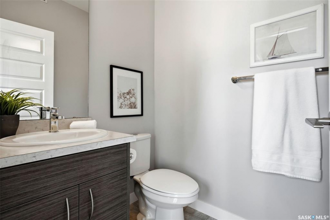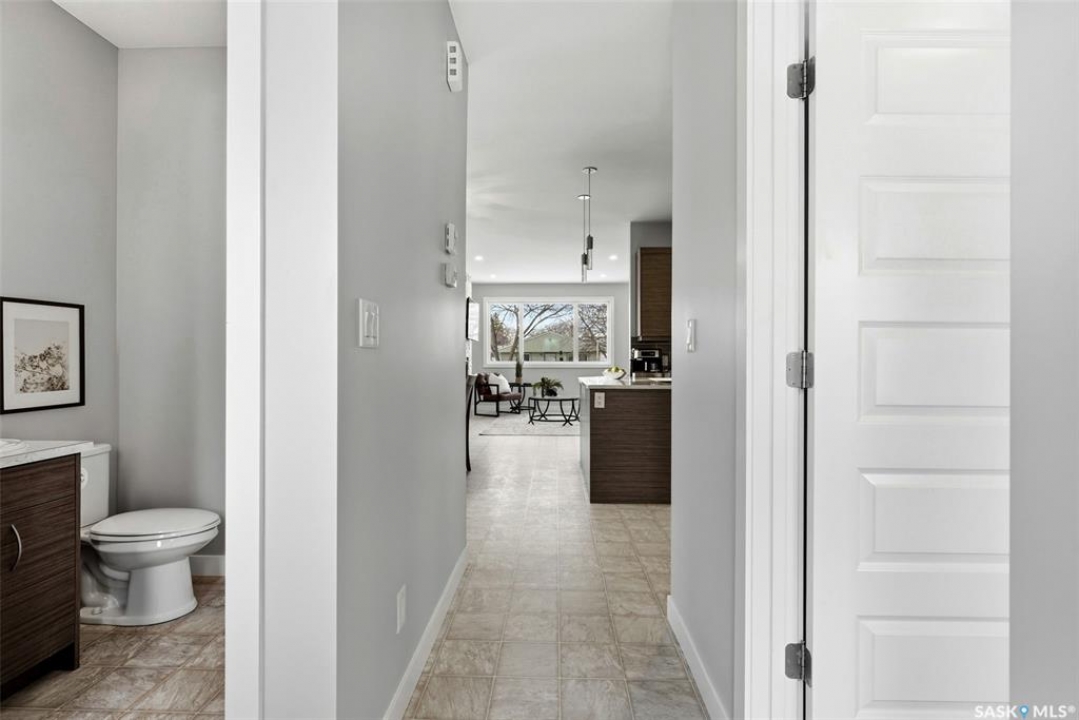 Welcome to this thoughtfully designed 2017 Alair Homes infill, ideally situated on a quiet, tree-lined street in the heart of Cathedral. This two-storey home offers 3 bedrooms, 3 bathrooms, and a functional layout well suited to modern living. The main floor features 9-foot ceilings, a dedicated office, a convenient 2-piece bath, and an inviting open-concept design. The kitchen is both stylish and practical, showcasing beautiful cabinetry, quartz countertops, a peninsula island, corner pantry, and stainless steel appliances, all seamlessly connected to the dining and living areas. The living room is anchored by a gas fireplace, creating a warm and welcoming space. Upstairs, you'll find three spacious bedrooms, including the primary suite with a large walk-in closet and a well-appointed ensuite featuring a separate shower and soaker tub. A second full bathroom and upstairs laundry add everyday convenience, with 9-foot ceilings continuing throughout the second level. The basement is insulated and ready for development, offering high ceilings, large windows, and a truss floor system, meaning no bulkheads to limit future design options. Notably, the separate back door entrance provides direct access to the basement, creating excellent potential for a future basement suite, ideal as a mortgage helper or additional income opportunity (buyer to verify zoning and approvals). Additional highlights include triple-pane windows, a high-efficiency furnace, central air conditioning, and a poured double garage pad with alley access. Both the front and back yards are designed for zero maintenance, featuring artificial turf, mulched landscaping, and established rhubarb, raspberry, and strawberry plants.