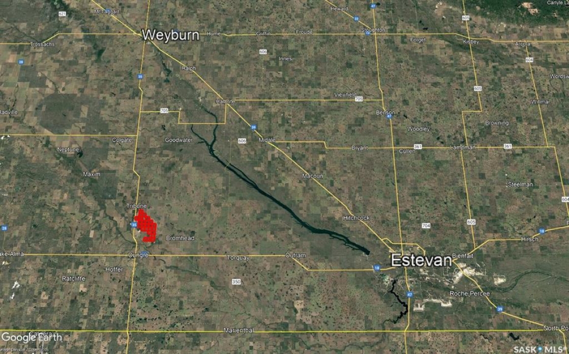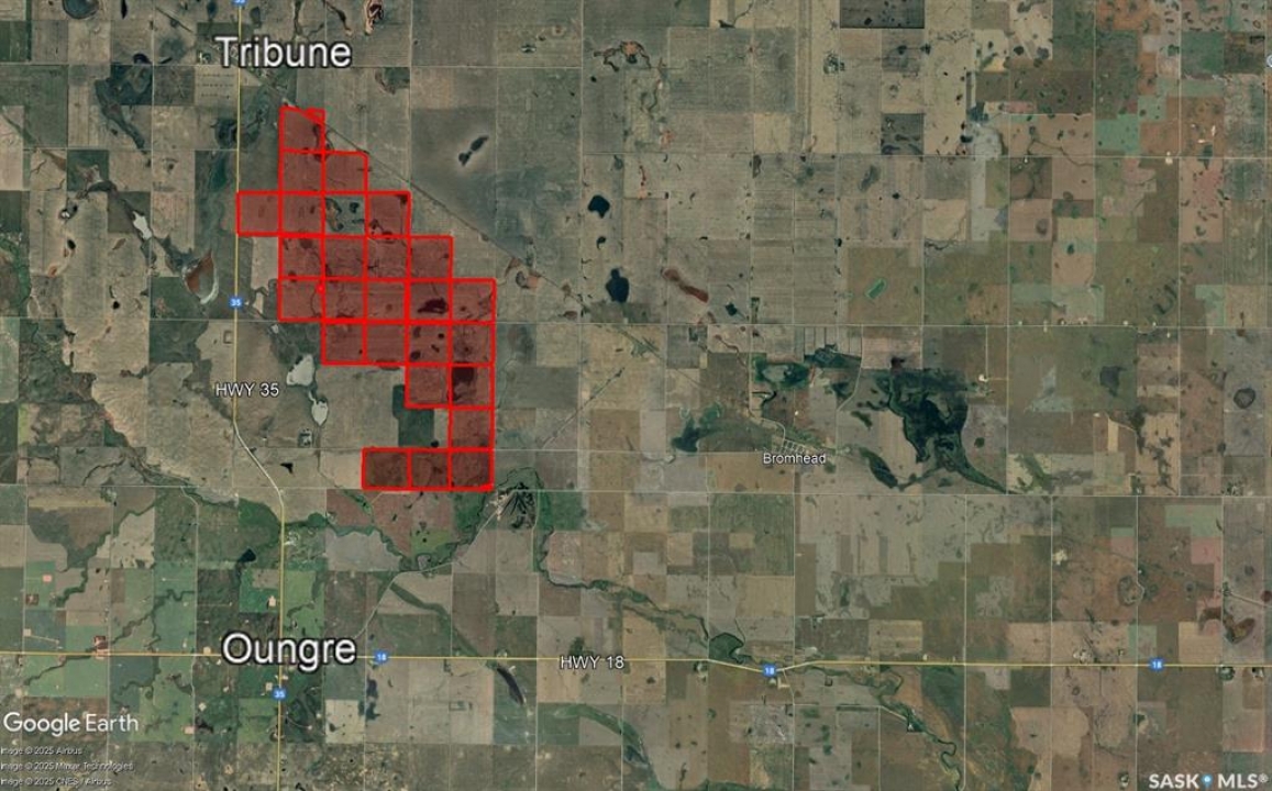 This is a rare opportunity to acquire a premier large-scale grain operation in the heart of southern Saskatchewan. Situated just one and a half miles south of Tribune, this remarkable property includes 25 quarter sections of highly productive farmland, all in a continuous block — a configuration that is exceptionally hard to find in today's market. The total land base encompasses 3,956.56 acres, and 3,462 cultivated acres from the Sama records. The layout of the farm allows for efficient, uninterrupted farming practices with minimal wasted space, thanks to its large, corner-to-corner fields and excellent access throughout the entire property. The property comes with two bin yards that include 21 grain bins. The bins include a mix of flat-bottom and hopper styles, providing flexibility for storing grain, seed, or fertilizer. This farm is strategically located just 40 miles west of Estevan and 30 miles south of Weyburn, placing it within easy reach of major service centers, grain terminals, and the U.S. border — making logistics and cross-border trade efficient and accessible. The land is currently leased for the 2026 crop season to a strong local operator and is available for the 2027 season. With a total assessed value of $6,182,800 and an exceptionally rare block of 25 quarter sections, this property stands out as a top-tier investment opportunity in Saskatchewan's farmland market. Whether you are expanding an existing operation or investing in one of the province's most valuable assets — quality farmland — this is a package that delivers scale, quality, and long-term potential. Contact S/A agent for additional information.