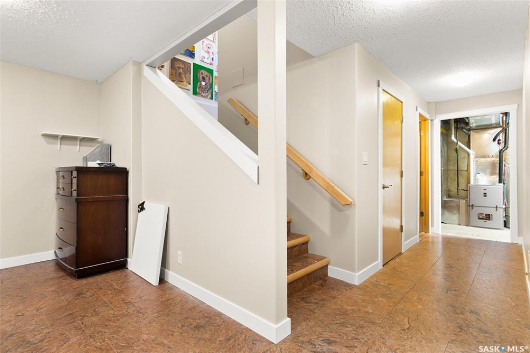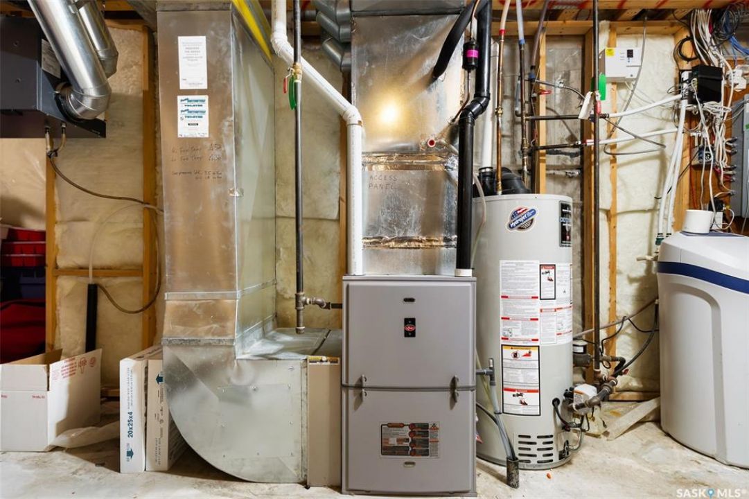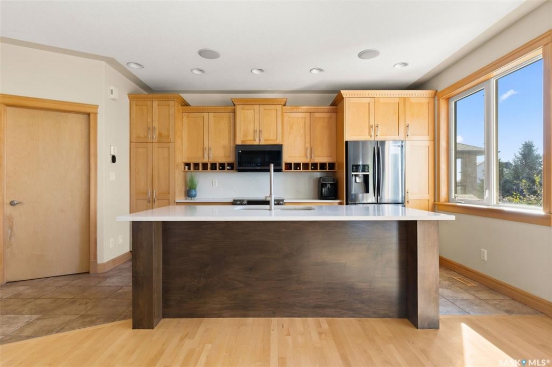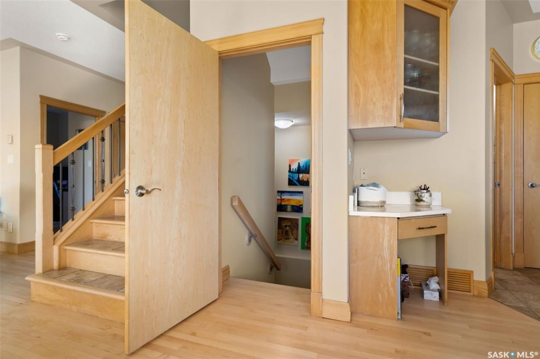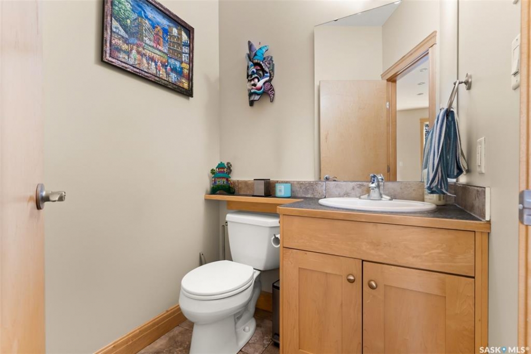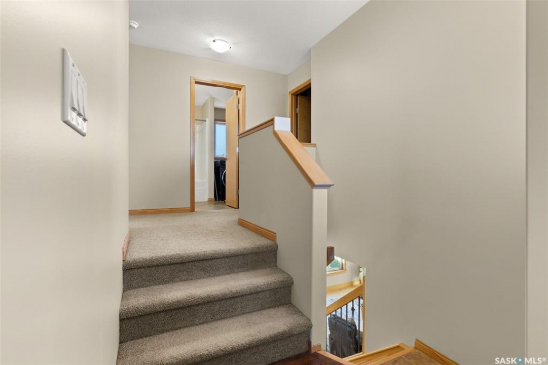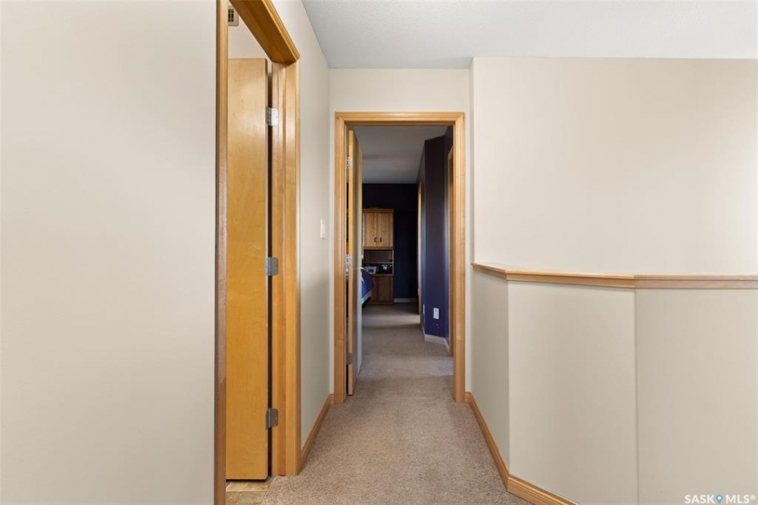 Gorgeous 2 story home in Emerald Park in prime location. Custom built home by Ripplinger Homes is nearly 2200 sq/ft and backs green space and southern exposure. Loads of natural light throughout. Welcoming entrance with ceramic tiled flooring transitions into maple hardwood floors. Main floor office is the perfect space for those who work from home. Spacious living room with natural gas fireplace with tiled accent and maple trim. There's an open view to the backyard thanks to a large picture window. Nice transition to the formal dining and kitchen area, upgraded kitchen island with quartz countertops ('24), stainless steel appliances and two piece bathroom. Main floor hardwood flooring was refinished in 2025. Direct entry to the 26 x 28 garage. Second level features 3 large bedrooms PLUS a bonus room that's the perfect media space. Walk-in closet in the primary bedroom and large ensuite. Basement is fully finished with additional bedroom and rec-room area and 3 piece bathroom. (current vanity will be changed out). Gorgeous and private backyard with mature trees, storage shed and hot tub included. Other recent upgrades include: shingles ('2018), new paint (2024), furnace ('23), c/air ('24). Move in ready family home is close to schools, shopping and Regina's east end amenities.