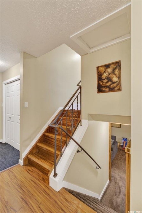 Beautifully modern & upgraded 1026 square foot four level split in the highly desirable Carlton Park, backing directly onto park/ green space for exceptional privacy. This thoughtfully cared for home offers three bedrooms plus a den, 3 bathrooms, and a functional layout designed for both everyday living and entertaining. The main floor features a bright, well appointed kitchen with updated finishes, adjacent dining space, and a comfortable living area with an electric fireplace. The upper level includes three bedrooms and two bathrooms, including a convenient 2 pc ensuite. The third level provides a spacious family room and an additional bathroom, ideal for gatherings or relaxing evenings. The lower level offers a versatile den, utility area, and ample storage. Outside, the fully fenced yard is a true highlight, offering mature fruiting plants including raspberries, haskap, chokecherries, black currants, and strawberries, along with raised garden beds and a greenhouse, perfect for gardening enthusiasts. A 22 by 24 detached garage adds excellent parking and storage. The home is also wired for generator connection, providing peace of mind during power outages. Notable updates and improvements include windows on the upper floors, all plugs and switches, and rear fence and gate completed in 2017. Light fixtures throughout the home were updated in 2018. The upstairs bathroom vanity was replaced in 2019. A shed was added in 2020. The shingles on the house was replaced in 2021. In 2022 and 2023 the main floor and upstairs hallway were remodelled with new baseboards and door trim. The kitchen was updated in 2024 with new countertops, sink, dishwasher, and cabinet doors. In 2025 the garage interior was finished with no attic insulation and a built in workspace was added in the basement. A rare opportunity to own a move in ready home in an exceptional location with green space behind and extensive upgrades already completed.