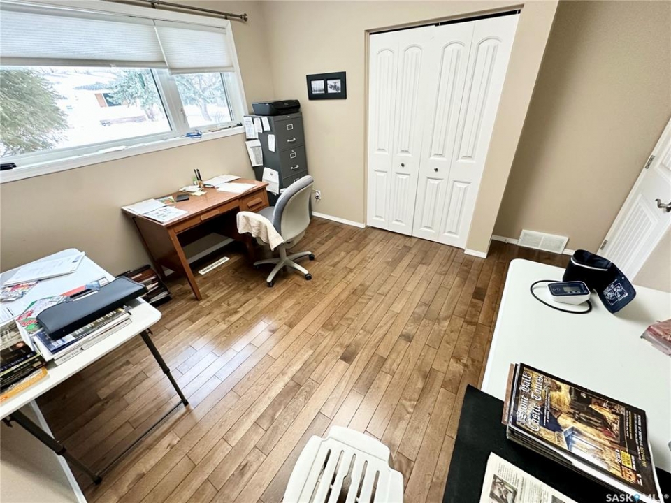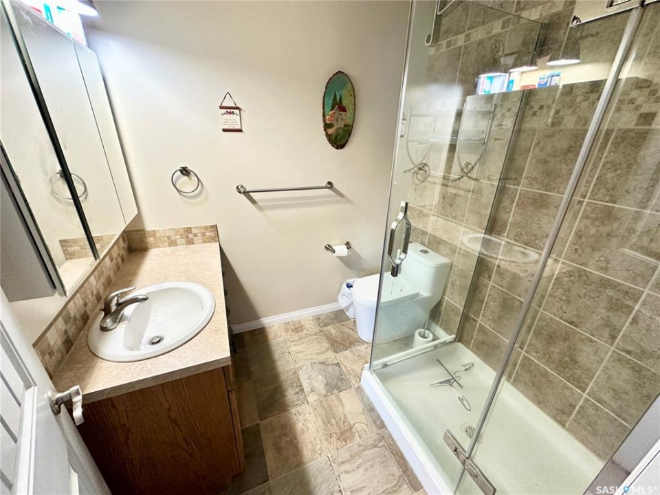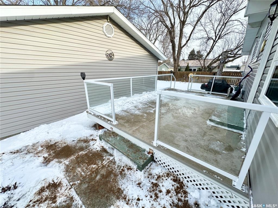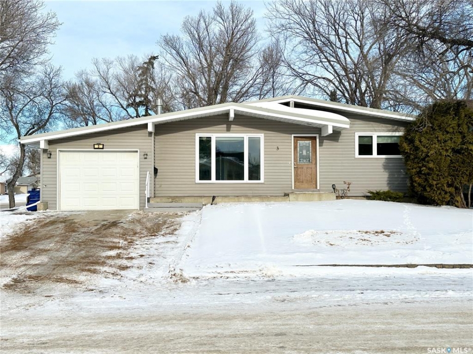 Welcome to 3 Scott Crescent, a beautifully maintained mid-century modern bungalow located on a quiet crescent in one of Weyburn's most desirable neighbourhoods, surrounded by mature trees and close to the high school, track and walking trails. The main floor features a bright and inviting living room highlighted by vaulted ceilings and a gas fireplace, creating a warm and stylish gathering space. Interior updates include hardwood flooring and a functional kitchen complete with stainless steel appliances. Convenient main-floor closet laundry adds to the home's practicality. This home offers four bedrooms total, with two on the main floor and two in the fully developed basement. The primary bedroom includes a 3-piece ensuite with a glass shower as well as a walk-in closet. Additional highlights include PVC windows, a durable metal roof, and a high-efficiency furnace for long-term comfort and peace of mind. A mudroom accessible from the kitchen provides access to the 12' x 24' attached garage, while the backyard includes a 24' x 24' fully finished detached garage which is ideal for vehicles, hobbies, or additional storage. There is also an RV parking space on the west side of the detached garage for extra parking. Enjoy outdoor living on the large rear deck, perfect for relaxing or entertaining. Move-in ready and thoughtfully updated, this property offers the perfect blend of character, comfort, and functionality in a sought-after location. Call to book a showing today.