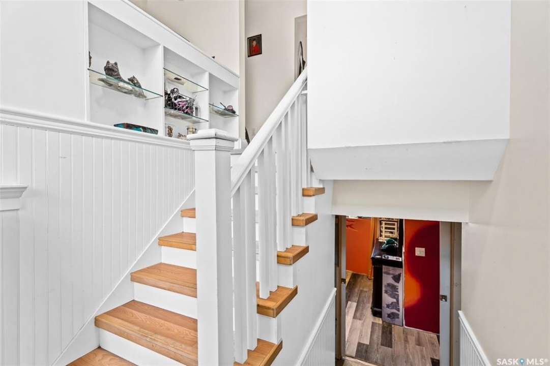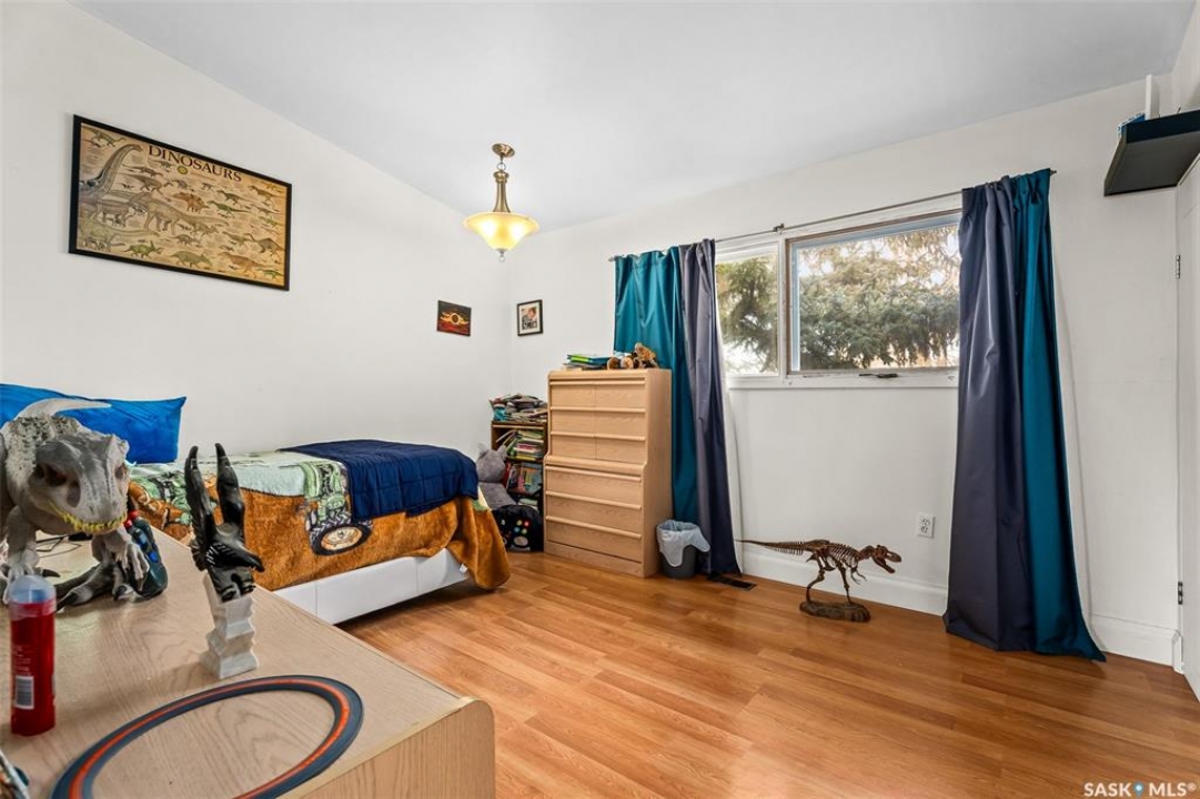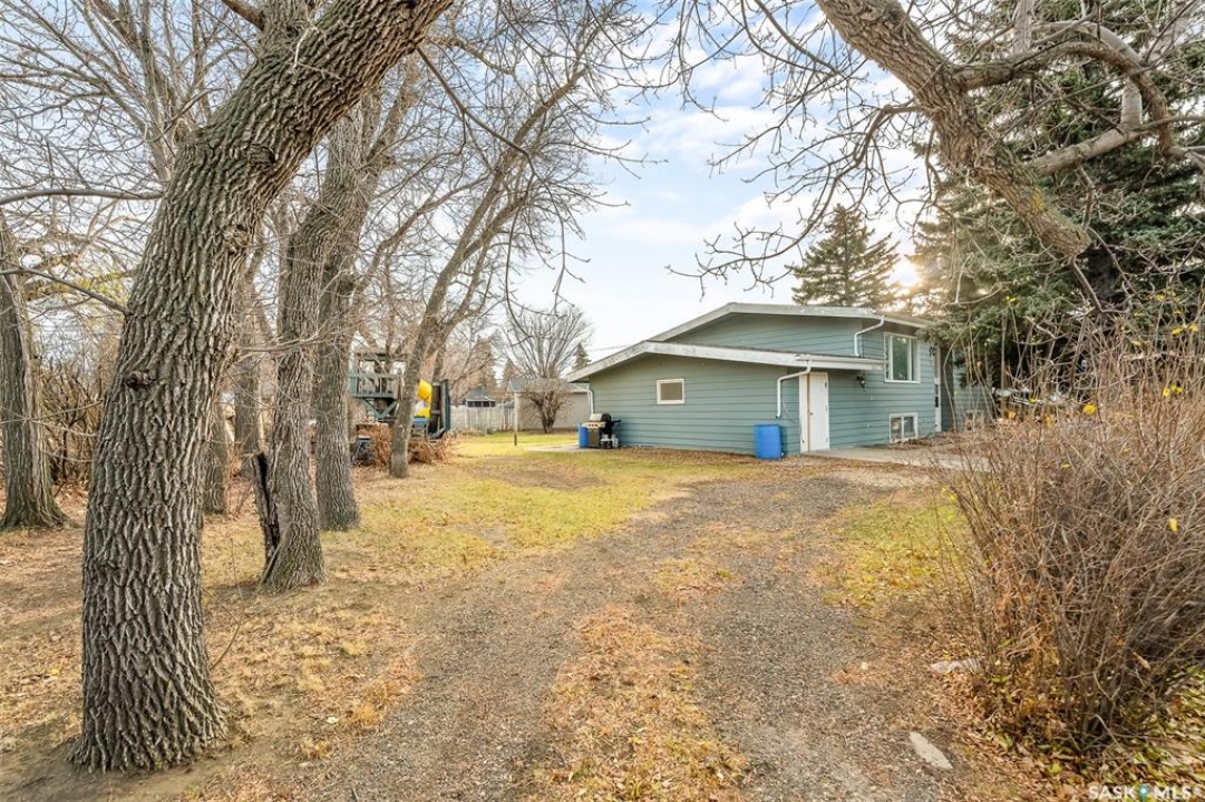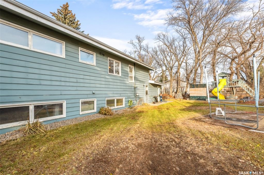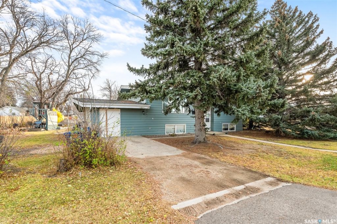 Are you looking for a large family home in the bustling town of Caronport? This large bi-level checks so many boxes boasting 4 beds / 2 baths and over 1,400 sq.ft of living space. Coming up to the home you will notice the mature yard providing lots of shade. Heading inside you are greeted by your first of 2 staircases in the home - this one showcases tall windows giving lots of natural light. The large living area will impress with the vaulted ceilings throughout the main floor - a unique feature compared to most of these houses. There is a dining room with a built in china cabinet off the living space. This U-shaped kitchen features an eat-up breakfast bar, custom toe kick drawers, large farmhouse sink and a stainless steel appliance package. Down the hall we find 2 large bedrooms - one with double closets and the other with a very cool kids playhouse in the attic. Heading down the back set of stairs we find access to a large workshop area that the buyers could convert back to a garage if they wanted. Downstairs we find a huge primary suite complete with dual sliding pocket doors, a massive walk-in closet with a sitting room space, primary bedroom and an ensuite. You will also find another large bedroom, a family room and a laundry/utility room in the basement. Outside you will love the massive corner lot - well treed, large shed, play structure and a garden area. So much space for future plans. Located just 15 minutes from Moose Jaw - Caronport has a K-12 school, gas station, post office and a coffee shop! Reach out today to book a showing! * Some photos have been virtually staged/edited.