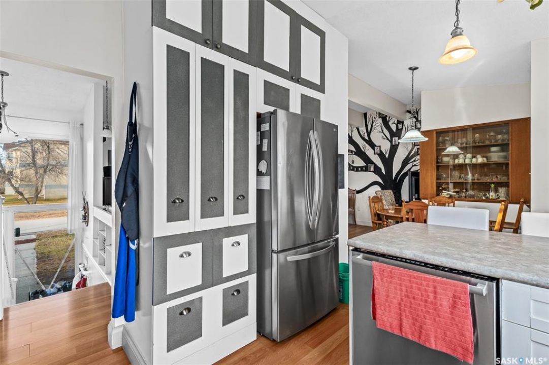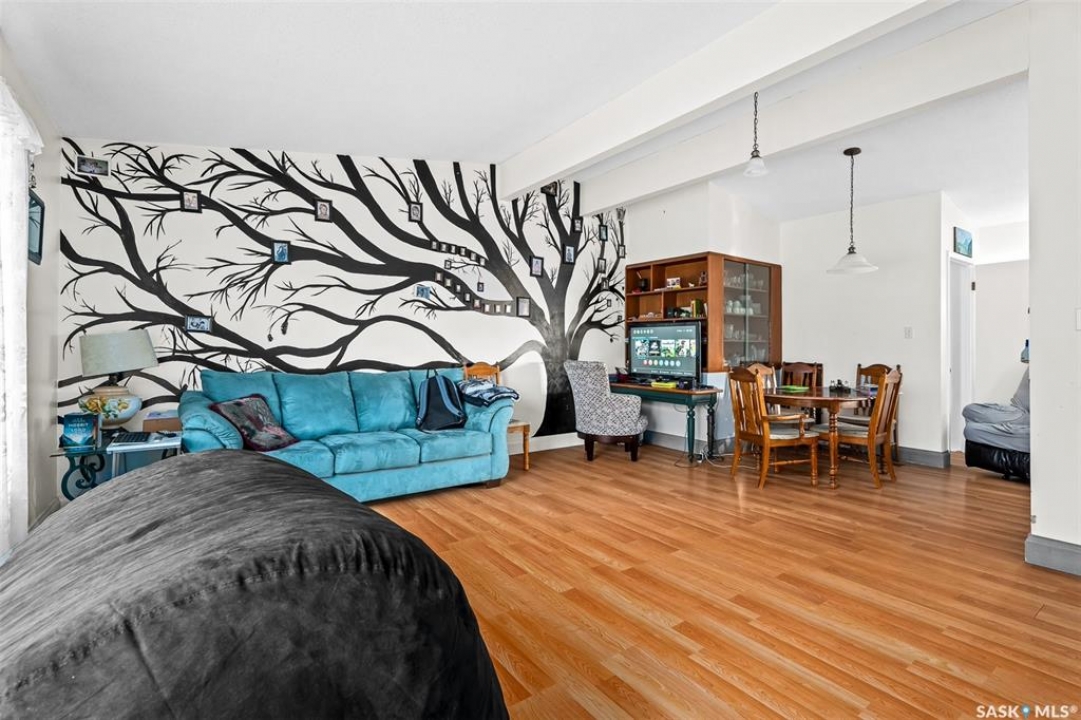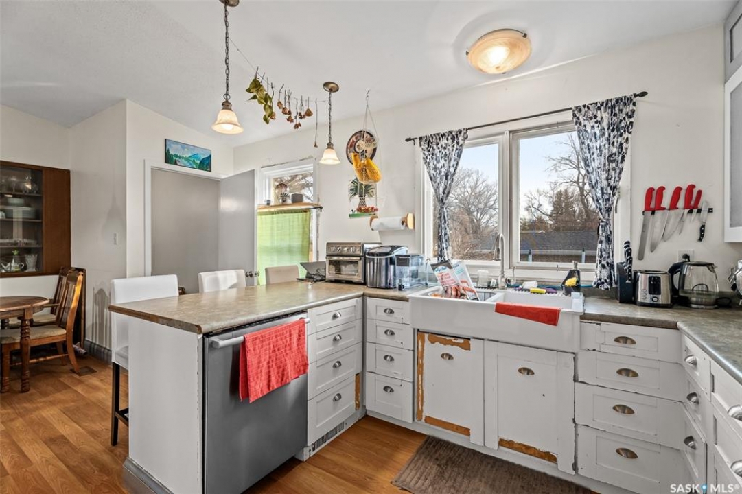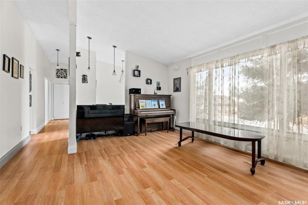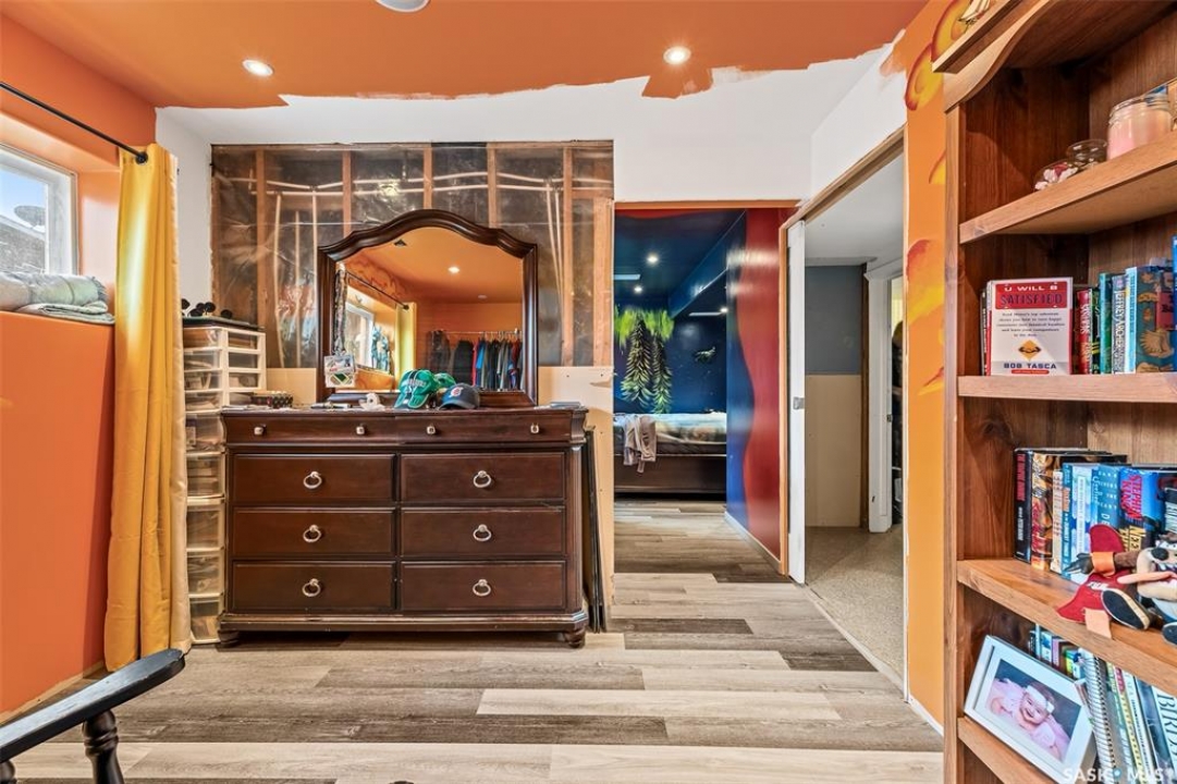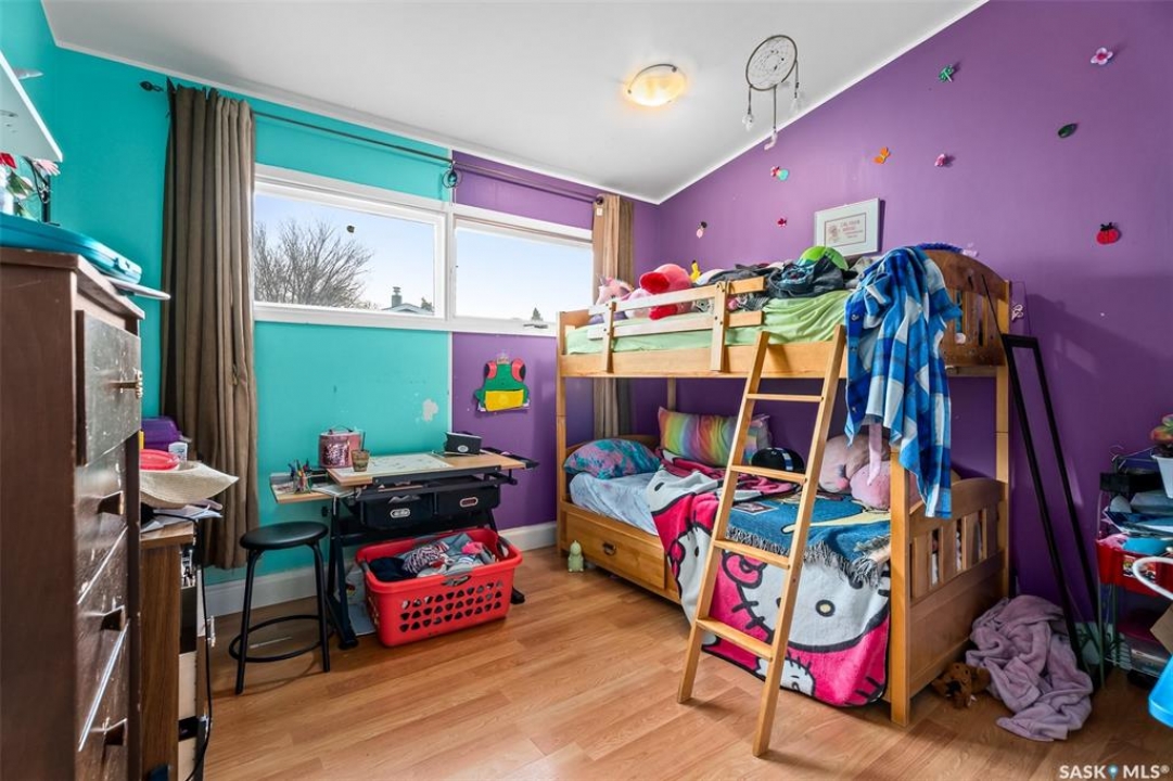 Are you looking for a large family home in the bustling town of Caronport? This large bi-level checks so many boxes boasting 4 beds / 2 baths and over 1,400 sq.ft of living space. Coming up to the home you will notice the mature yard providing lots of shade. Heading inside you are greeted by your first of 2 staircases in the home - this one showcases tall windows giving lots of natural light. The large living area will impress with the vaulted ceilings throughout the main floor - a unique feature compared to most of these houses. There is a dining room with a built in china cabinet off the living space. This U-shaped kitchen features an eat-up breakfast bar, custom toe kick drawers, large farmhouse sink and a stainless steel appliance package. Down the hall we find 2 large bedrooms - one with double closets and the other with a very cool kids playhouse in the attic. Heading down the back set of stairs we find access to a large workshop area that the buyers could convert back to a garage if they wanted. Downstairs we find a huge primary suite complete with dual sliding pocket doors, a massive walk-in closet with a sitting room space, primary bedroom and an ensuite. You will also find another large bedroom, a family room and a laundry/utility room in the basement. Outside you will love the massive corner lot - well treed, large shed, play structure and a garden area. So much space for future plans. Located just 15 minutes from Moose Jaw - Caronport has a K-12 school, gas station, post office and a coffee shop! Reach out today to book a showing! * Some photos have been virtually staged/edited.