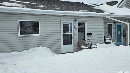 #103 Kinsmen Court, Humboldt. Affordable 55+ condo offering 595 sq. ft. of comfortable, low-maintenance living. This east-facing 1-bedroom, 1-bath unit overlooks the courtyard and is in great condition with new carpet and an updated kitchen. Functional layout includes a 4-piece bathroom and a convenient in-suite storage room. The building is wheelchair accessible and features two amenities rooms, complimentary shared laundry, and one electrified parking stall. Vacant and ready for quick possession. Ideal for downsizers or anyone seeking quiet, affordable living in a well-managed building.