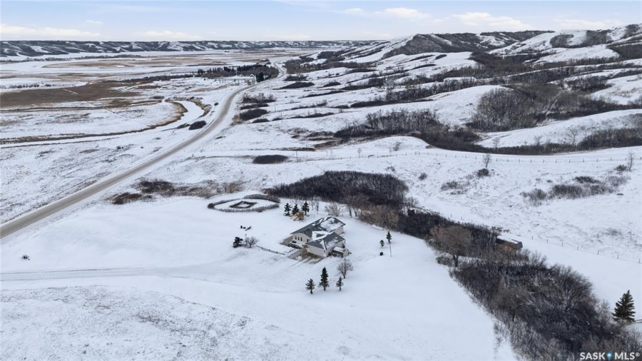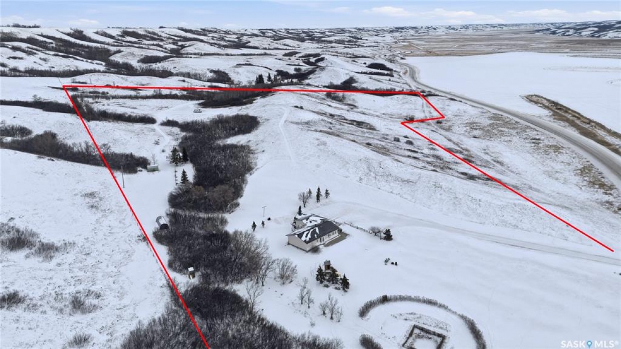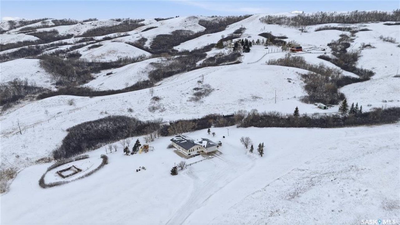 Beautiful 1,524 square-foot bungalow set on 24 scenic acres of valley hillside, offering stunning views of the Lumsden Valley. The home features a large kitchen with spacious eating area, an abundance of cabinetry with built-in dishwasher, granite countertops and backsplash, a center island , stainless steel appliances, and a reverse osmosis system. The fridge was updated in 2023 and the dishwasher in 2021. The main floor offers three generous bedrooms, including a primary bedroom with walk-in closet and three-piece ensuite. New flooring and paint were completed in 2020. The living room boasts a vaulted ceiling, new blinds installed in 2021, and updated windows and living room door completed in 2023. A huge laundry, storage area, and foyer is conveniently located on the main floor with direct entry to the heated garage. The basement features a massive family room, two additional bedrooms, a bathroom, dedicated storage area, and one large unfinished space. New basement windows have also been added. Additional upgrades include a furnace and air conditioning system installed in 2019, new garage door, and garage heater. The front of the property has been enhanced with new concrete and fencing, and the nicely landscaped yard complements the well-treed acreage. Steel roof, The land offers a blend of private open spaces and excellent potential building sites for future outbuildings. A truly impressive acreage property—call the seller's agent today for your own private viewing.