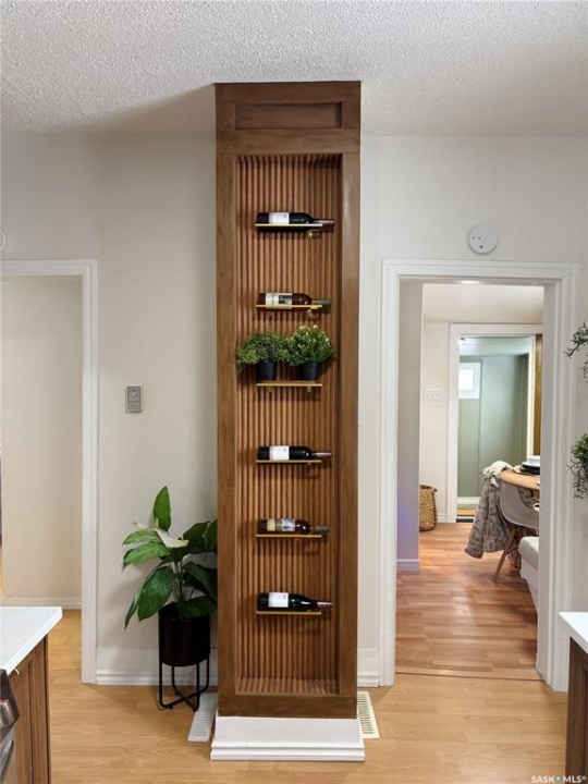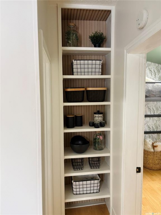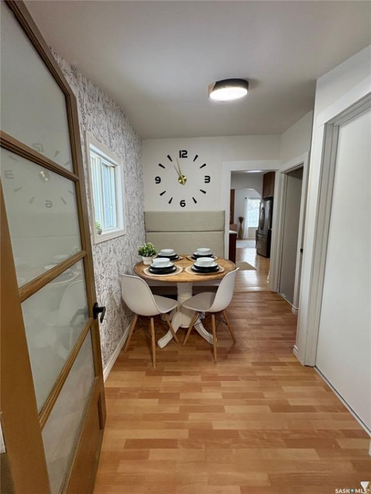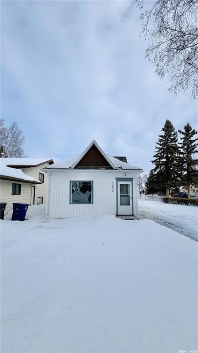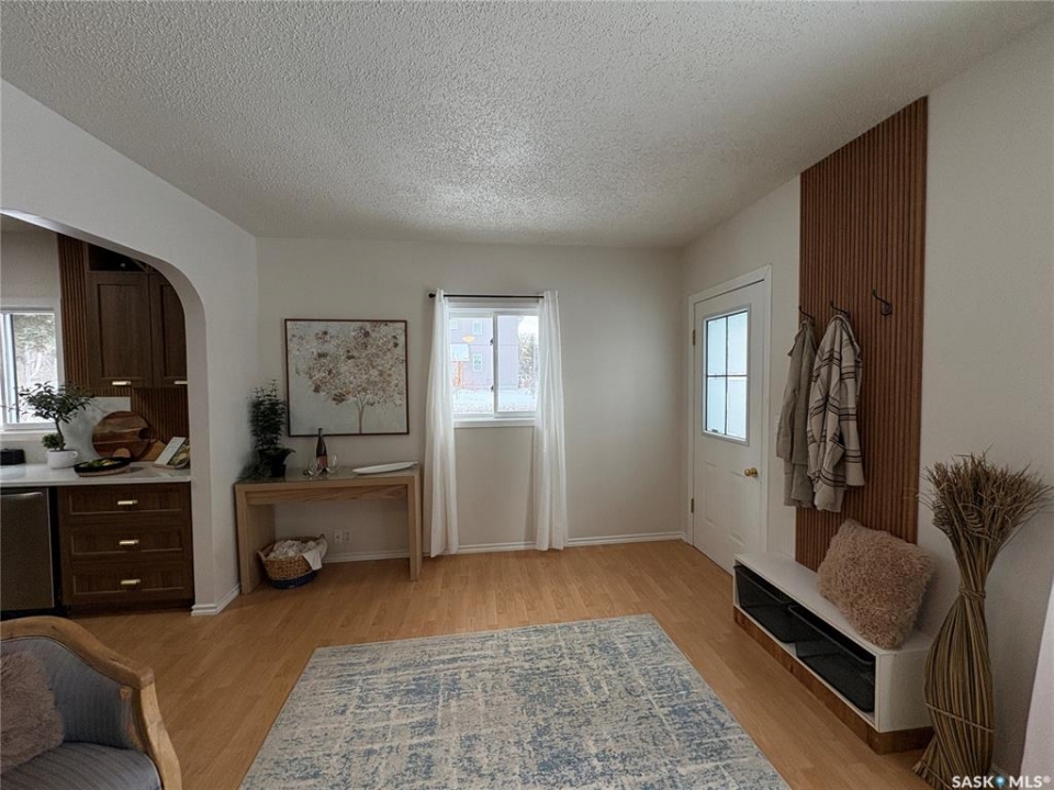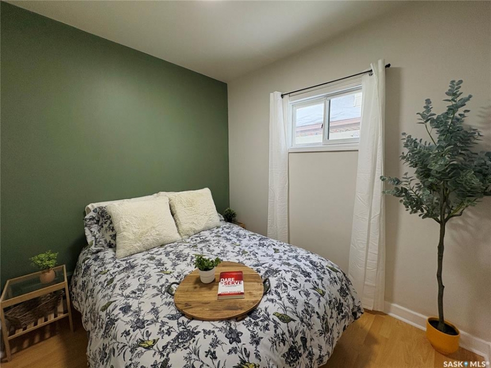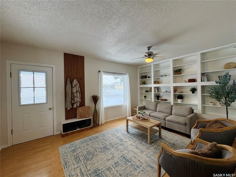 This charming 632 sq. ft. home offers a warm, cozy tiny-house vibe while still providing plenty of space to host family and friends. Large windows throughout fill the home with natural light, enhancing the inviting atmosphere. The thoughtfully designed layout includes two bedrooms, with an exceptional second bedroom that's perfect for kids. Clever storage nooks are tucked throughout the home, maximizing functionality without sacrificing style. The beautiful kitchen features quartz countertops and a matching quartz backsplash, complete with built-in wireless charging ports and a stylish coffee bar with a mini fridge. The bathroom has been beautifully renovated, and there is ample additional storage in the basement. Outside, you'll find a spacious 22 x 24 garage ideal for parking, or projects. The property sits on a corner lot with a mature, grassed yard, directly across from a park—an ideal setting for a starter home, families, or even downsizing. Come see what Rosthern has to offer, including a newer school, hospital, arena, golf course, cafe's and restaurants.