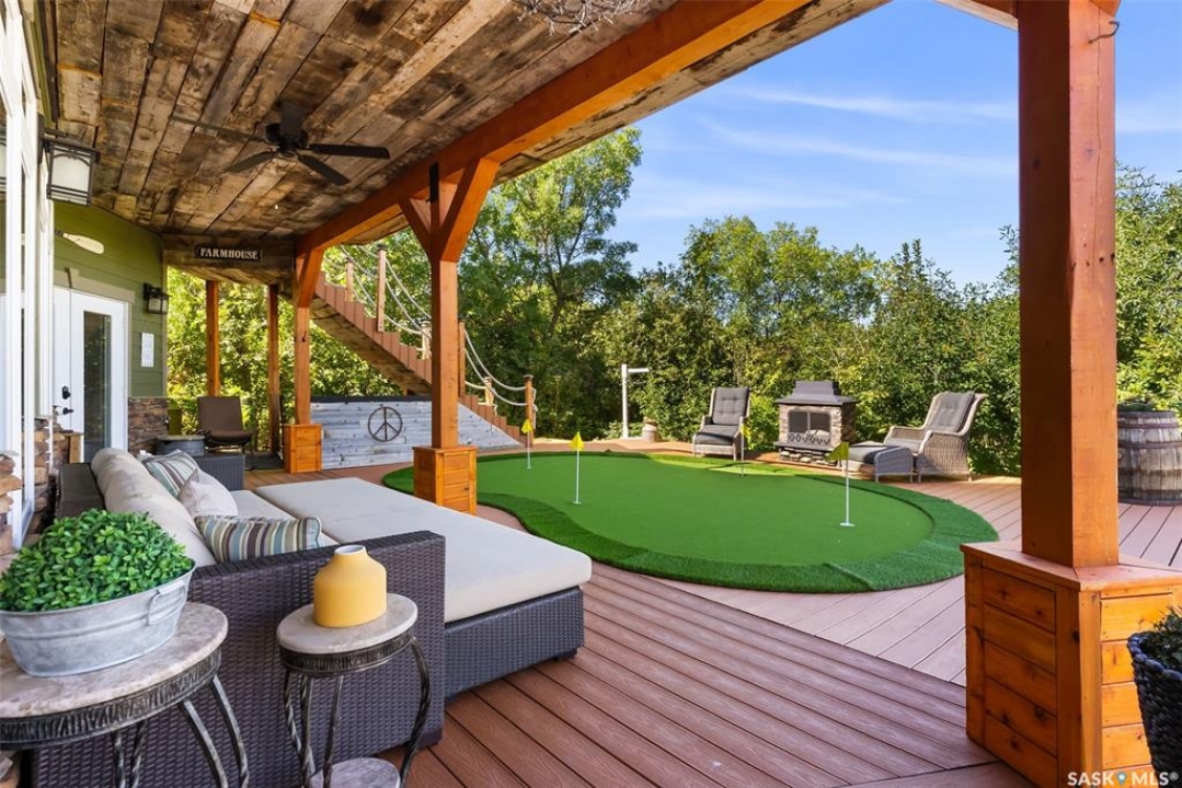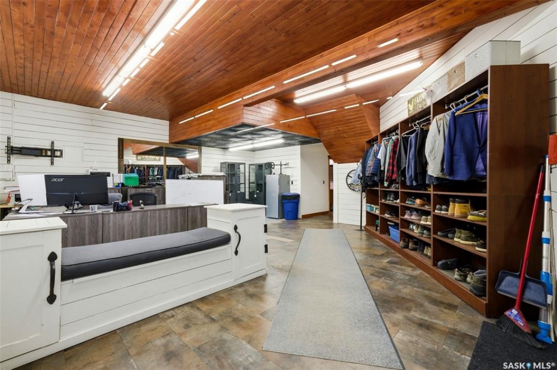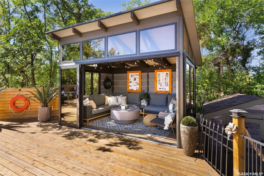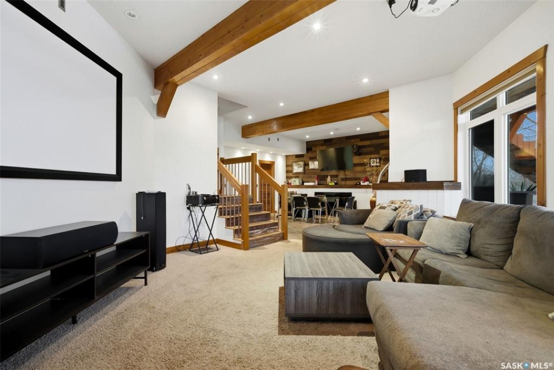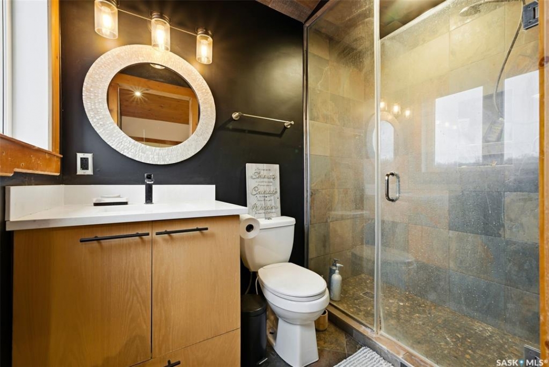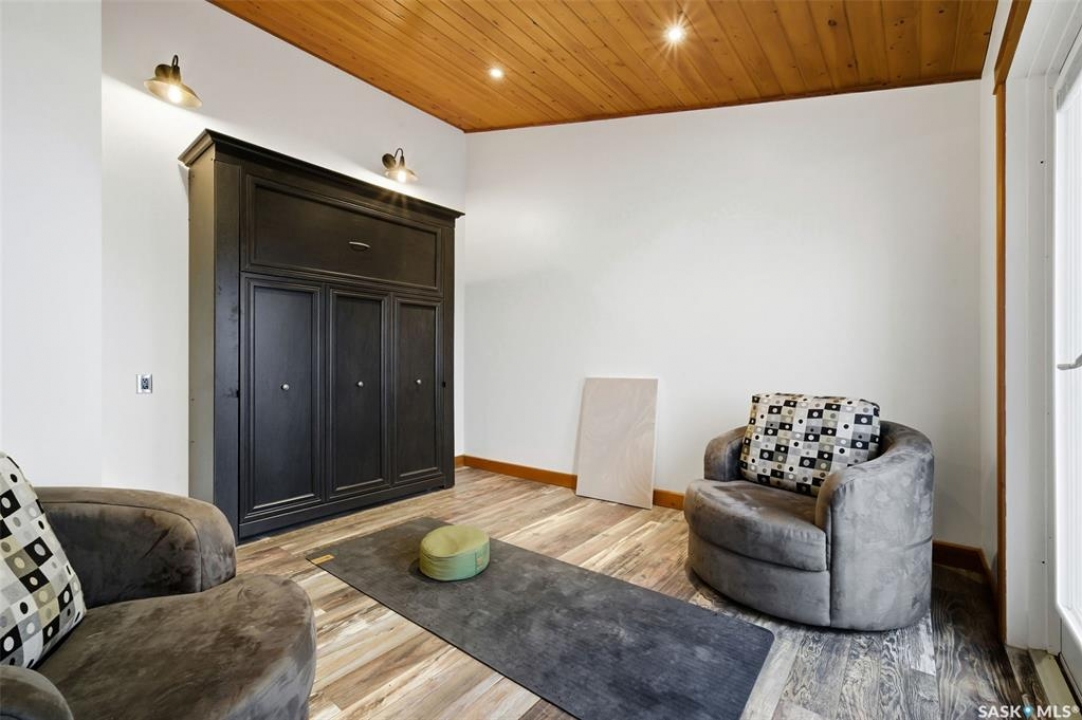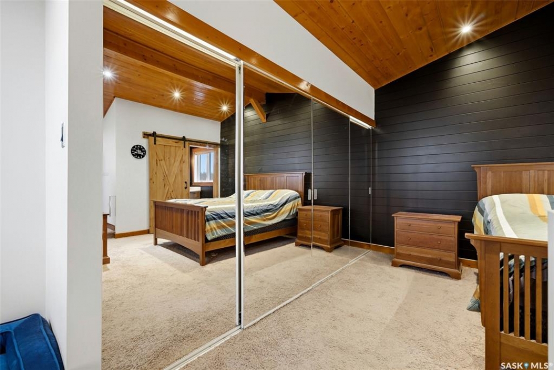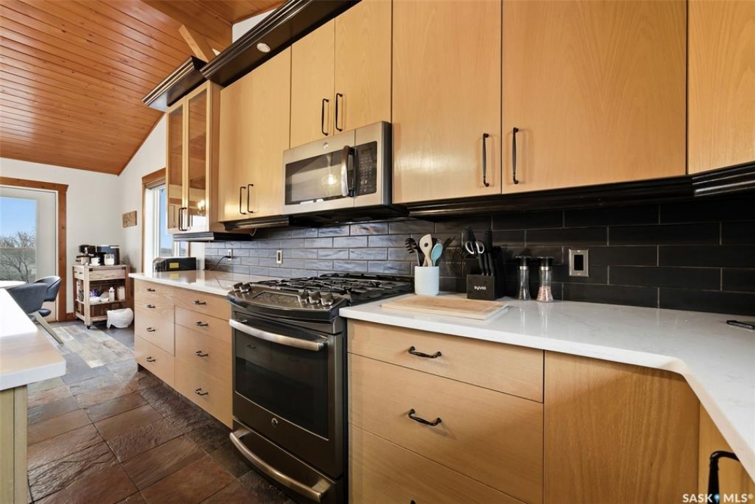 Don't miss this one-of-a-kind, private paradise in Kinookimaw with panoramic views of Last Mountain Lake. This property truly must be seen. Great room features prow front, knotty pine cathedral ceilings & recycled timber accent plus a wall of windows with lake views & wood burning fireplace. Open to the living area is a dining space with patio doors to the upper wrap around deck. Upgraded kitchen boasts light oak cabinetry, quartz countertops, fingerprint resistant slate appliances, subway tile backsplash & butlers pantry. There are 2 bedrooms on the main level, one has a seating area and patio doors to the 500 sqft upper deck. The upgraded 3 pc bath with clawfoot tub & laundry room complete the main level. On the 2nd floor is the primary suite with ample closet space with mirrored doors & a nook for reading. The 3 piece ensuite has a quartz topped vanity & tiled walk in shower. A wooden staircase leads down to the walkout basement, an entertainer's dream. Large seating area boasts a projector & screen with blackout power blinds plus games area and 3 pc bath. Patio doors lead to a lower deck with a putting green. Original garage has been converted into a side entrance on the lower level with a mudroom & extra space currently used as an office that could be converted to a 4th bedroom. Around the back of the home is a 33x18 above ground pool with 2000 sqft of cedar decking giving it the effect of an in-ground pool. Outdoor kitchen (2021) & 3 season Suncoast enclosure w/ electrical (2020) & added power retractable screen (value $21,000) complete this space. Triple detached garage w/ epoxy floor & floor drain, newer drive way & 2 storage sheds w/power are sure to hold all of your toys & vehicles. Spend your days floating in the pool & working on your golf game at this gorgeous property! Points to note: Access to & use of waterfront dock, deck & shed. Shingles on house, garage & sheds 2023. Downspouts on exterior of house & garage 2023. Septic tank pipe replaced 2023.