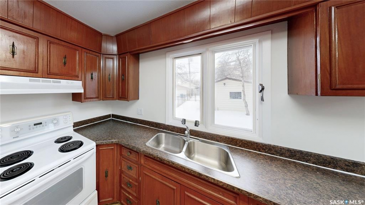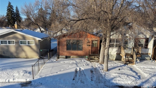Welcome to 2130 Atkinson Street in the highly convenient Borders Annex neighborhood. This desirable location is just moments away from the General Hospital, St. Augustine and Arcola Elementary Schools, the public library, the Al Ritchie Outdoor Spray Park, and a variety of parks, shops, and essential amenities. This 1916 built, 900 square foot, 2 bedroom 1 bathroom bungalow sits on a 25 x 125 rectangular lot backing a lane. The front yard has a lawn and large trees. The brick finish on the front of the house makes it unique. The fully fenced backyard also has a lawn and trees and access to the single detached garage! You enter the home into the living room with a bright east facing window and modern vinyl plank flooring. The entire home has been freshly painted and is move in ready! The first bedroom has a spacious closet! The 4 piece bathroom is next followed by the large primary bedroom. The dine-in kitchen finished off the main floor with plenty of cupboard space, access to the back yard and the fridge and stove are included! The partial basement is where you'll find the included washer, dryer, furnace and gas water heater!